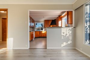 Kjøkken har integrerte stekeovn, oppvaskmaskin og kjøleskap som medfølger kjøpet, halvannen nedfelt vask i laminatbenkeplate og mye skapplass. Gulvbelegg på kjøkken.