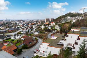 Velkommen til Fridtjof Øvrebøs gate 24. I en høy og usjenert 1. etasje finner du en stor 4 roms leilighet på hele 106 kvm. Det er garasjeplass i lukket garasjeanlegg og heis opp til boligens etasje. Heisen er få skritt fra bil og inngangsdør til leiligheten. Inneholder entre/hall med garderobeplass og dørtelefon. Vaskerom med utslagsvask, fliser på gulv og vegger. Separat toalett med servant. Fliselagt bad. 3 gode soverom hvorav det ene har et eget "walk in closet". Åpen stue - kjøkken løsning. God skap og benkeplass på kjøkken. Kjølerom. Romslig stue med god plass til sofagruppe og spisestue. Nydelig utsikt vestover. Utgang til 46 kvm stor solrik terrasse. Også her er det en nydelig utsikt og man ser solen gå ned i havet. Det er også utekran som er praktisk til å vanne planter. Leiligheten er for det meste nymalt, men har behov for oppussing. Sameiet er meget veldrevet og har ordnet økonomi. Dert er fellesfasiliteter som et fellesrom som er godt utstyrt for sammenkomster, feiringer, fellesmøter og lignende.