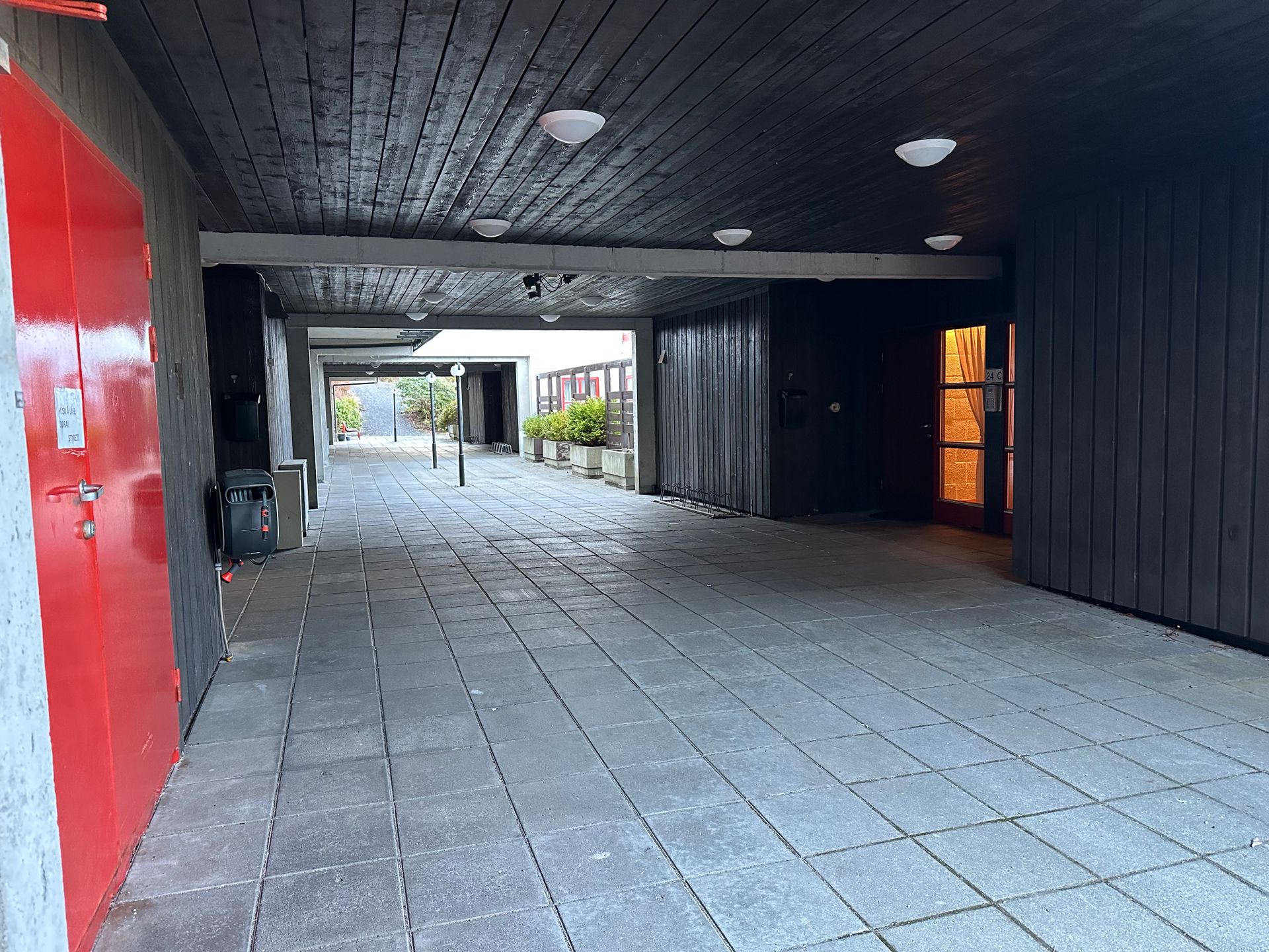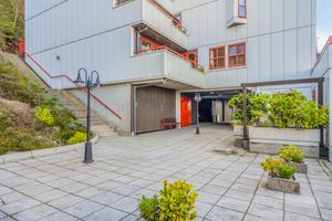 Se kartløsningen på finn.no for nøyaktig beskrivelse. Denne leiligheten ligger i bygget mot nord vest. Inngang i mellom byggene. Ta trappene eller heisen ned til 1. etasje.