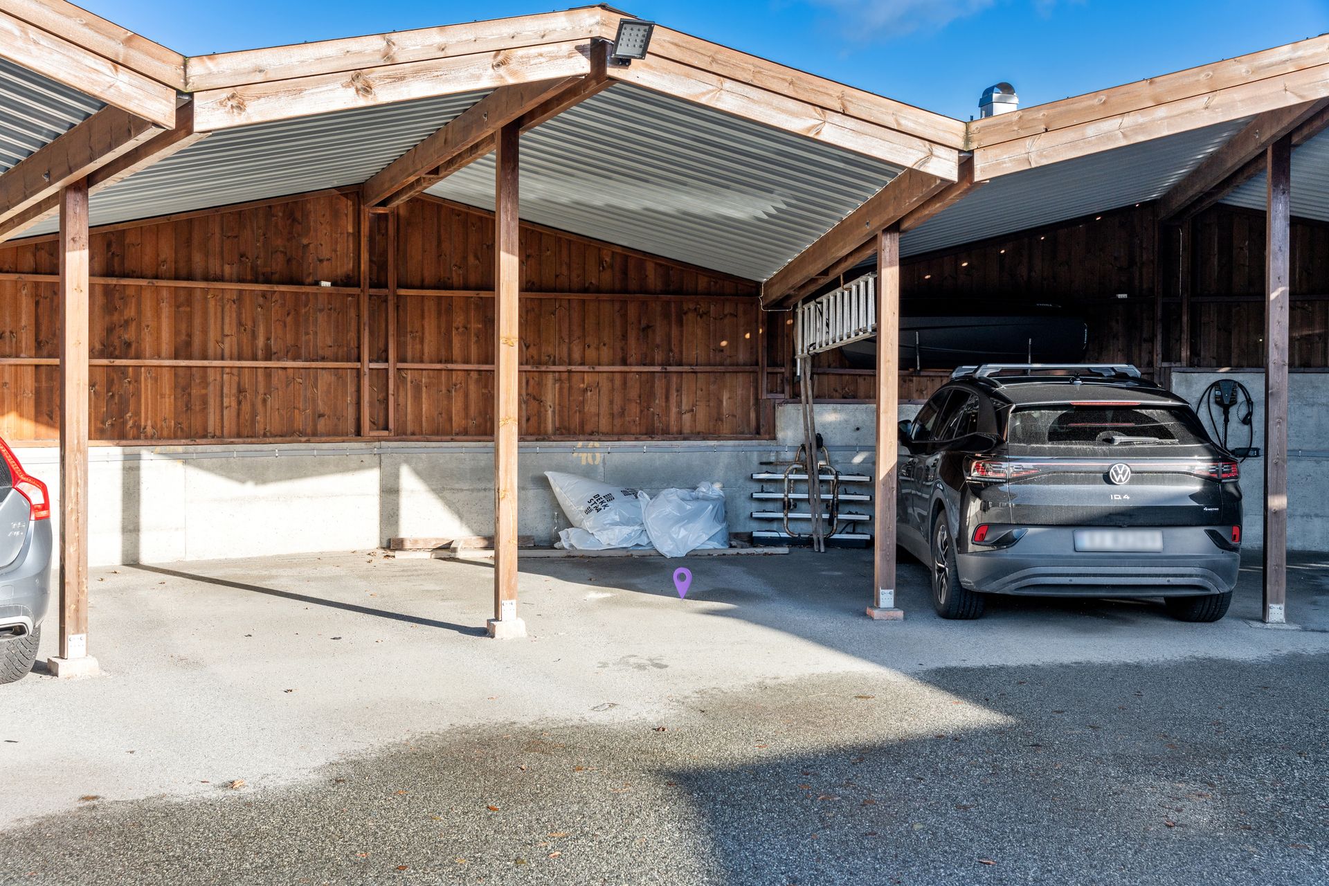 Velkommen til et "bilfritt" tun. Bom ved inngang til boligområdet og kun innkjøring ved spesielle behov. Fra gjesteparkeringsplassen går du inn på område, så første vei til høyre og deretter til venstre. Boligen ligger nest sist på høyre side.
