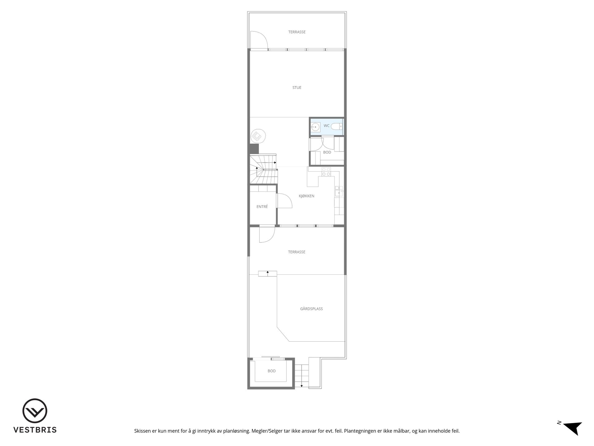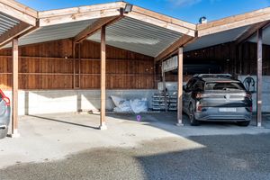 Hovedetasje: entrè, kjøkken, bod, wc og stue. Loftsetasjen: gang og ett soverom Underetasje: gang, vaskerom, bad, 2 soverom hvorav ett med walk in closet Carport i fellesanlegg og stor praktisk bod v/inngangspartiet