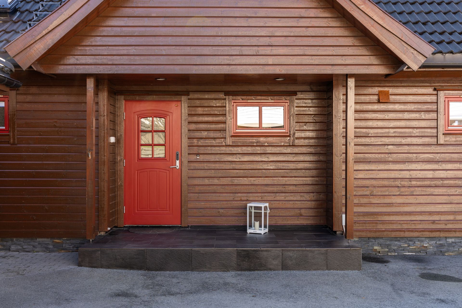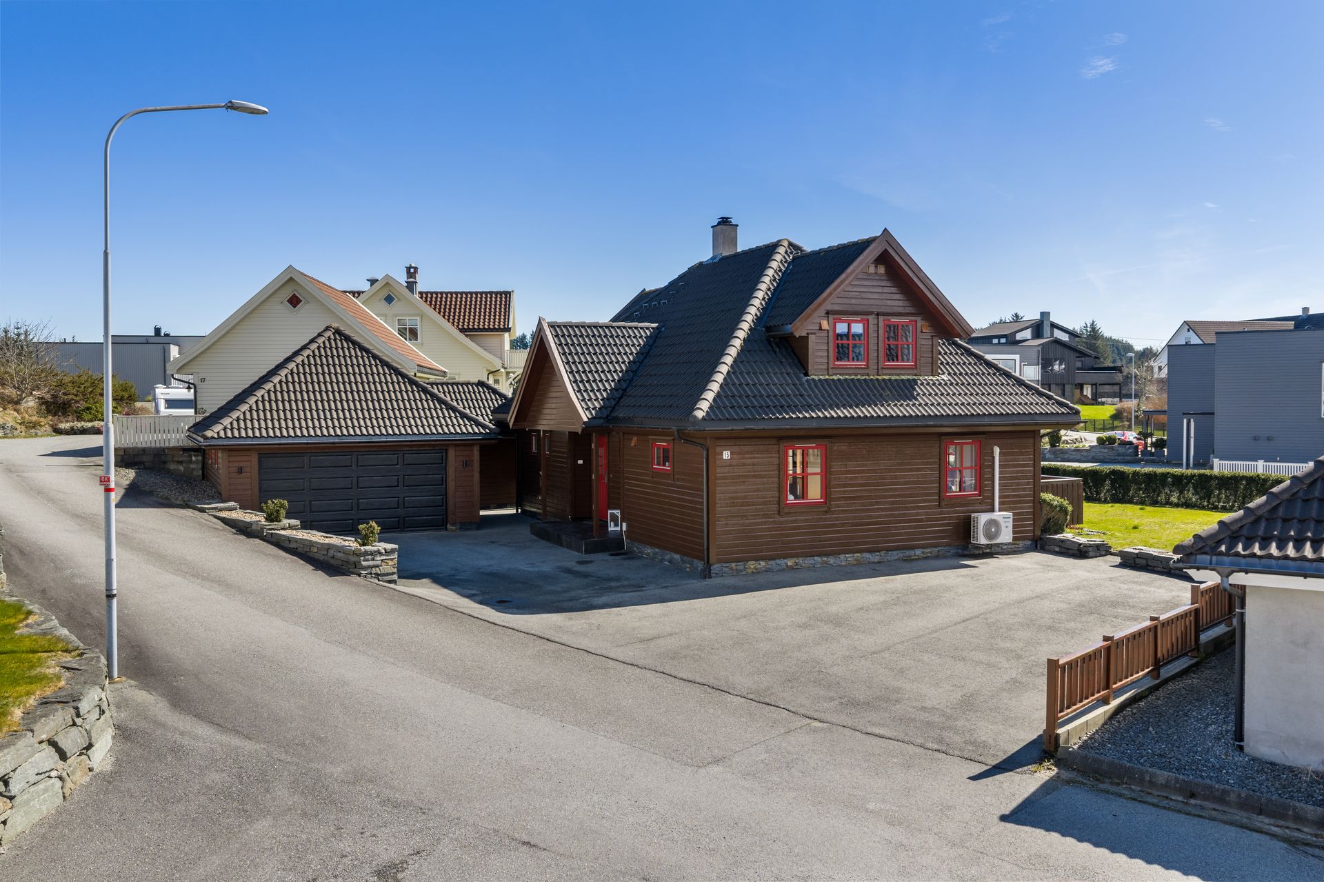 -Utvendig: -Kjekk dobbel garasje med el-bil lader og tilkomst til isolert snekkerbod.