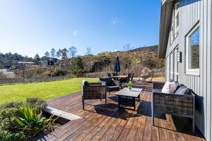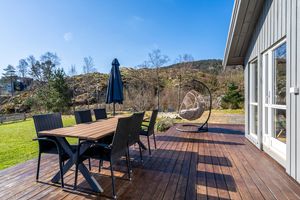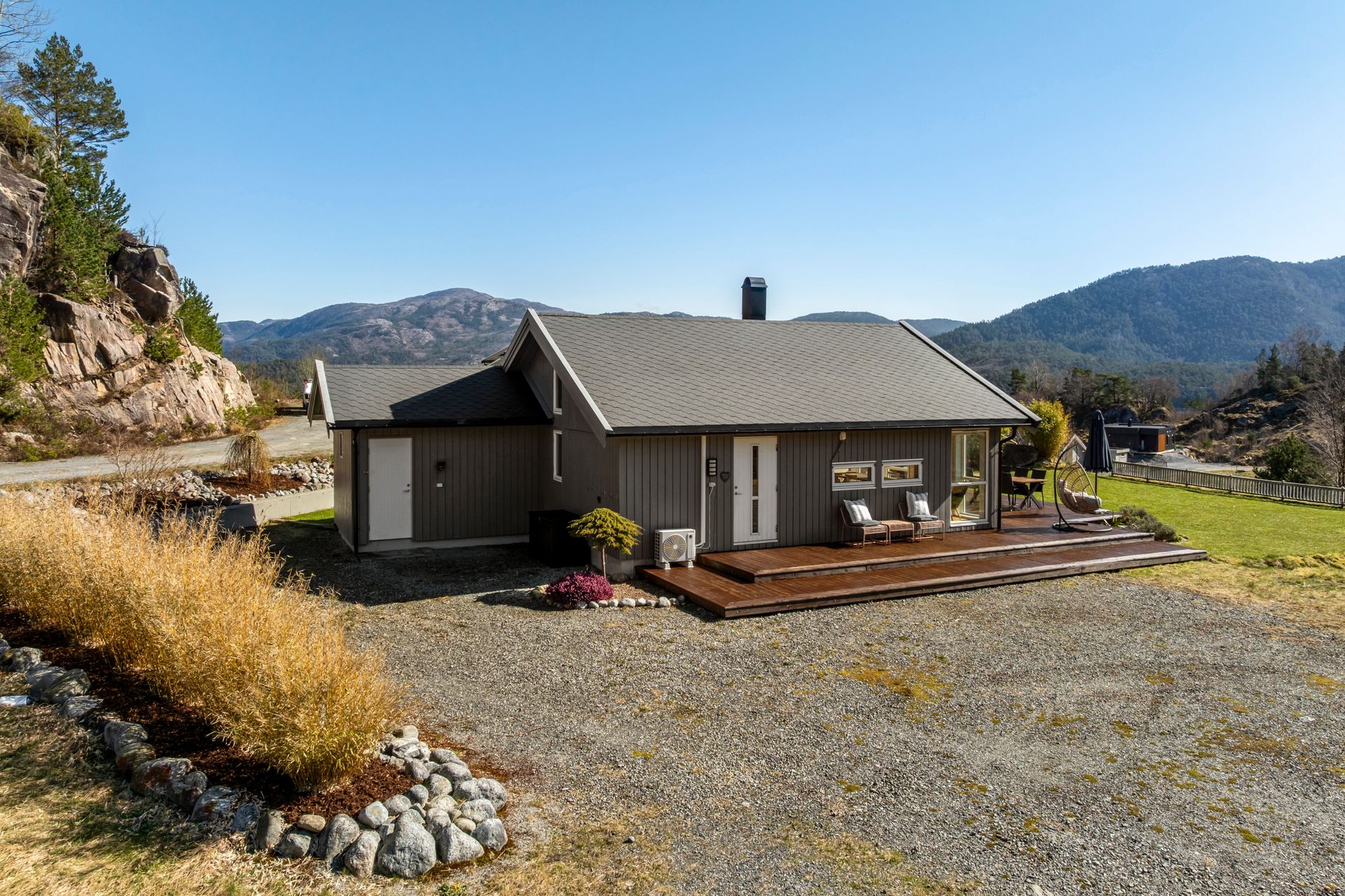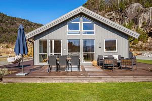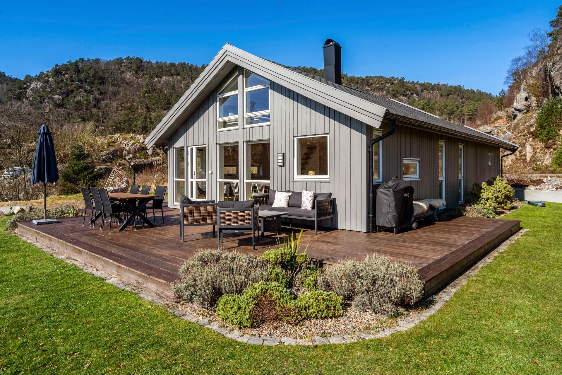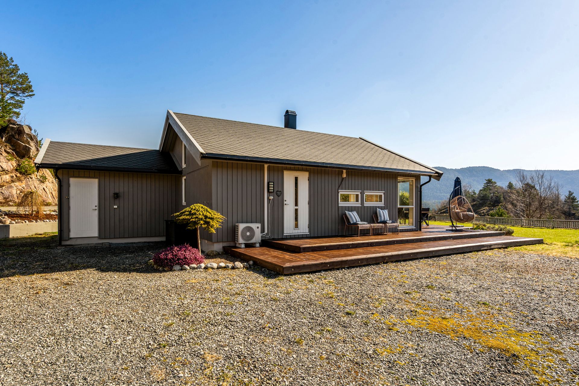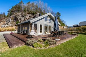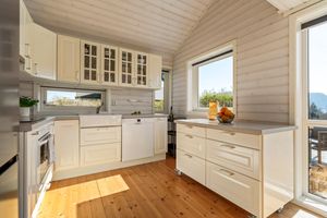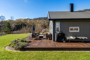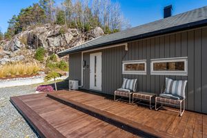 Hytta har en idyllisk beliggenhet i Bekkjarvika i Herviksfjorden. Lun, solrik og usjenert eiendom med fine uteområder og stor terrasse med utgang fra stua.