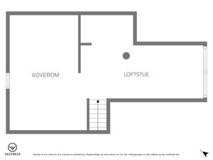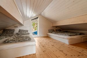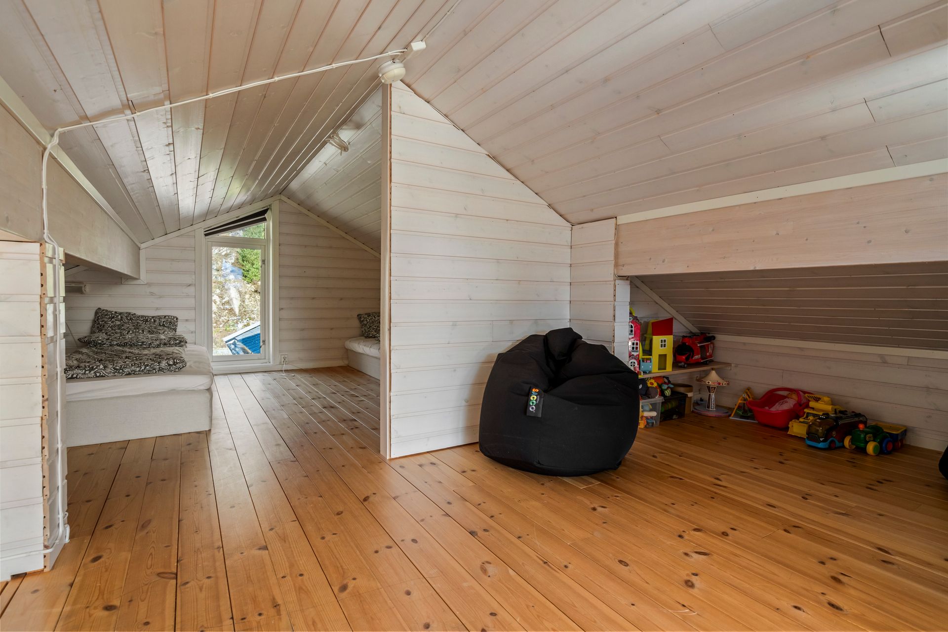 Hyggelig hems med sengeplasser i den ene delen og loftstue i motsatt ende. Hems har ikke måleverdige arealer på grunn av for lav takhøyde.