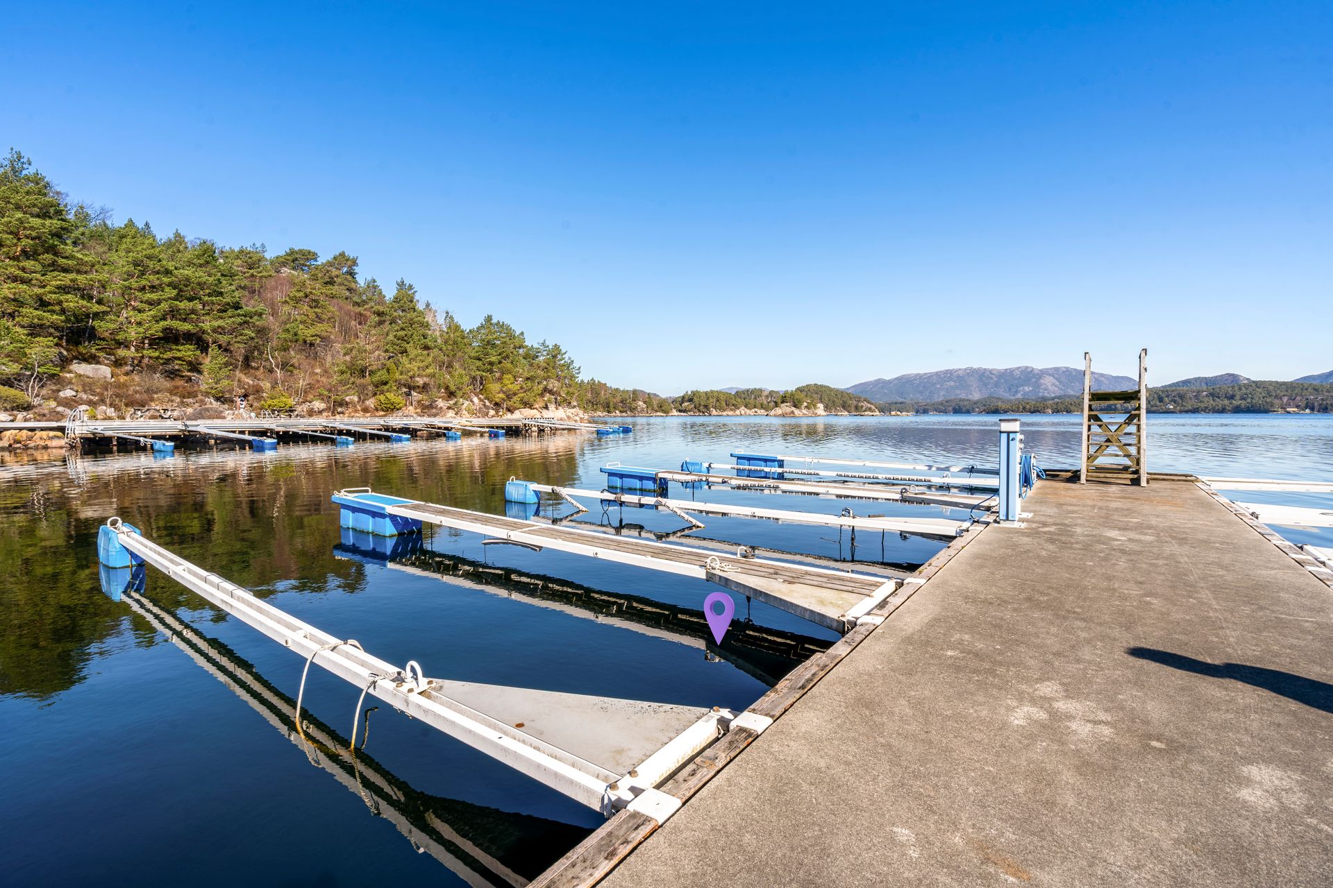 Eiendommen ligger fredelig til i naturskjønne omgivelser med kort vei til sjøen (ca. 200m) hvor det er båtplass i fellesanlegg, samt fine fellesområder med bl.a. strand med grillplass.