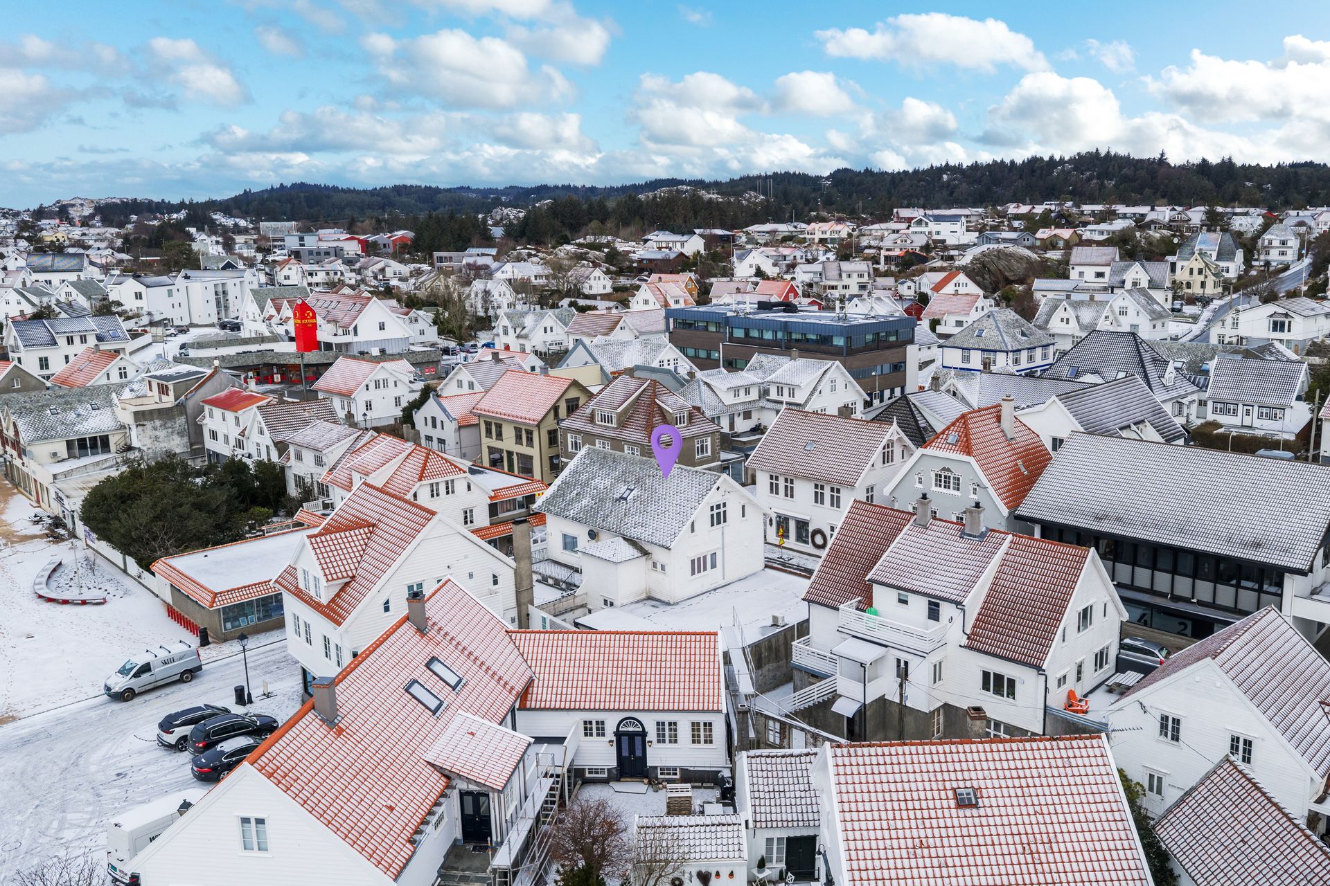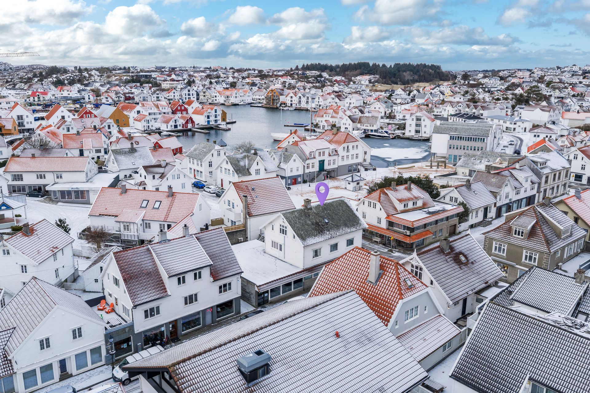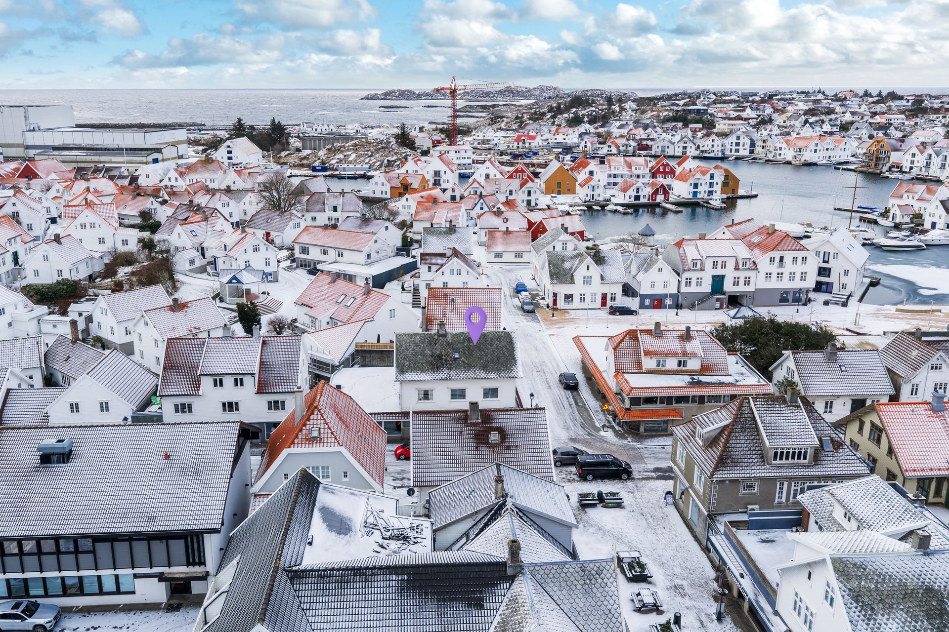 Eiendommen har en attraktiv og sentral beliggenhet i hjertet av Skudeneshavn – en av Norges best bevarte småbyer med særpreget trehusbebyggelse og maritim atmosfære. Fra boligen er det kort gangavstand til koselige kaféer, restauranter, butikker, servicetilbud og dagligvarehandel. Havneområdet med sitt yrende sommerliv, gjestehavn og flotte turmuligheter ligger like i nærheten.