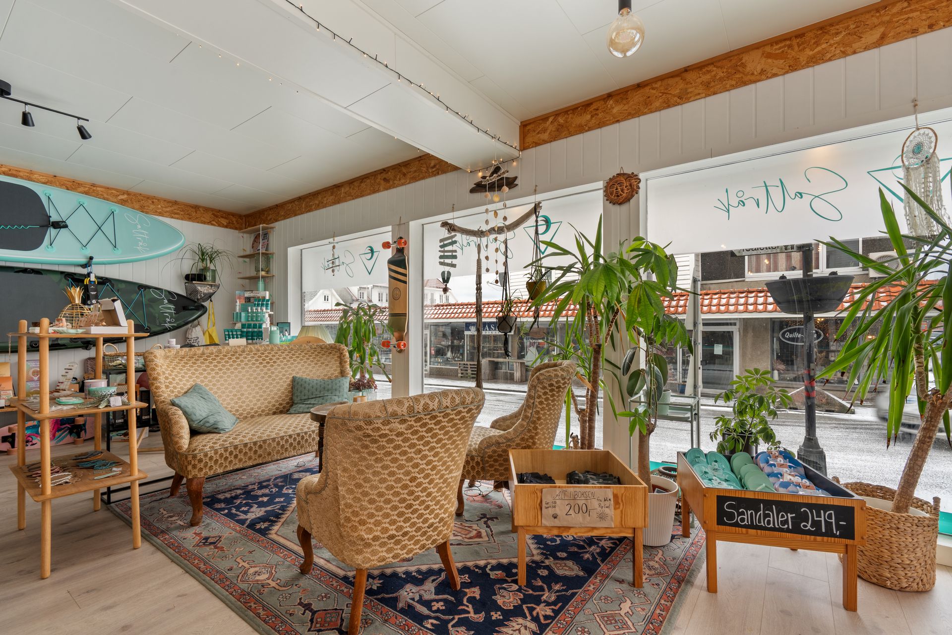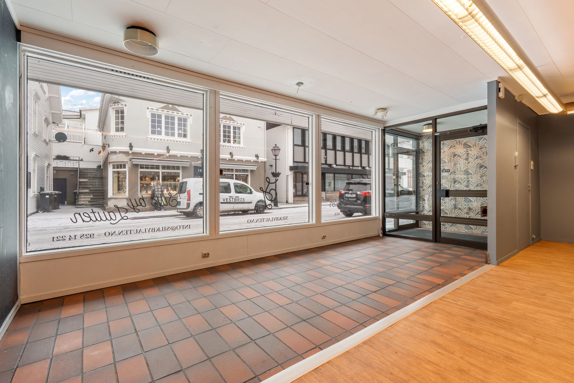 Forretningsdel: Forretningslokale 1 består av et funksjonelt utsalgsrom med tilhørende lager, kontor og toalett. Forretningslokale 2 inneholder et innbydende utsalgsrom med eget inngangsparti samt tilhørende fasiliteter som prøverom, toalett, spiserom, garderobe, kjøkken/personalrom, gang og søppelbod. Lokalene er godt tilrettelagt for handels- og servicevirksomhet.