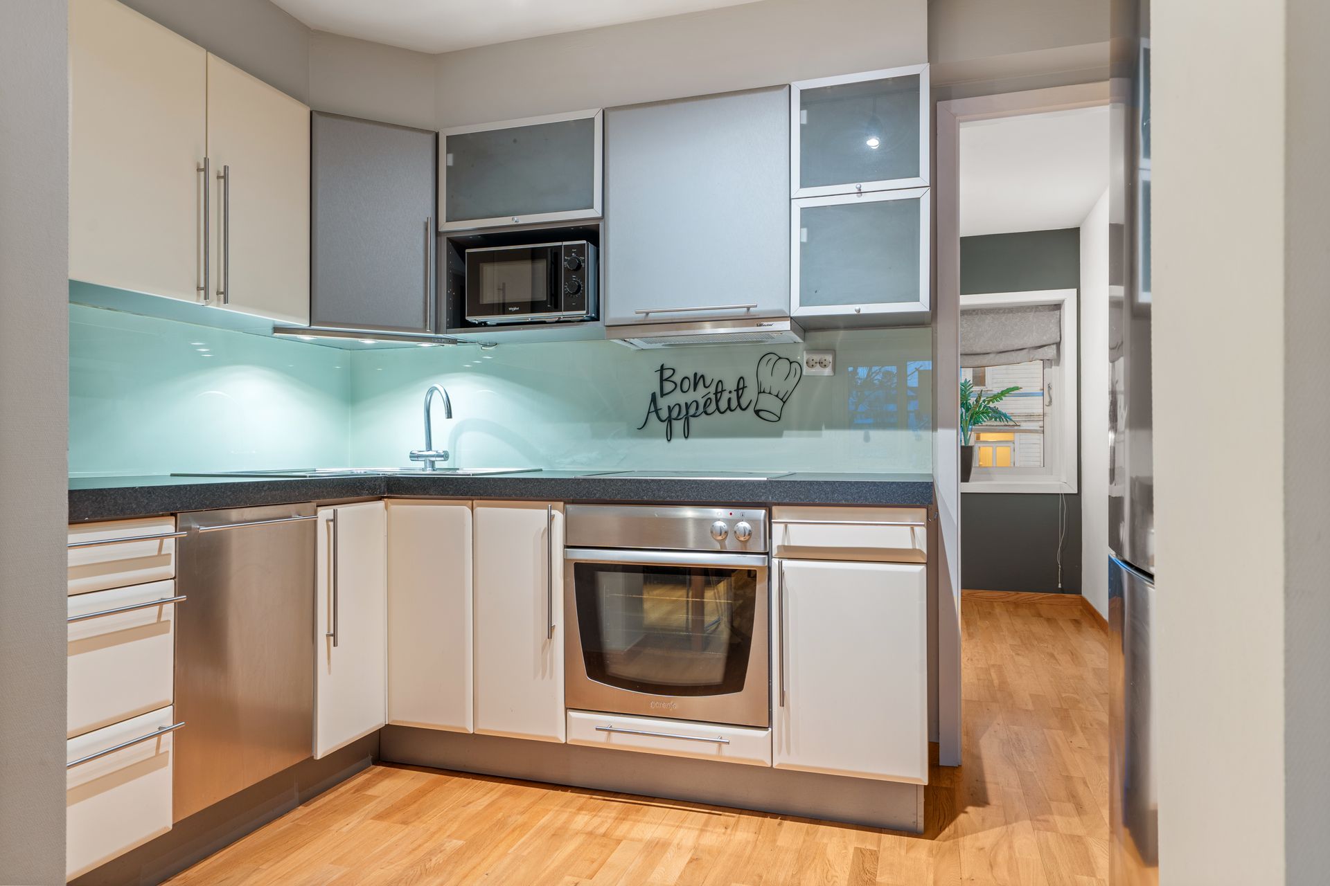- Integrert komfyr med keramisk koketopp, int. oppvaskmaskin, frittstående kjøleskap og frittstående micro som også medfølger. Av og til noe viftelyd fra kjøleskapet. Det gis fra selger ingen garanti.