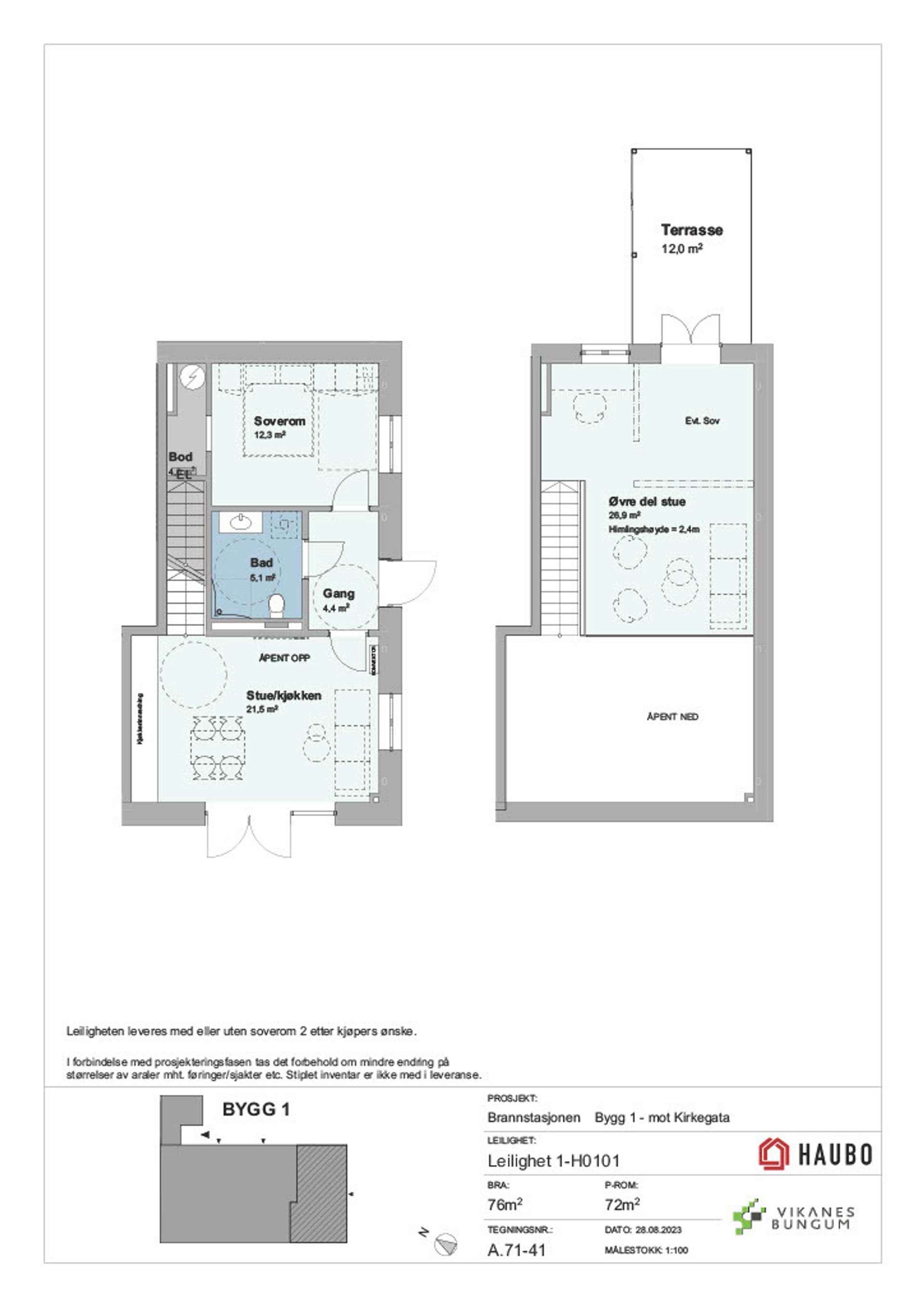BYGG 1, lekker 2-plans leilighet
