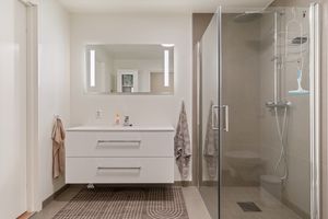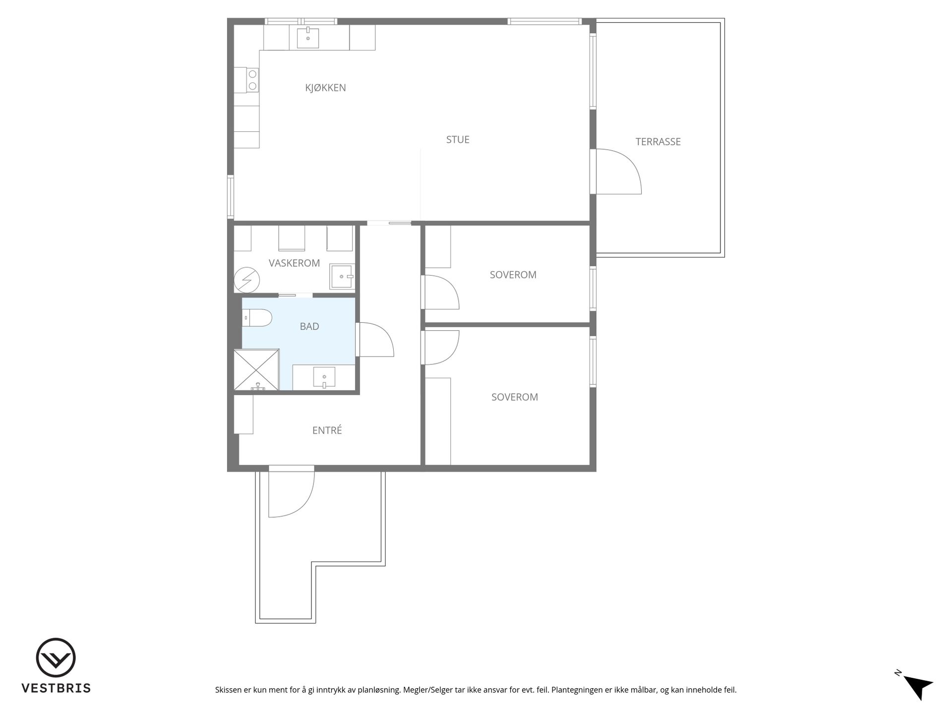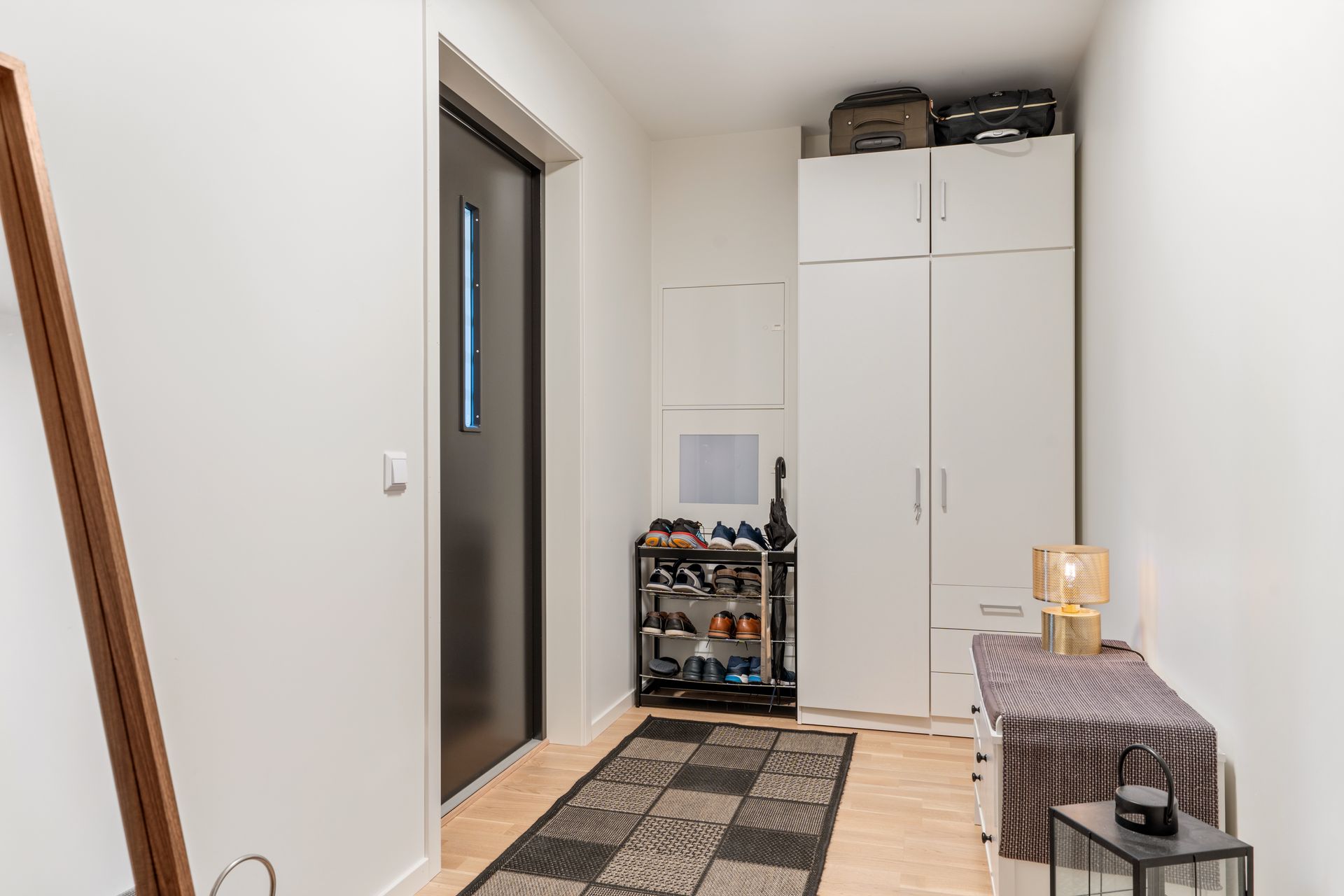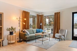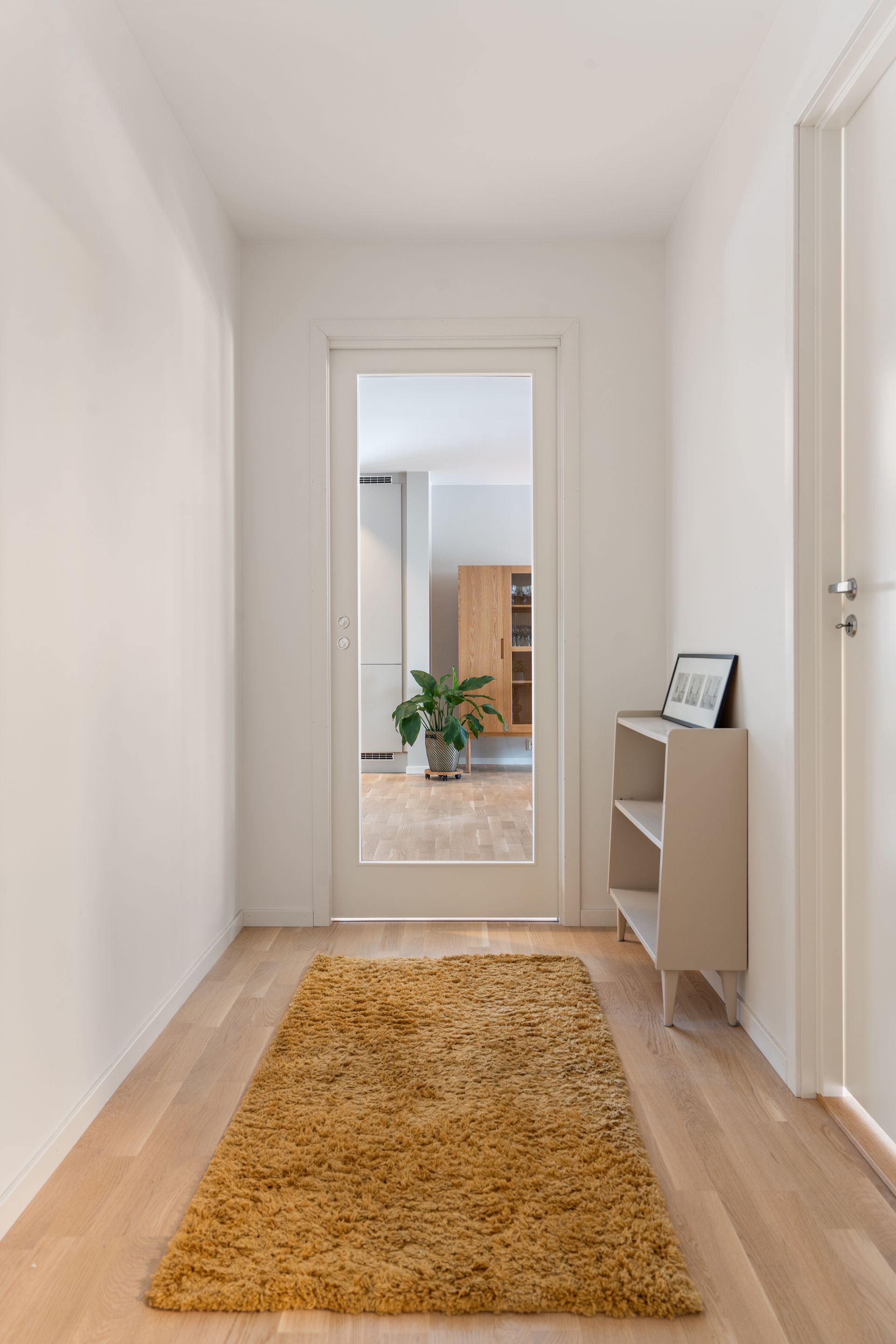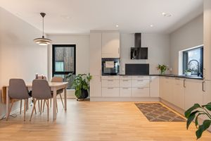 -Lys og romslig stue/kjøkken i åpen løsning. Rommet har god plass til ønsket møblement som for eksempel sofakrok og spisebord. Kjøkkeninnredning fra Designa med integrerte hvitevarer. Downlights belysning i kjøkkensonen. Store og gode vinduer som sørger for rikelig med naturlig dagslys inn i rommet. -Entre med oppbevaring. -2 stk. soverom - romslig hovedsoverom med skyvedørsgarderobe og soverom nummer 2 er utmerket som gjesterom, kontor eller gamingrom. -Lyst og tidsriktig baderom med store moderne fliser på gulv og på vegg i dusj. Mosaikkfliser på gulv i dusjsonen. Badet inneholder baderomsmøbel med oppbevaring, dusjhjørne og vegghengt toalett. -Vaskerom/teknisk rom med flislagt gulv i forbindelse med bad. Skyvedørsløsning slik at du kan lukke døren til vaskerom. Vaskerommet er romslig og har god plass til vaskemaskin/tørketrommel, og ekstra kjøl/fryseskap. Det er også en praktisk utslagsvask.