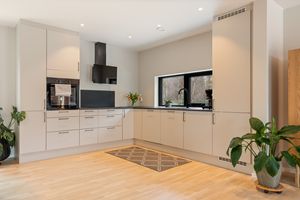 Detaljer/teknisk: -Sorte vinduer for et moderne preg. -Balansert ventilasjon med varmegjenvinning. -Vannbåren gulvvarme i stue/kjøkken, entrè og bad/vaskerom.
