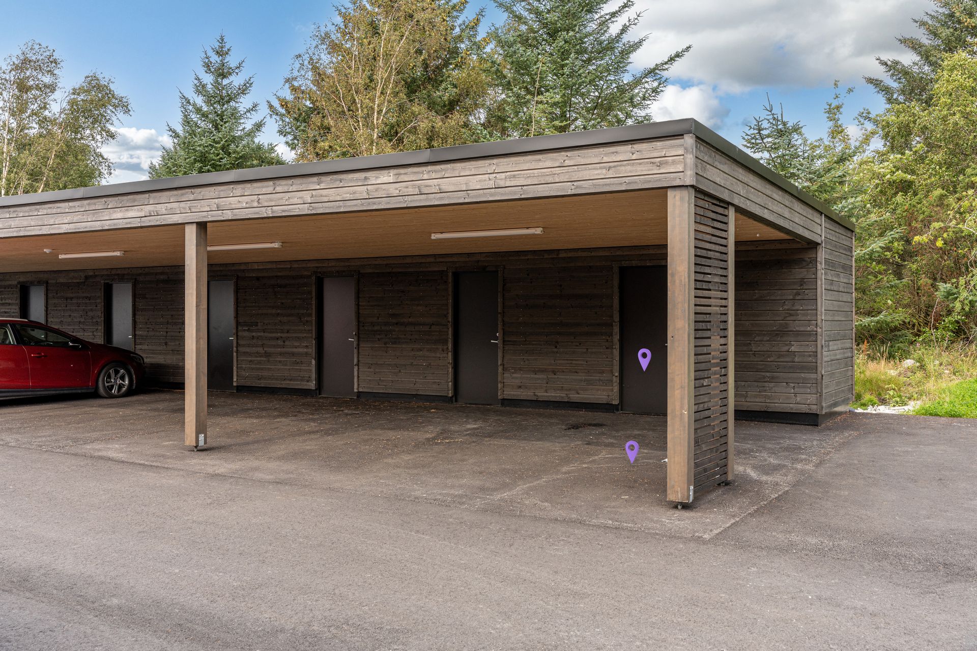 Utvendig: -Stor terrasse med adkomst fra stue/kjøkken. -Parkering i carport med utvendig bod.