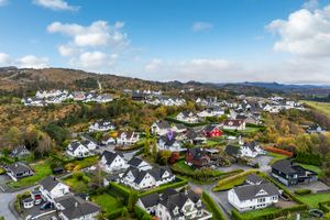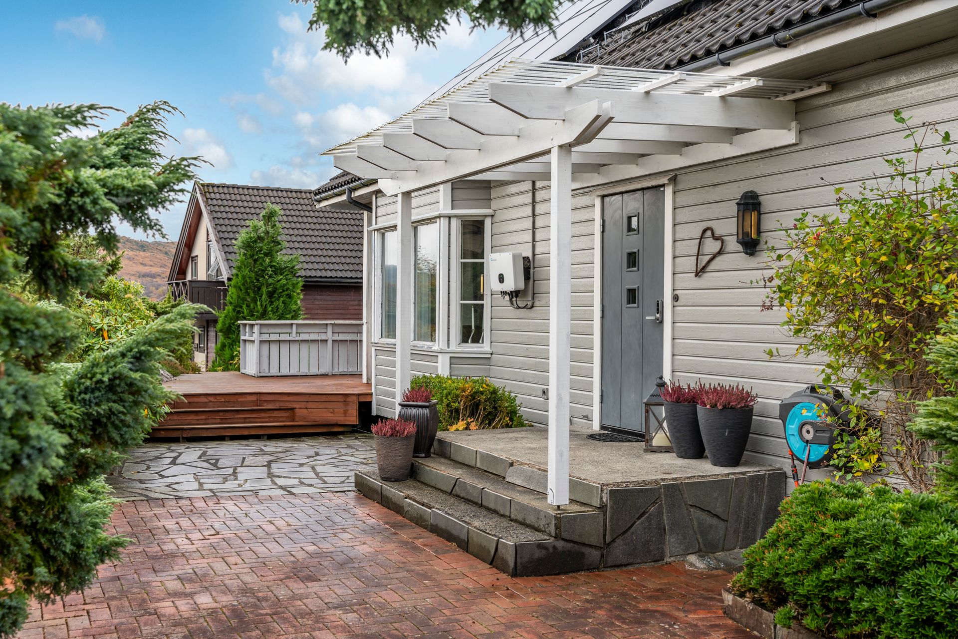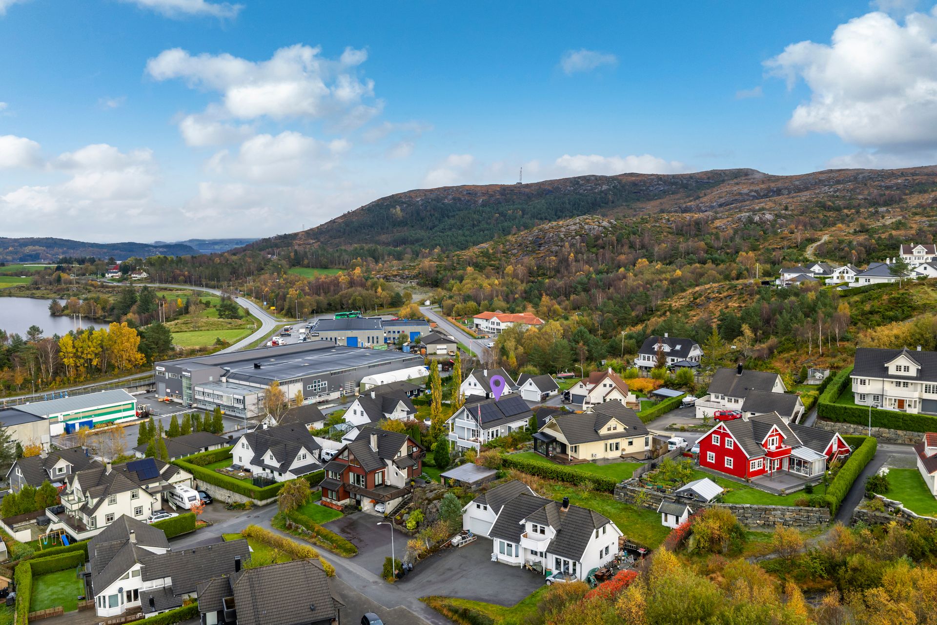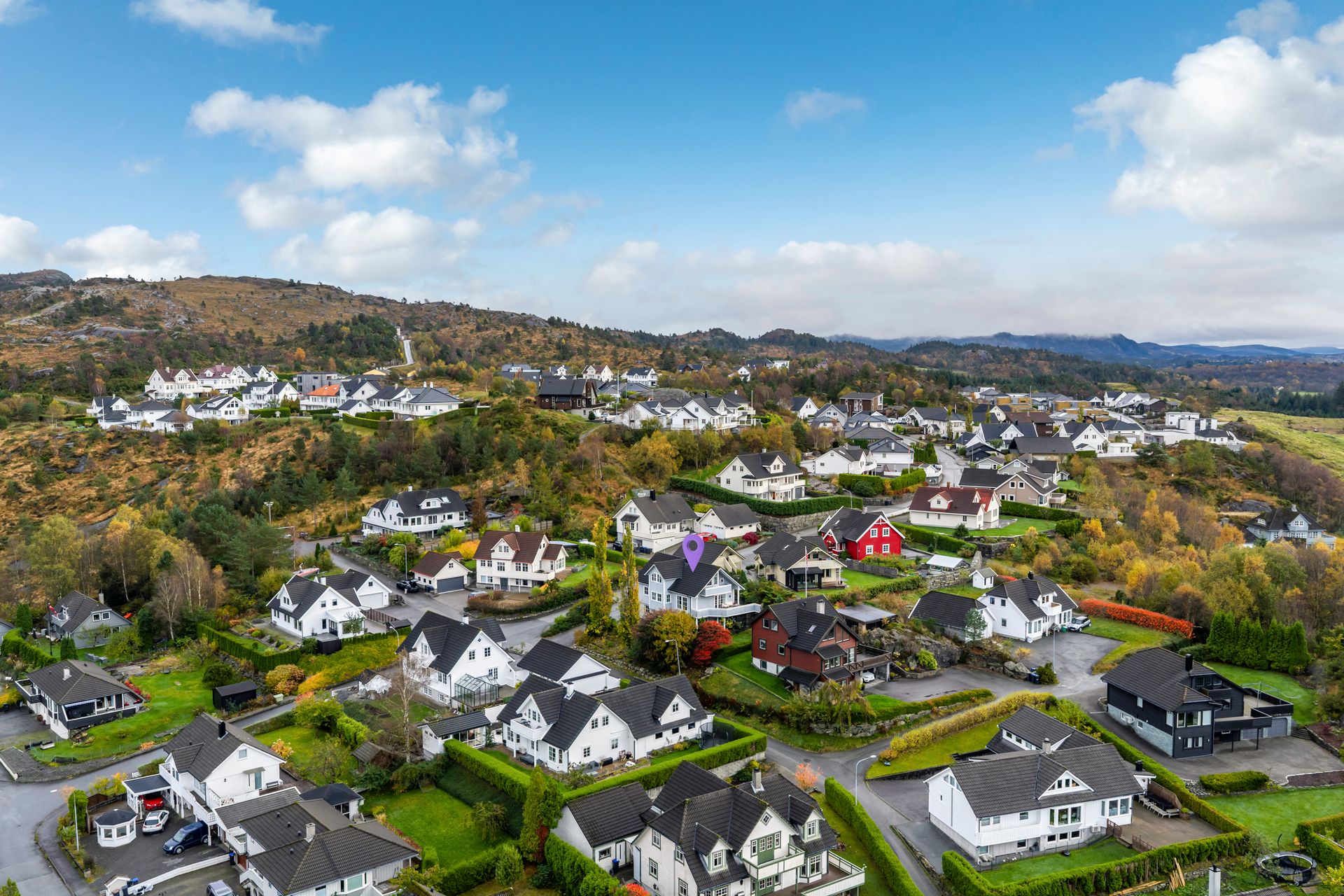 Boligen ligger i et nyere boligfelt på Garhaug, Grinde.