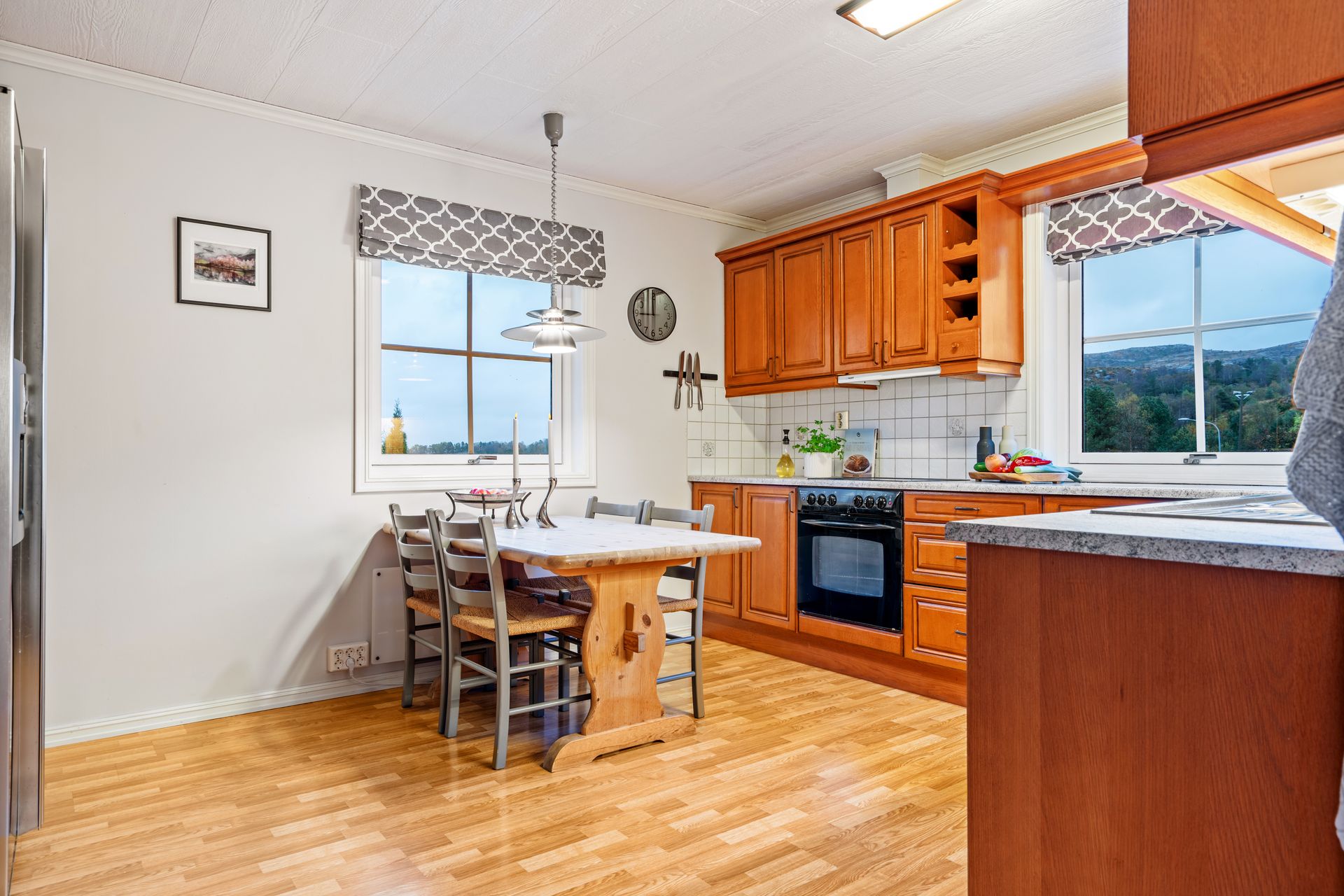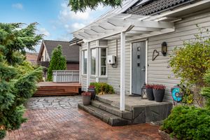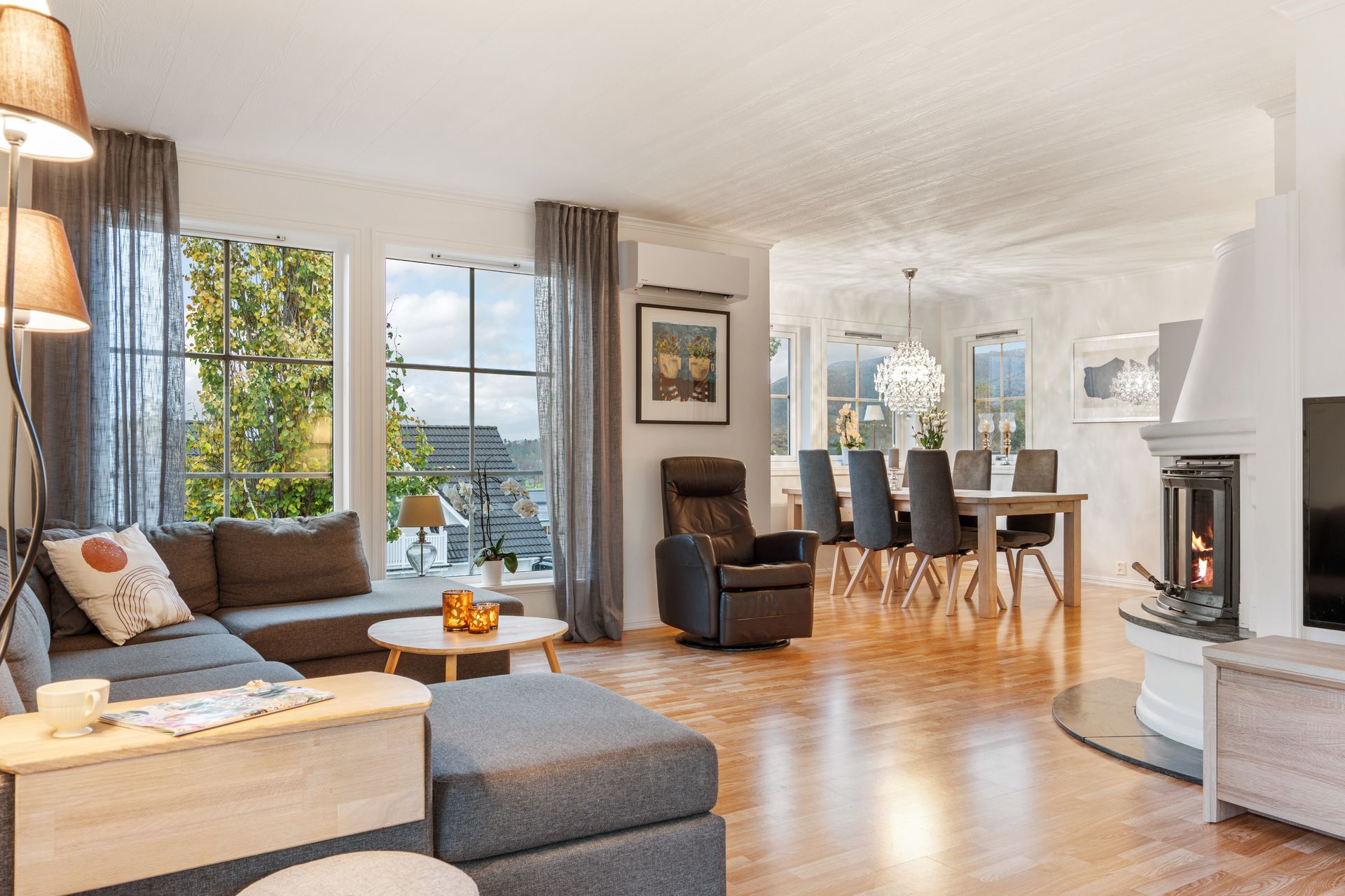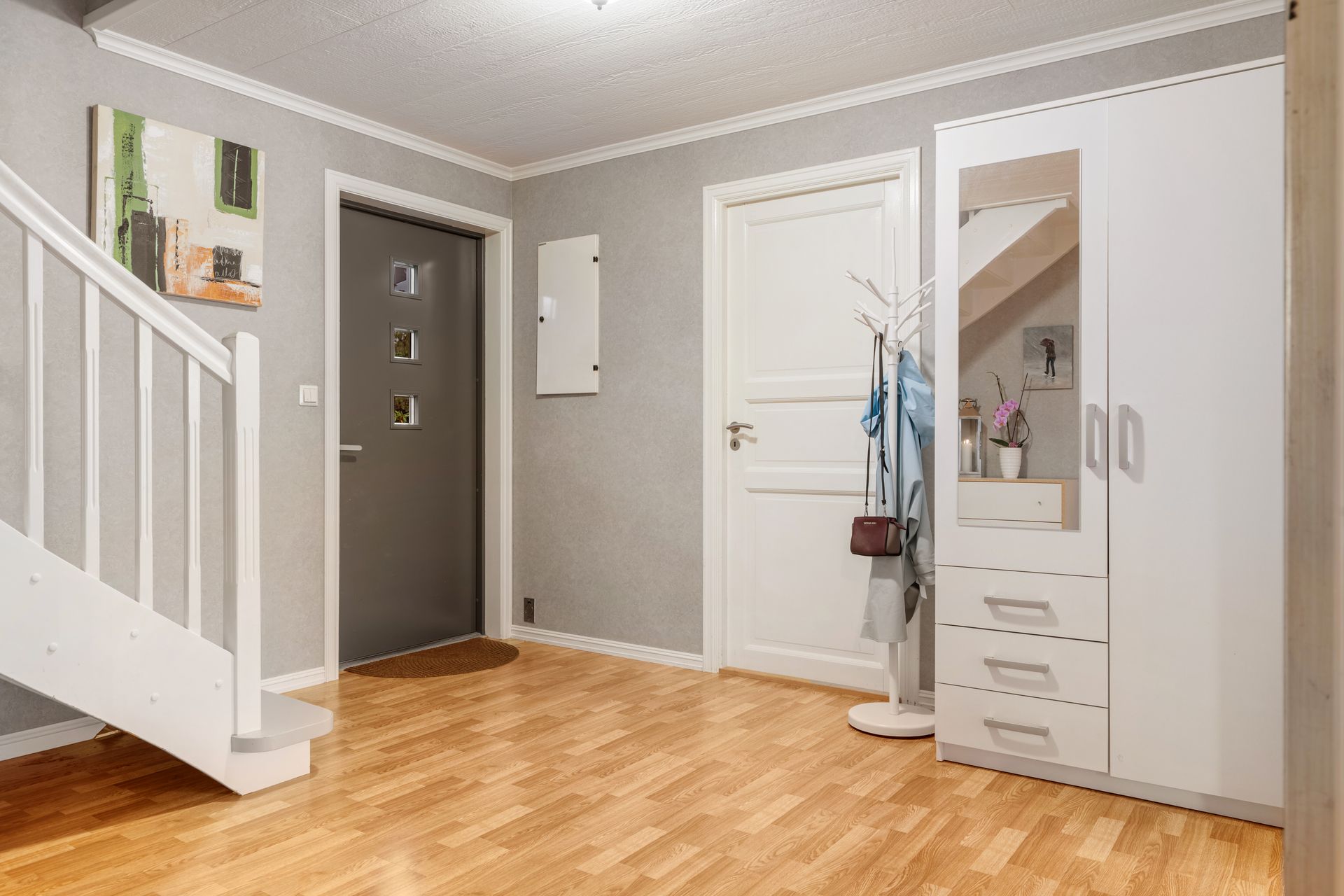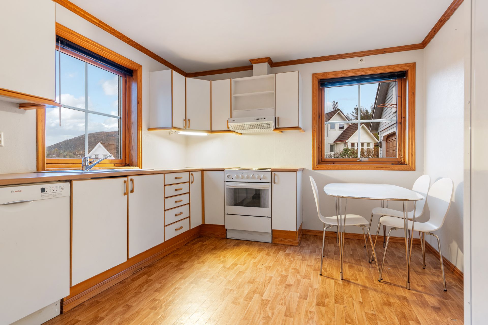 Boligen ligger i et nyere boligfelt på Garhaug, Grinde.