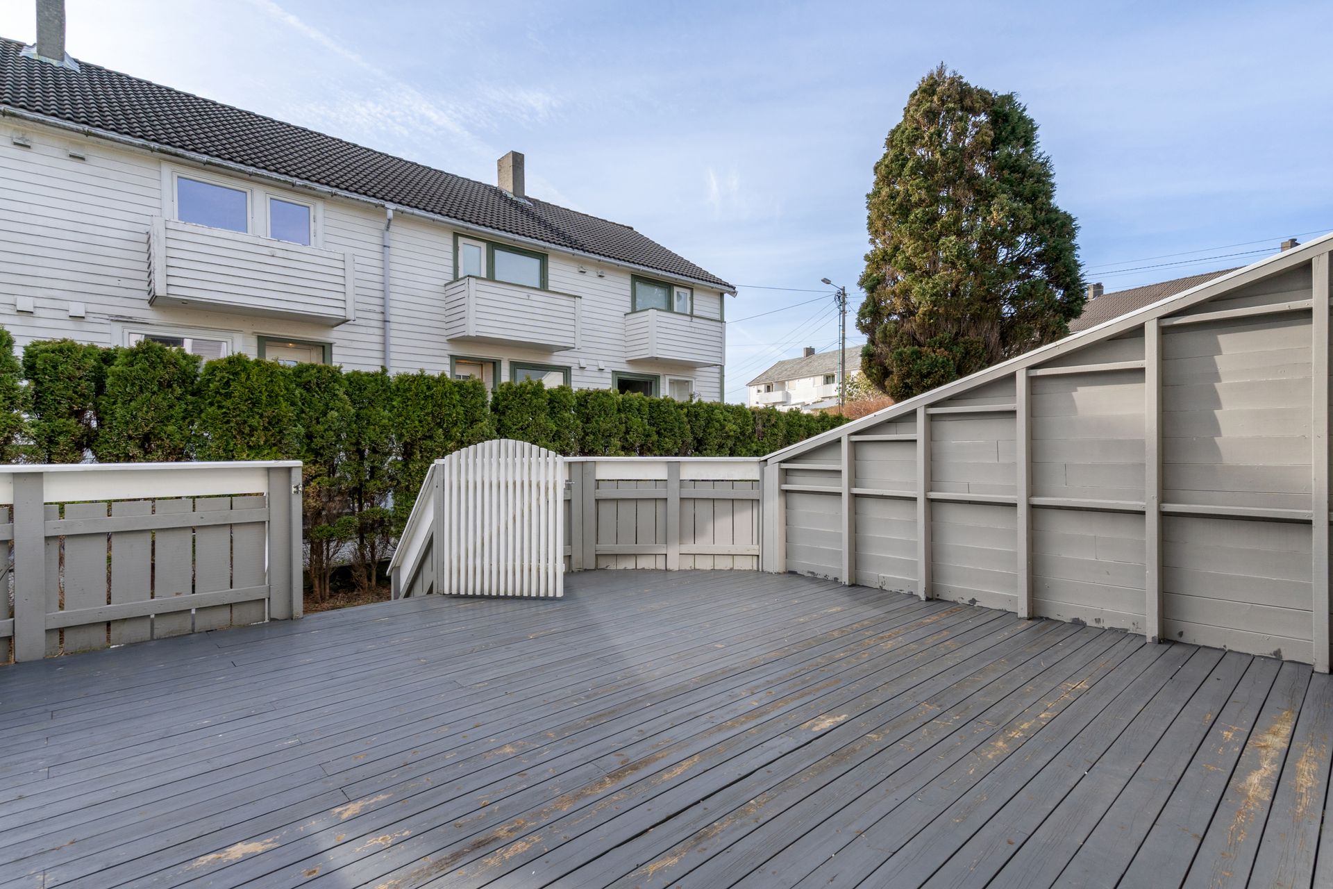 Midlertidig brukstillatelse for påbygging av terrasser foreligger med følgende anmerkninger: - Rekkverk på trapp ned til hage må monteres. Siden den midlertidige brukstillatelsen gjelder for hele bygget er det ikke klart hvilken trapp som manglet rekkverk eller om det gjaldt fra alle terrassene. Det er i hvertfall laget rekkverk på trappa til denne leiligheten.