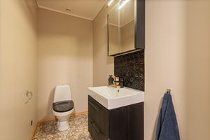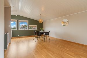 Innvendig: Underetasje: -Nyere gulvoverflater i gang og soverom. Installert gulvvarme i soverom. Skjært ut i betong og installert større vinduer i soverommene. -God oppbevaring i 2 uinnredet rom + bod under trapp. -Eldre vaskerom som holder uinnredet standard. Fungerer fint som et vaskerom. -Egen inngang til underetasjen.