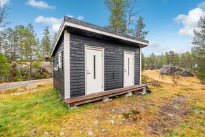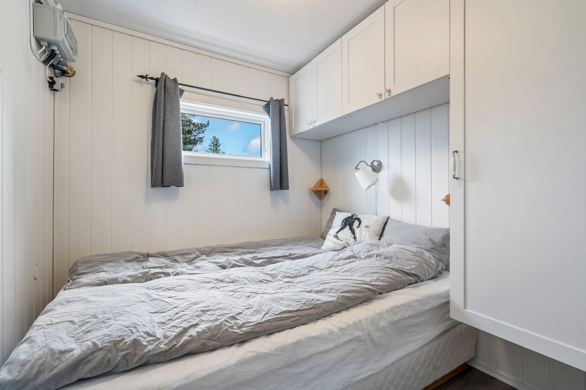 Fullisolert uthus. Består av bod og et rom som eier har to senger i (bod).