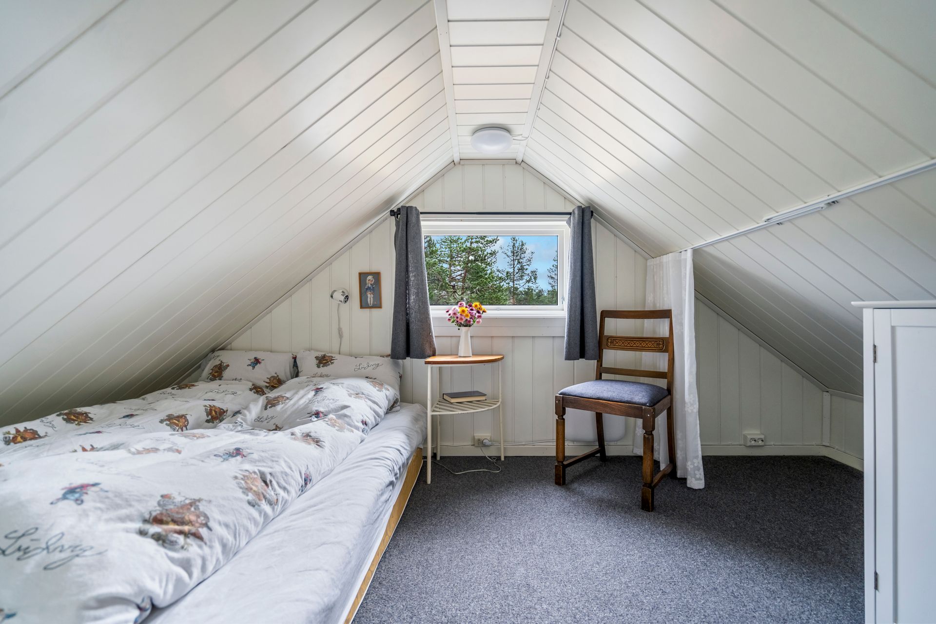 Innredet loft med innkledd kaldt loftskonstruksjon. Her er det to rom med senger som selger bruker som soverom ved behov, men som ikke er godkjent som dette (se bilder).