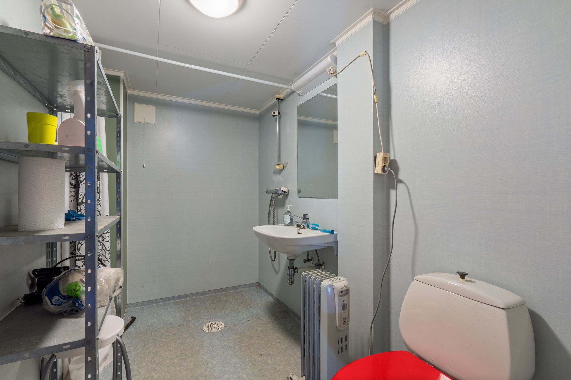 Vaskerom: Vaskerommet er bygget opp uten tettesjikt og er ikke innredet som våtrom. Veggene består av åpne murflater som vender ut mot terreng, og gulvet er av betong. Himlingen består av malt panel. Rommet inneholder opplegg for vaskemaskin, utslagsvask og varmtvannsbereder