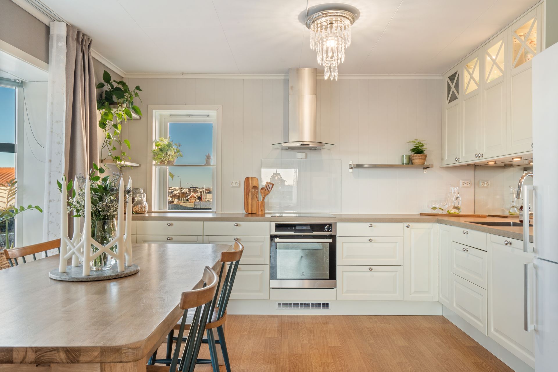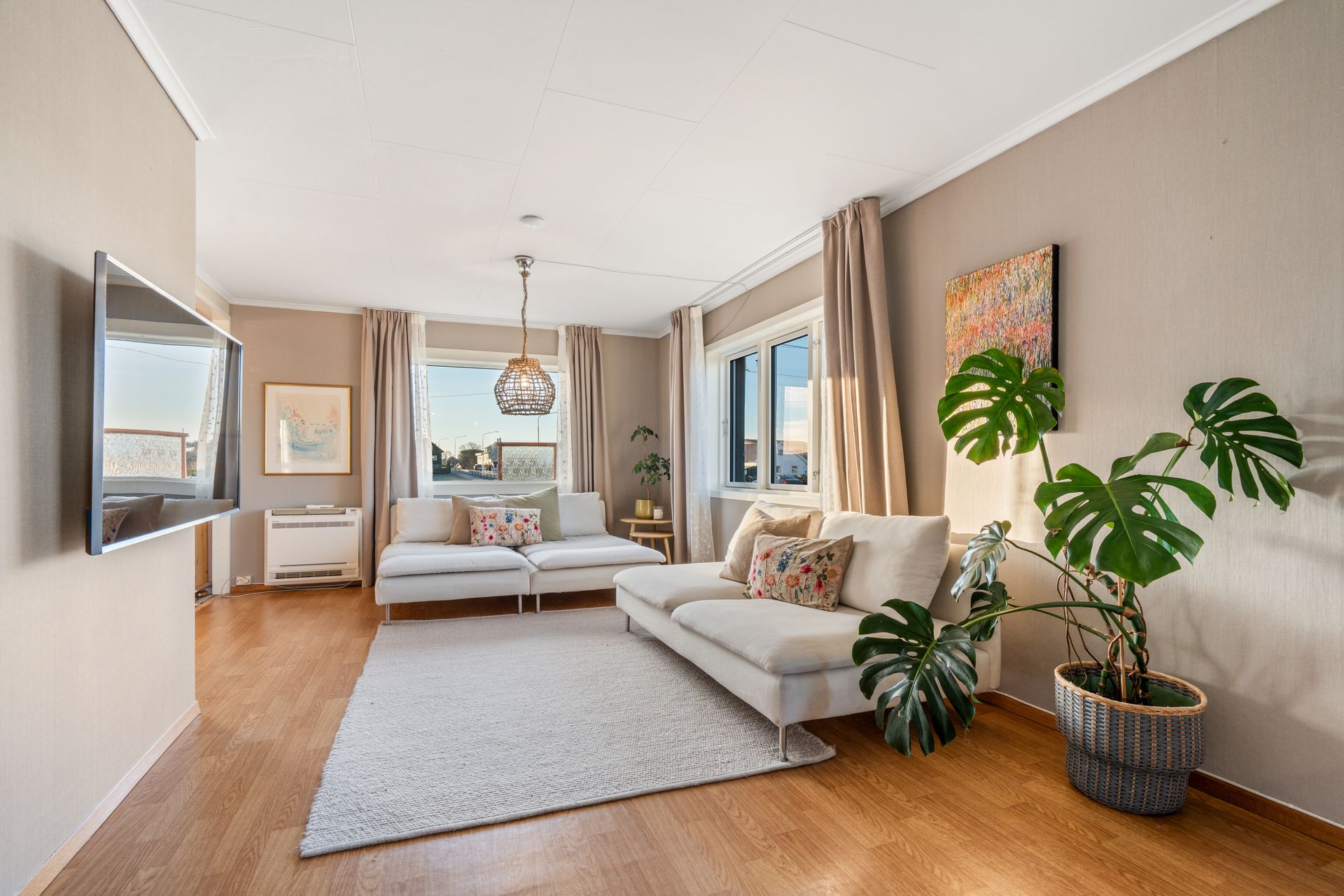Smartstyring medfølger boligen. Dette gjelder smartovner i flere av soverommene, smartstyring av begge varmepumpene og lys ved Philips hue med hue brytere i flere av rommene (stue, ett soverom oppe og begge soverommene nede).