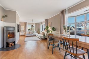 Boligen holder god standard og er oppgradert gjennom tiden med bla: -Nyere praktisk kjøkken innredning med god skap/benkeplass. Integrerte hvitevarer. -Flott klebersteinsovn som skaper en hyggelig atmosfære og gir god oppvarming. Det er også varmepumpe i stuen. -Baderom er oppgradert i nyere tid med gulvbelegg, baderomsplater, moderne dobbel servant med skuffer, speil og dusjvegger. -Eier har åpnet stuen - hvor tidligere soverom befant seg i hovedetasjen. Mulighet for å tilbakeføre soverom ved behov. 2.stk. vinduer i stue er skiftet. Vindu mot vest er byttet i 2023 (2-lags). Vindu mot sør er skiftet i 2024 (støydempende 3-lags). -Loftsetasjen er isolert mot tak i soverom mot sør, med trefiberisolasjon. I denne forbindelse ble også innvendig himling noe hevet, slik at bjelkene ble synlige. Det er også installert nytt vindu på dette rom i 2024 (støydempende 3-lags). -Oljetank er tømt. -I kjelleretasje "trapperom" er vegg mot øst revet og behandlet med diffusjonssperr og drenert utvendig. Egen inngang til kjelleretasje med nyere dør. I kjeller er det også montert 3 stk. mekaniske vifter (ventilasjon) for bedre inneklima. I tillegg er det varmepumpe i trapperommet. Montert 2 store vinduer mot vest i 2024 (støydempende 3-lags). -Det er 2 .stk soverom i kjelleretasjen. Rommene er romslige med nyere vinduer. Det er peis i det ene rommet. -Oppgradert noe elektrisk: Noe sikringer, flere stikkontakter, nytt inntak og el-bil lader.