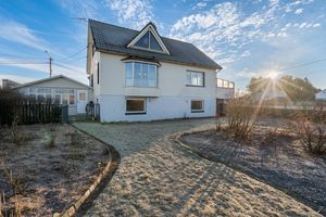 Sjarmerende enebolig m/garasje, hagestue og drivhus - Kort avstand til barneskole og Åkrasand - Innholdsrik/solrik hage