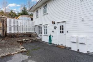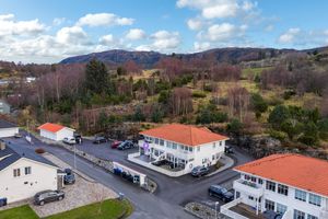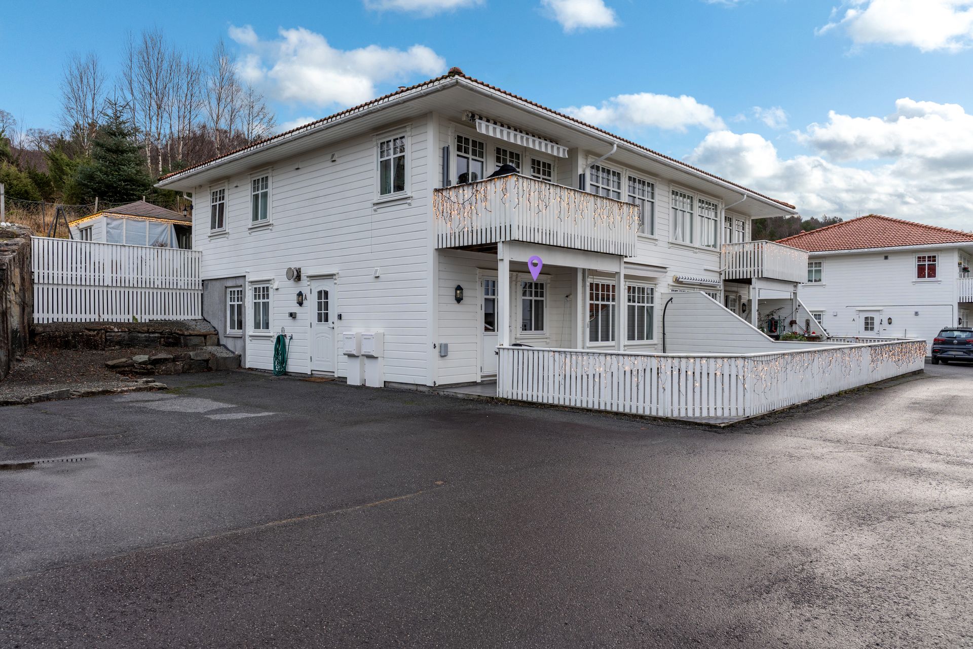 Leiligheten ligger i første etasje og har trappefri adkomst. Den er del av en korsdelt firemannsbolig, og alt ligger praktisk samlet på ett plan. Det følger også med utvendig bod i et frittliggende bodanlegg, god parkering med el-bil lader. Boden er romslig og gir svært god lagringsplass.