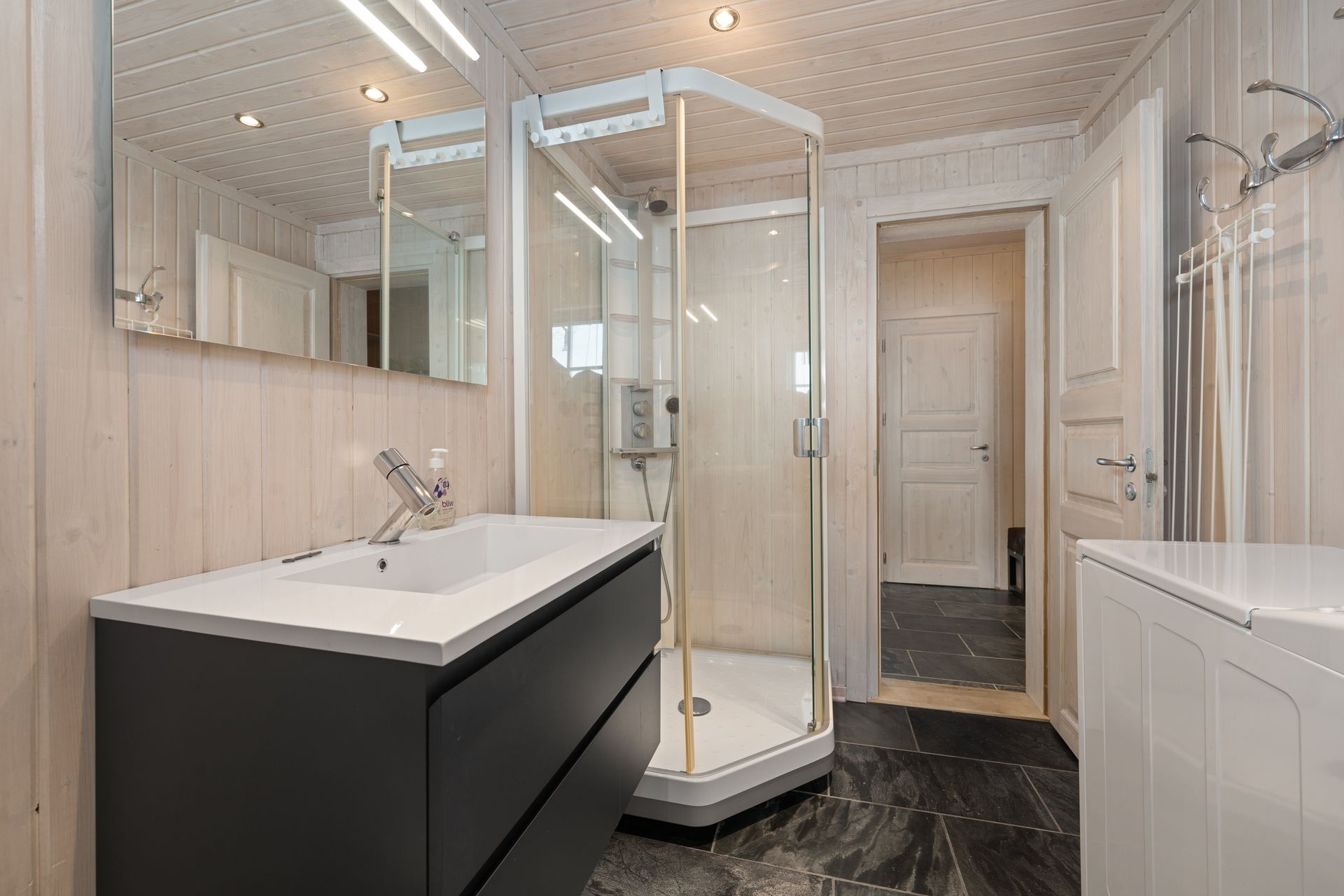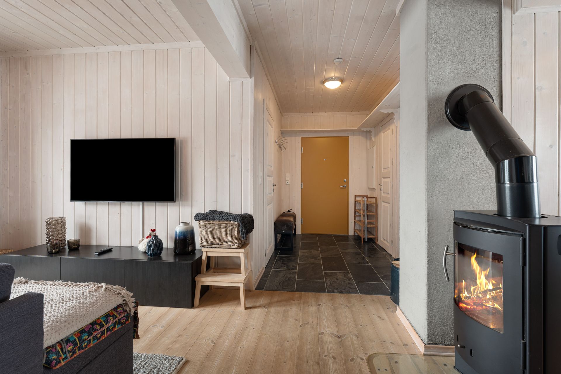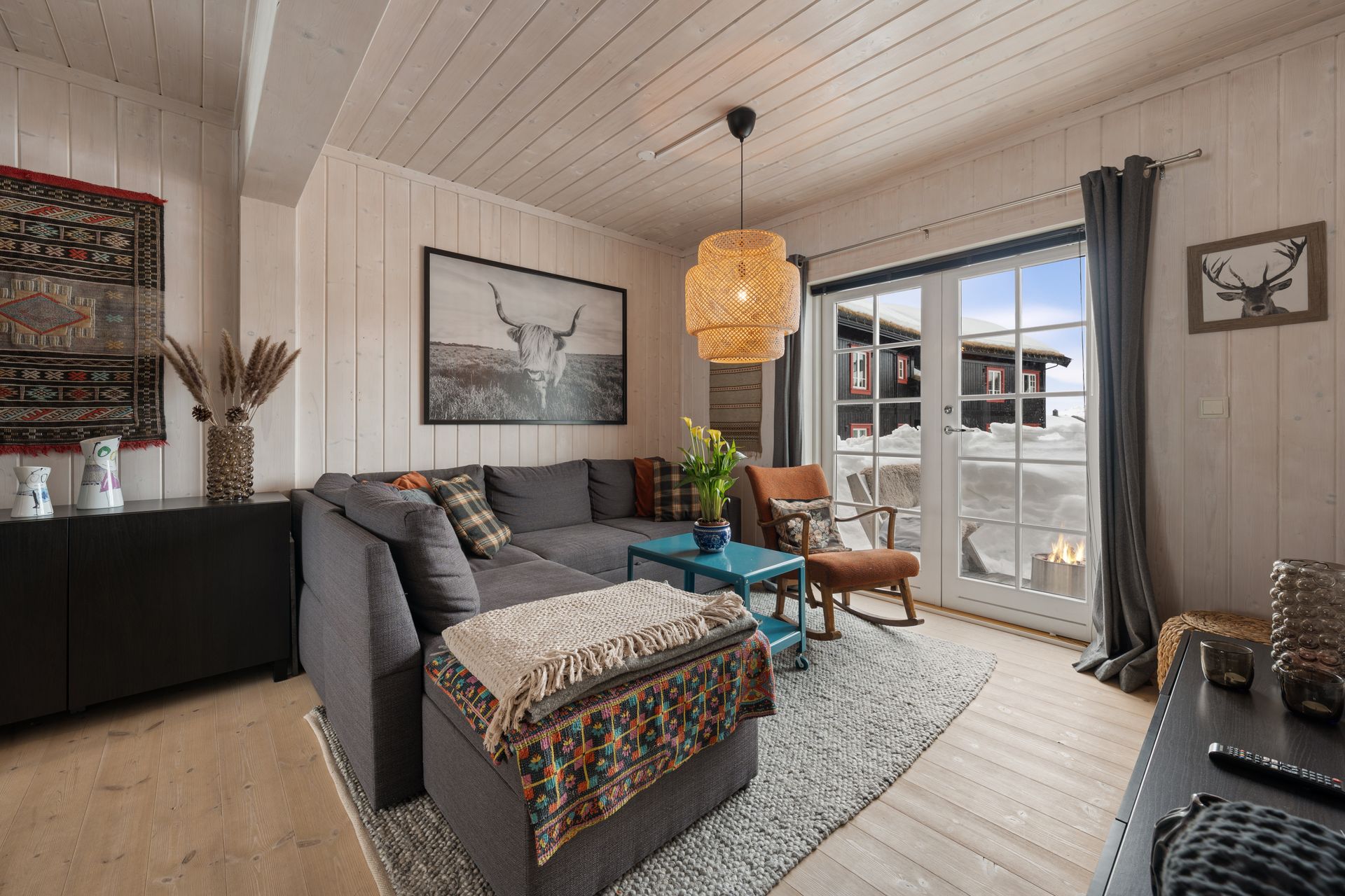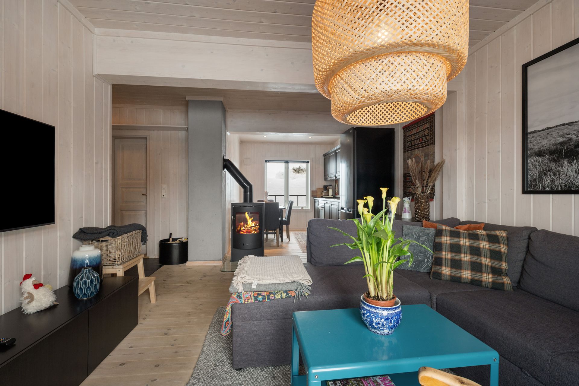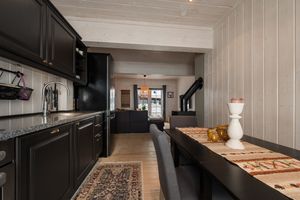 Velkommen til Råsalivegen 4 E, en lys og tiltalende leilighet beliggende på bakkeplan. Denne leiligheten skiller seg ut med at du har vindu på kjøkken som gir gjennomlys. Ute i trapperom er det en praktisk bod som disponeres sammen med nabo. Denne er ypperlig til å lagre ved, ski etc. Utenfor leiligheten er det et praktisk oppheng for ski slik at disse ikke ligger strødd utover. Det er egen separat inngang til leiligheten og denne består av entre/gang med skiferfliser og varmekabler på gulv. Praktisk når en kommer inn med snø på beina. God garderobeplass i gang og praktisk lagringshylle oppe langs tak. Hovedsoverom har god plass for dobbeltseng og det er montert låsbare skap langs ene vegg. Praktisk med låsbare skap slik at en kan stue bort sine private ting når en leier ut leiligheten. Soverom 2 er en bod med vindu, denne er innredet med skap og en køyeseng med 3 soveplasser. Romslig bad/wc med fliser på gulv, varmekabler, opplegg for vaskemaskin, dusjkabinett og bred vaskeseksjon med skuffer. Det er åpen stue - kjøkkenløsning med vinduer i begge sider, dette gjør leiligheten meget lys og lettlig. Kjøkken har et tidsriktig sort kjøkken med rikelig av skap og benkeplass. Integrert oppvaskmaskin, kjøleskap, komfyr og platetopp. Matchende frittstående kjøle/frysesskap. Spiseplass. En pen peisovn er praktisk plassert midt i leiligheten. I stuedelen er det en stor sovesofa og doble fløydører ut til en sørvendt solrik terrasse. Leiligheten selges med nesten alt av møbler - inventar slik at en kan ta i bruk leiligheten umiddelbart.