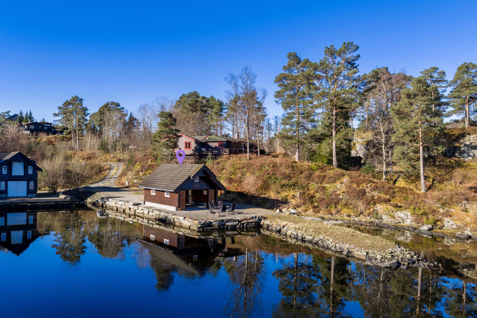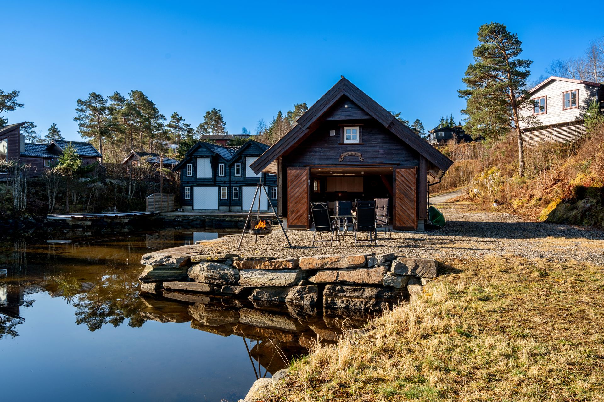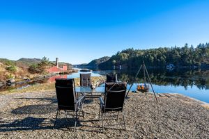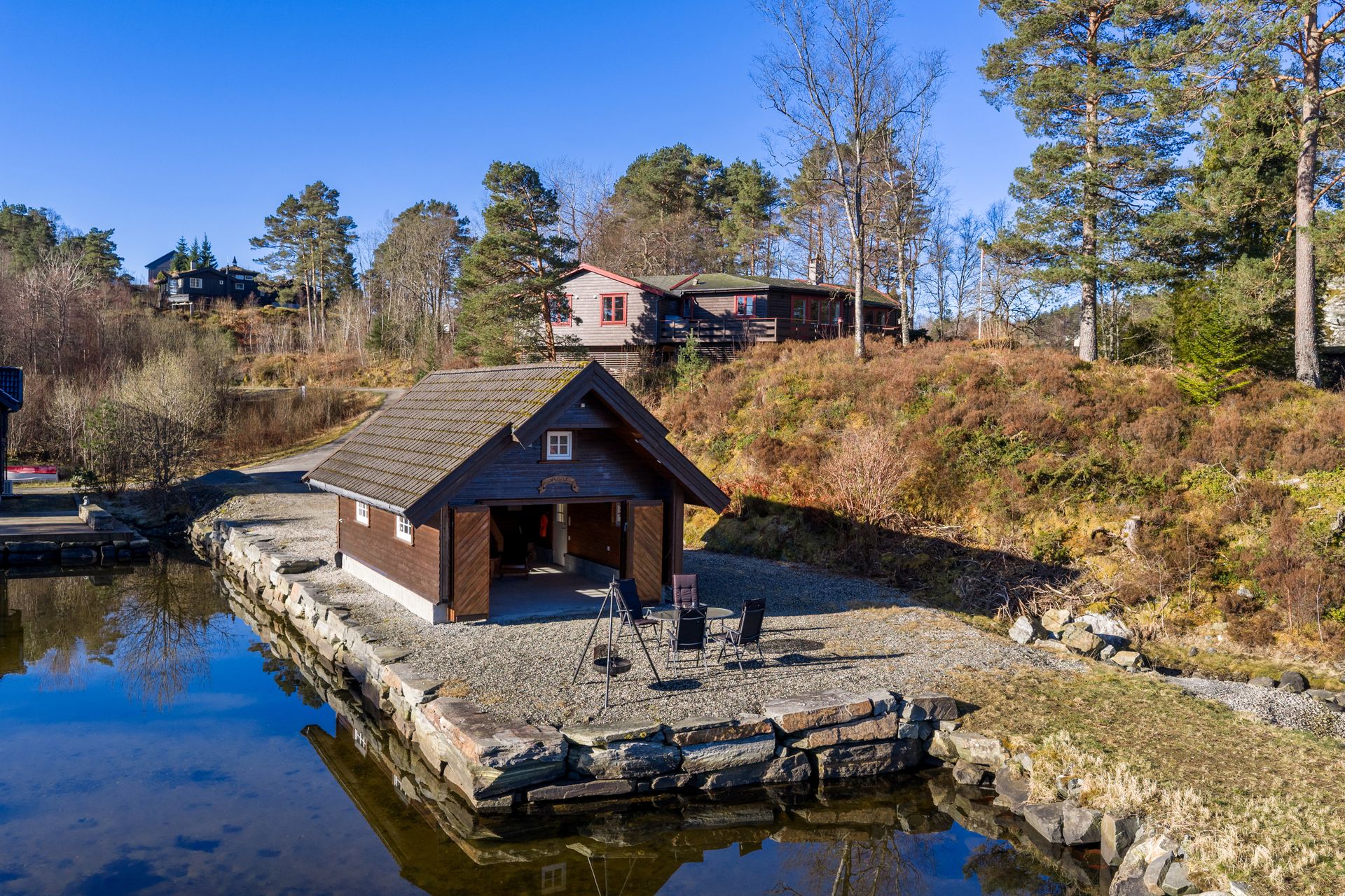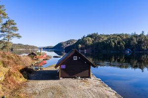 Stort og flott naust over to etasjer med spektakulær tomt og beliggenhet - "Familiekos"