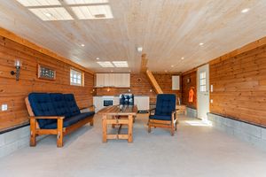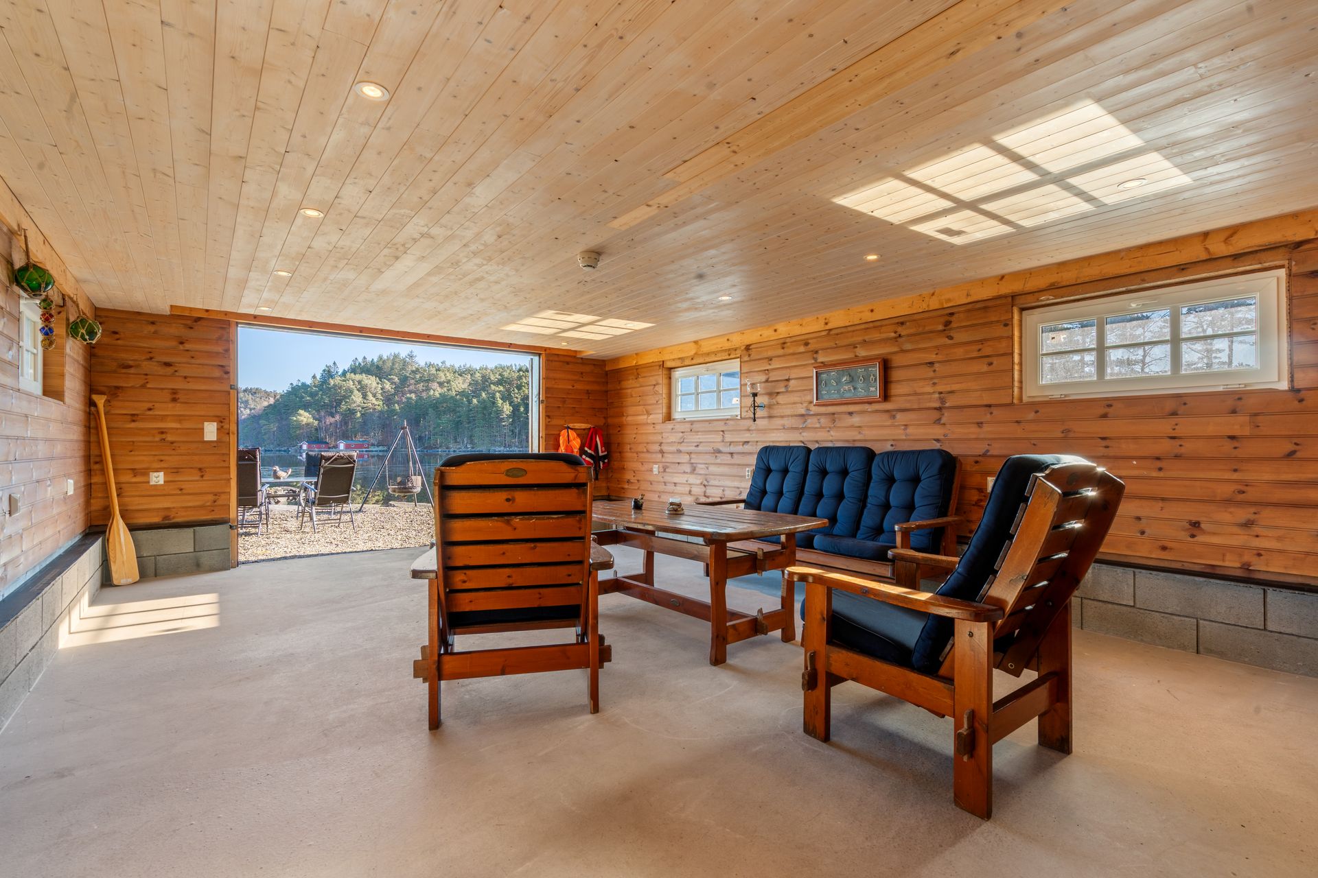 - Naustrom har betonggulv, panel på vegg og i tak.