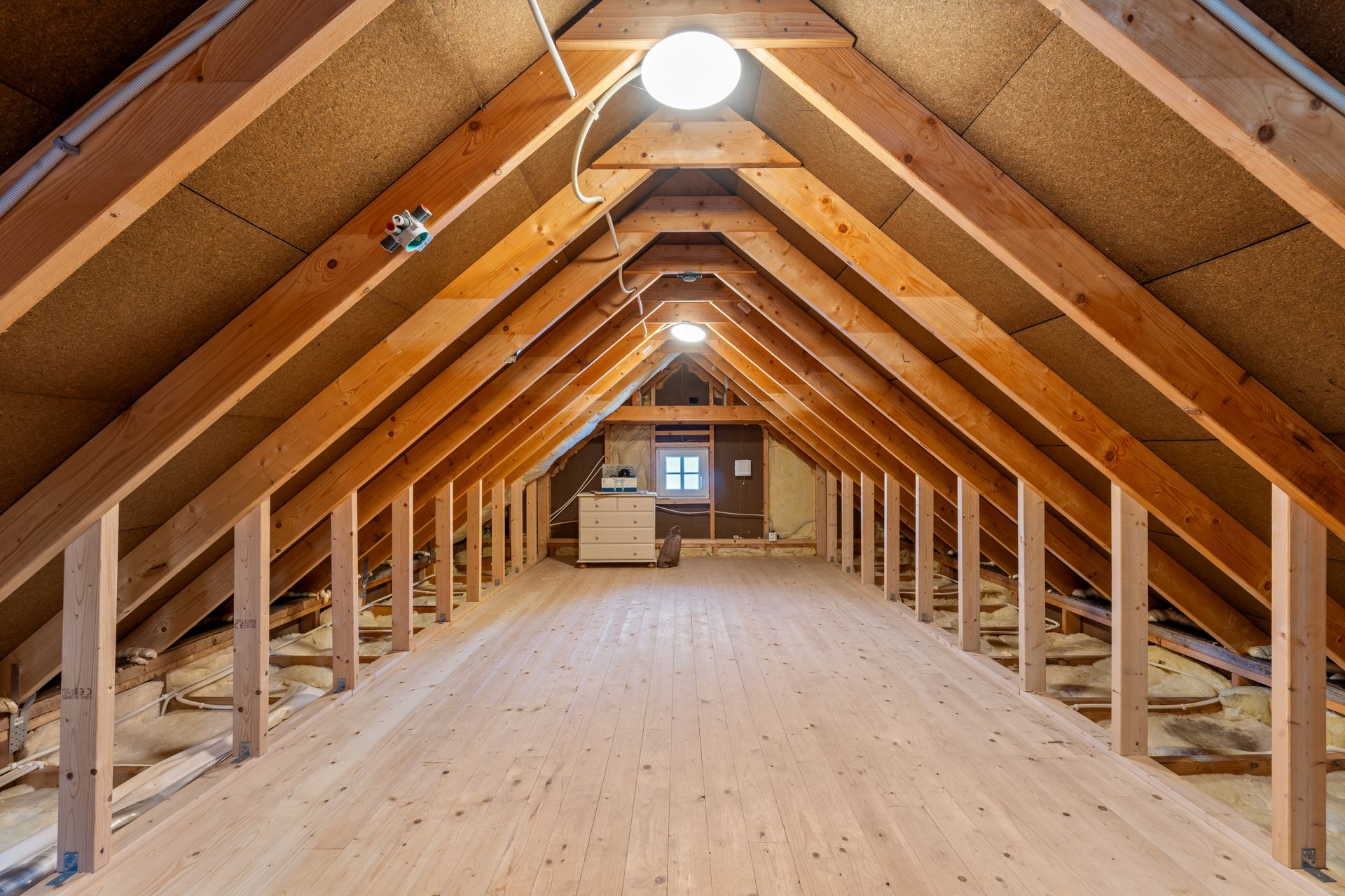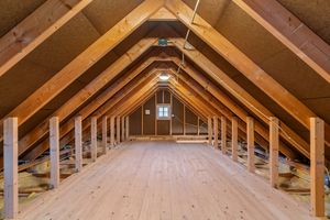 Bøteloft: Innvendig trapp opp til bøteloft med vinduer i hver ende. Bare delvis isolert. Lagt heltre gulv frem til kneveggen. Det er både strøm og belysning på bøteloftet.