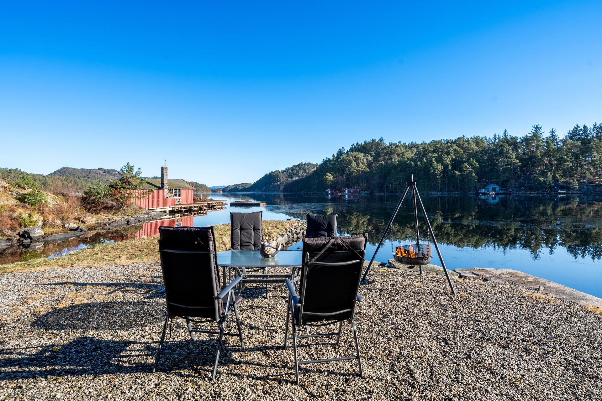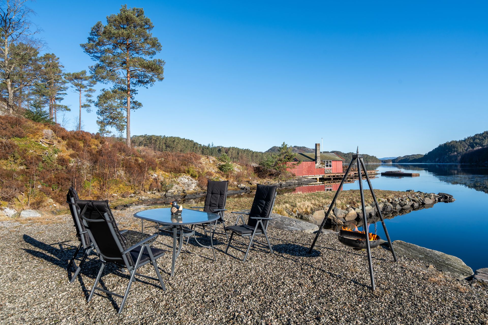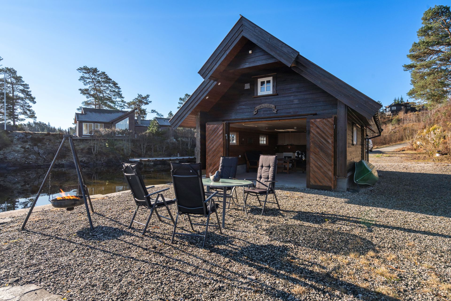 - Naustet har utvendig belysning og utvendige stikkontakter.