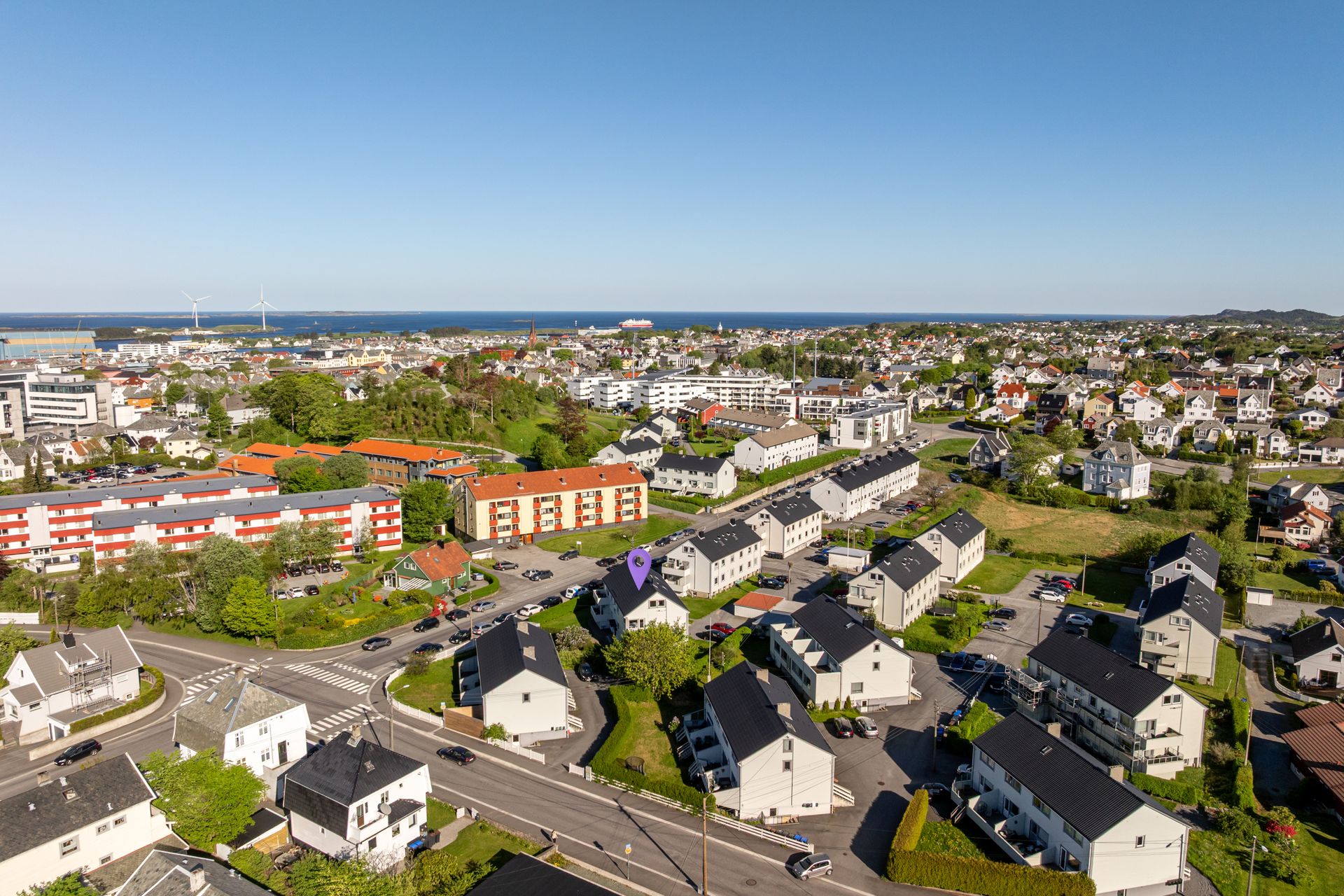 Sentral og attraktiv beliggenhet i Haugesund. Her har en gangavstand til sentrum og byens fasiliteter. Kort vei til dagligvarebutikk, skole, barnehager, idrettsanlegg, turområder, Haugesund sykehus, høyskolen, treningssenter m.m. Gode bussforbindelser et steinkast unna.