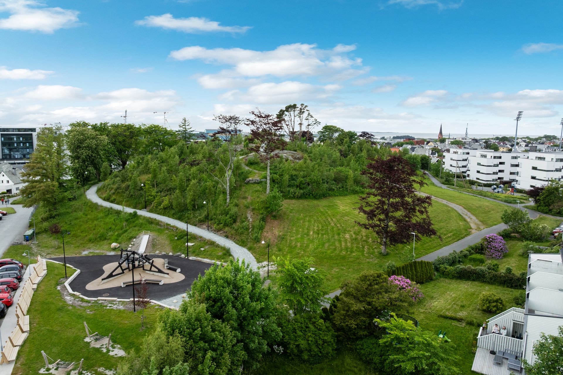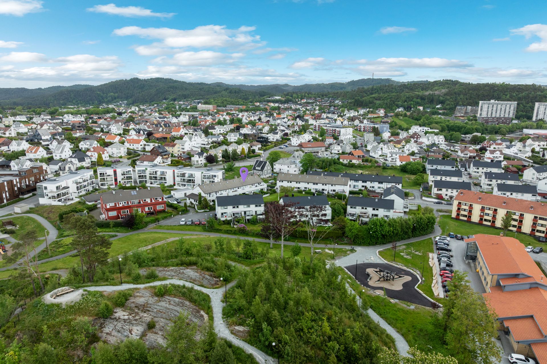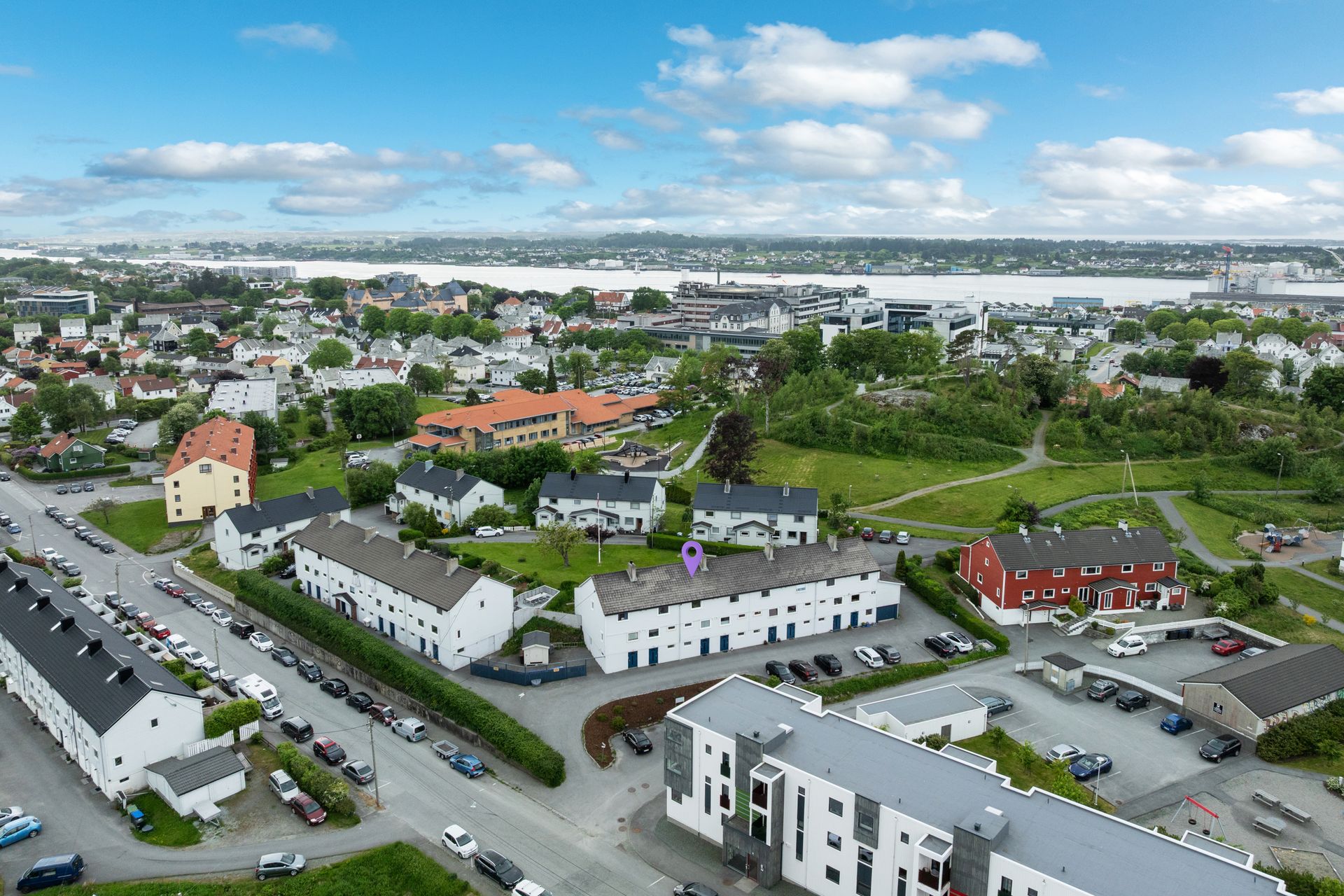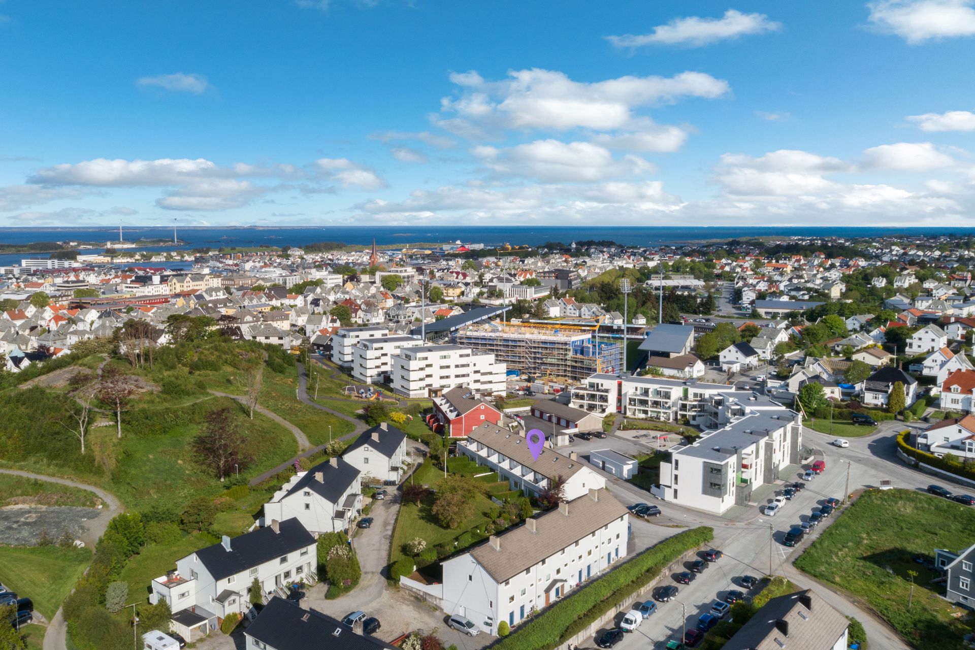 Sentralt beliggende bolig like ved Haugesund stadion med 5 minutter gange til Haugesund sentrum. Få minutter gange til høyskole, kjøpesenter, sykehus, treningssentre og dagligvarebutikker. Området er kjent for sin unike frodige bakhage og sør/vestvendt beliggenhet som gir lunhet og suverene solforhold. Rolig område med stort fellesområde på baksiden som grenser til friområdet "Hollenderhaugen". Barnevennlig beliggenhet med flere lekeplasser, barne og videregående skoler i nærheten. Det er også kort vei til flotte friluftsområder som blant annet Djupadalen og Vangen.