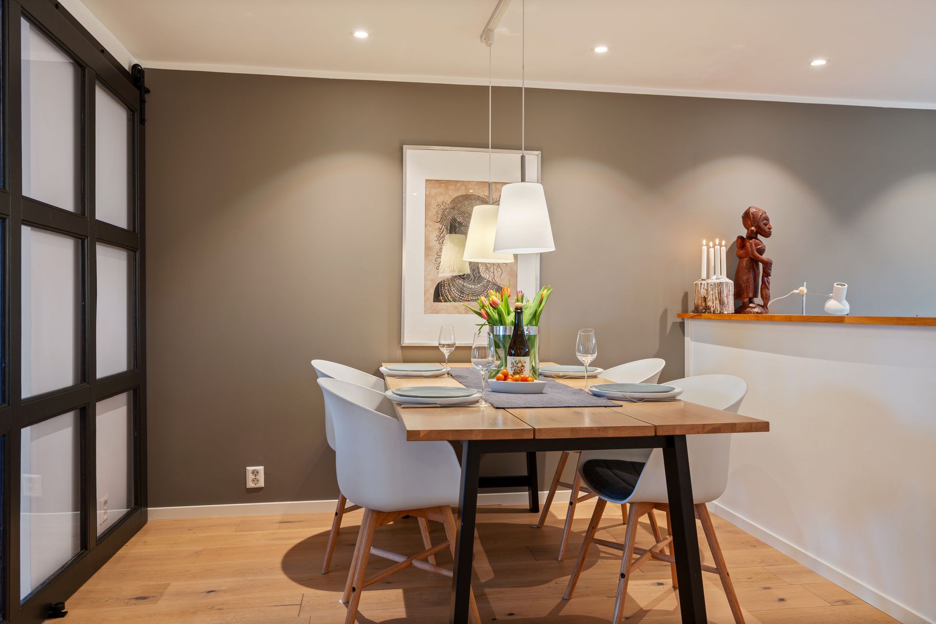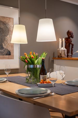 -Romslig entré med nye gulvoverflater og gipset vegg overflater. -Praktisk vaskerom med god størrelse og stort potensial. -Nyere elektrisk anlegg. Oppgradert deler av det elektriske. -Rør i rør system. -Stue og kjøkken har en åpen og luftig løsning med oppgradert, moderne kjøkkeninnredning fra IKEA med integrerte hvitevarer. Det er lagt nye gulv (1-stavs parkett), gipset vegger og tak, samt montert spotter. Boligen har også varmepumpe (ca. 5–6 år) og nyere vedovn. I forbindelse med oppussing av stuen opplyser eier at det ble etterisolert med 50mm i vegger og tak. -Flott skyvedør som binder kjøkkenet med stuen og gir en moderne “townhouse” følelse. -Eier opplyser om svært gode solforhold på terrassen, med sol fra morgen til kveld. -Tredje etasje inneholder tre gode soverom og et helfliset bad. -Loft med gulv og belysning, med mulighet for innredning av loftstue, slik flere tilsvarende boliger har gjort.