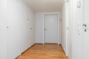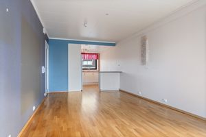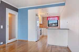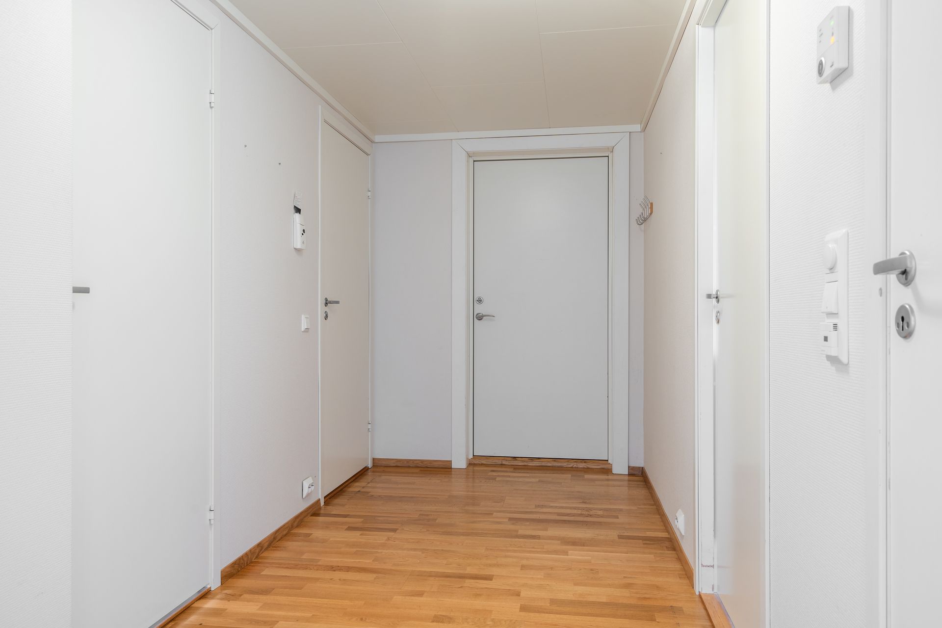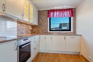 Leiligheten er meget innbydende med malte overflater på vegger og tak samt parkett på gulv. Inneholder en romslig gang til å henge fra seg yttertøy. 2 gode soverom med garderobe. Fliselagt bad med varmekabler i gulv, dusjnisje, vegghengt toalett, baderomsinnredning med servant og speil. Stue og kjøkken i åpen løsning med god plass til både sofa og spisestue. Drømmekjøkken med god skap og benkeplass. Integrert kjøl - frys, komfyr, platetopp og oppvaskmaskin. Utgang til sørvendt terrasse. Separat vaskerom/teknisk rom. Heis ned til garasje og bod i kjeller.