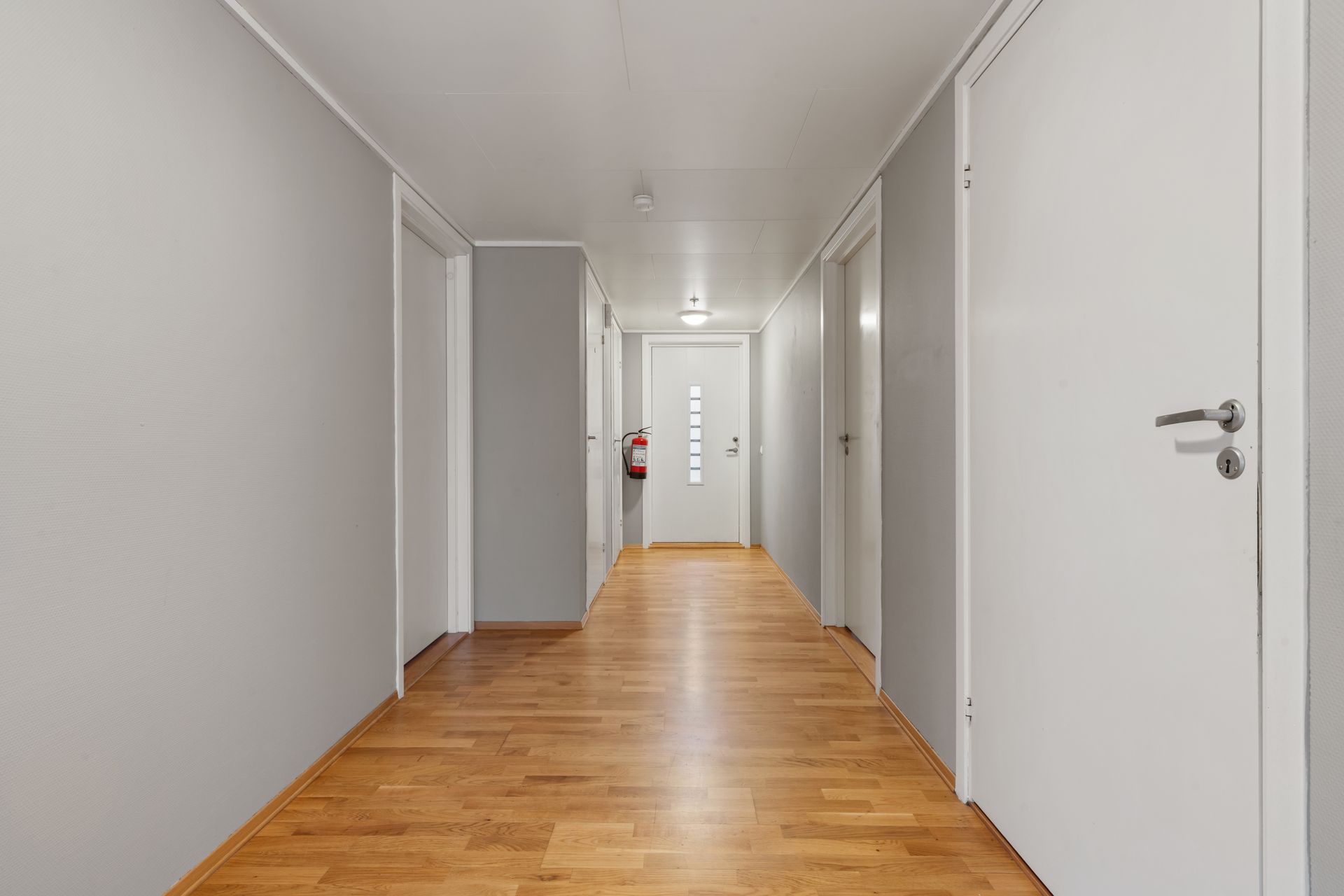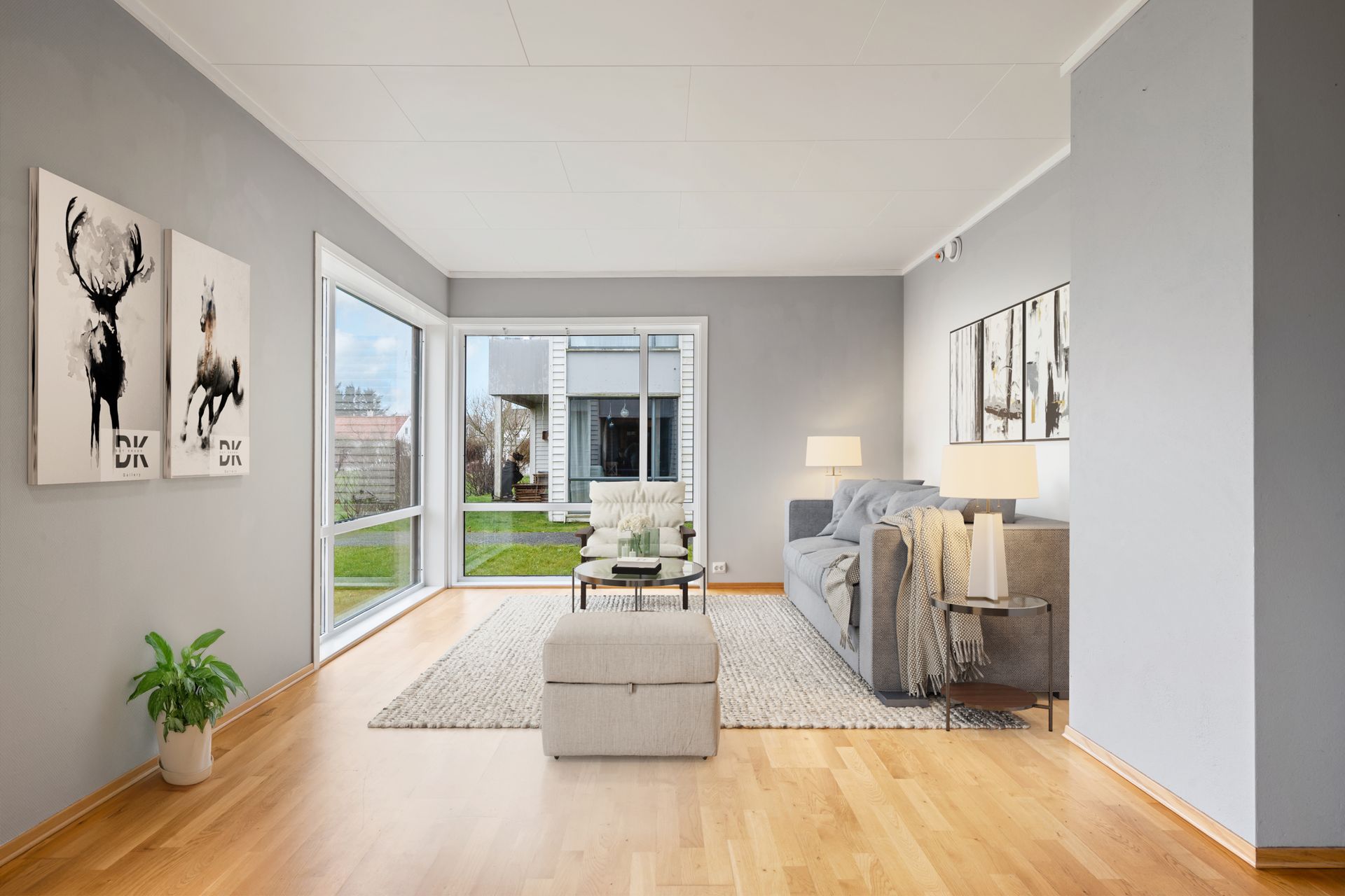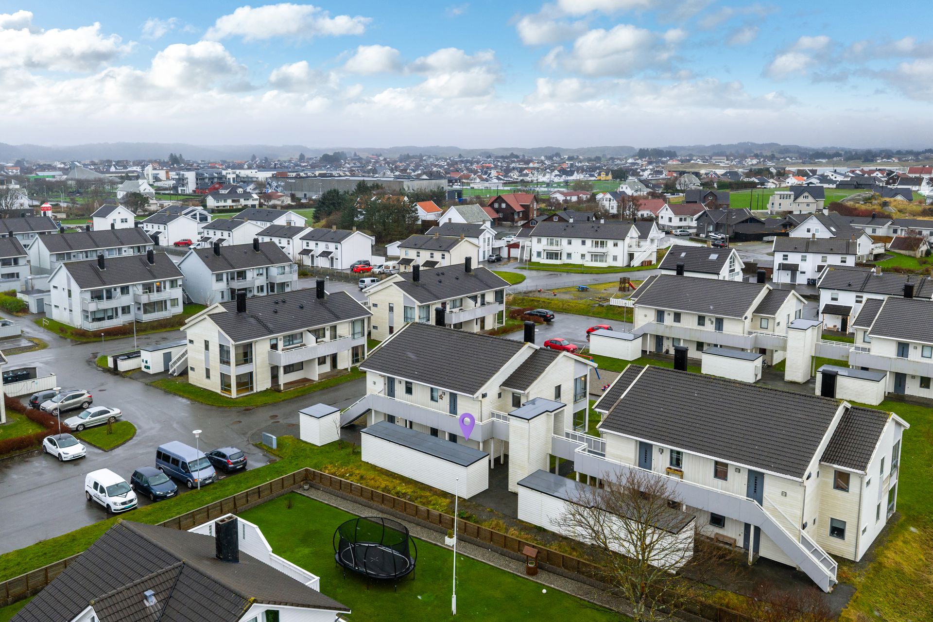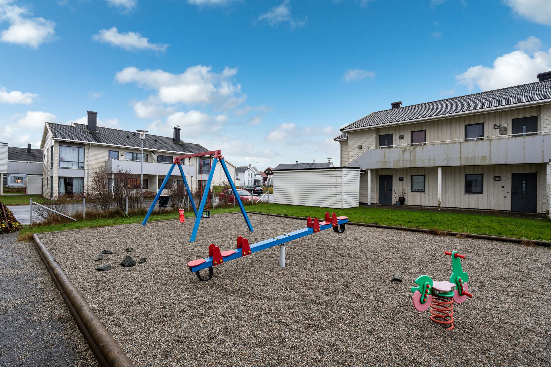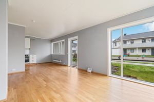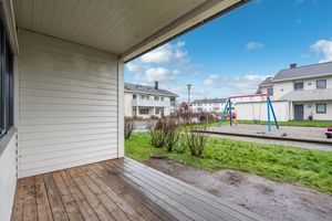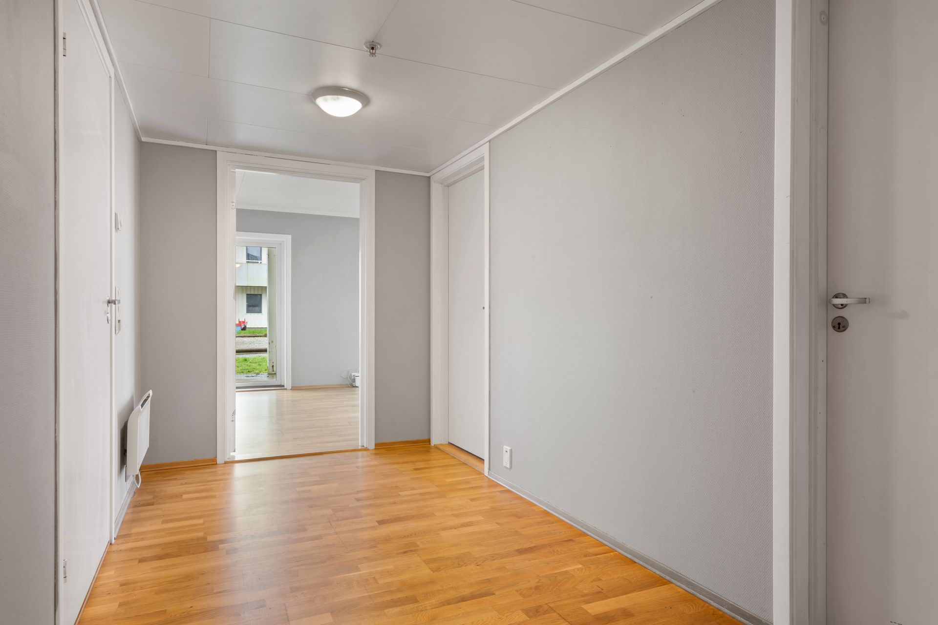 En meget praktisk 4-roms leilighet i 1. etasje med trappefri adkomst. Denne leiligheten ligger optimalt til i 1. etasje, ingen trafikk i forkant. Inneholder entre/gang med garderobeplass. Bod/teknisk rom. Gjestetoalett med vask. 3 gode soverom hvorav hovedsoverommet har god skapplass. Bad/wc har fliser på gulv med varmekabler. Våtromsplater på vegger. Dusjkabinett og opplegg for vaskemaskin. Åpen stue - kjøkkenløsning. God skap og benkeplass. Integrert komfyr og platetopp. Plass til oppvaskmaskin. Det er god plass til sofagruppe og spisestue. Pipeløp gir mulighet til peis - ildsted. Utgang til sørvendt terrasse. Det er i tillegg en bod utenfor inngangsdøren.