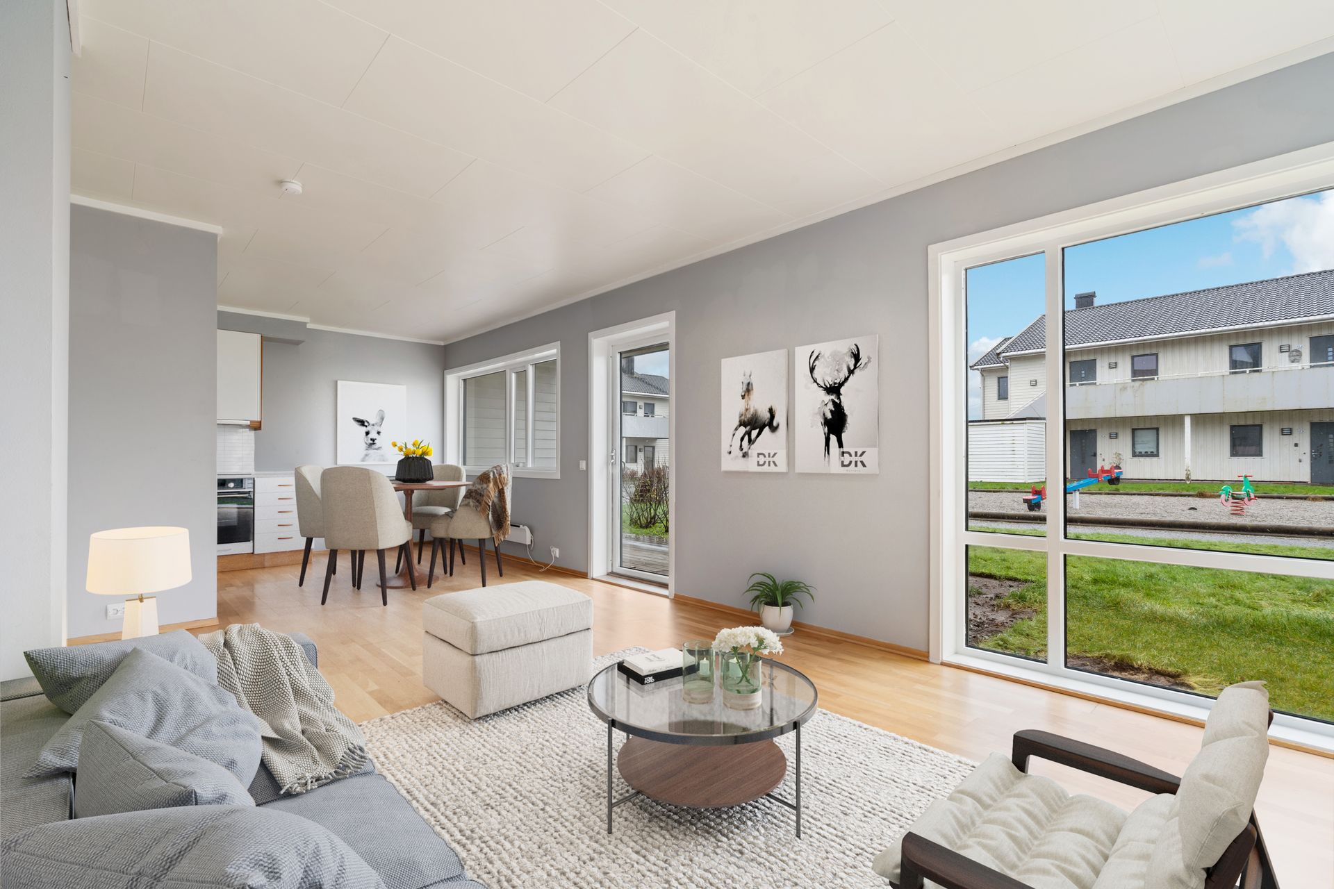 Åkra - Praktisk og kjekk leilighet med 3 soverom - Livsløpstandard - Gangavstand til "alt" - Sørvendt terrasse