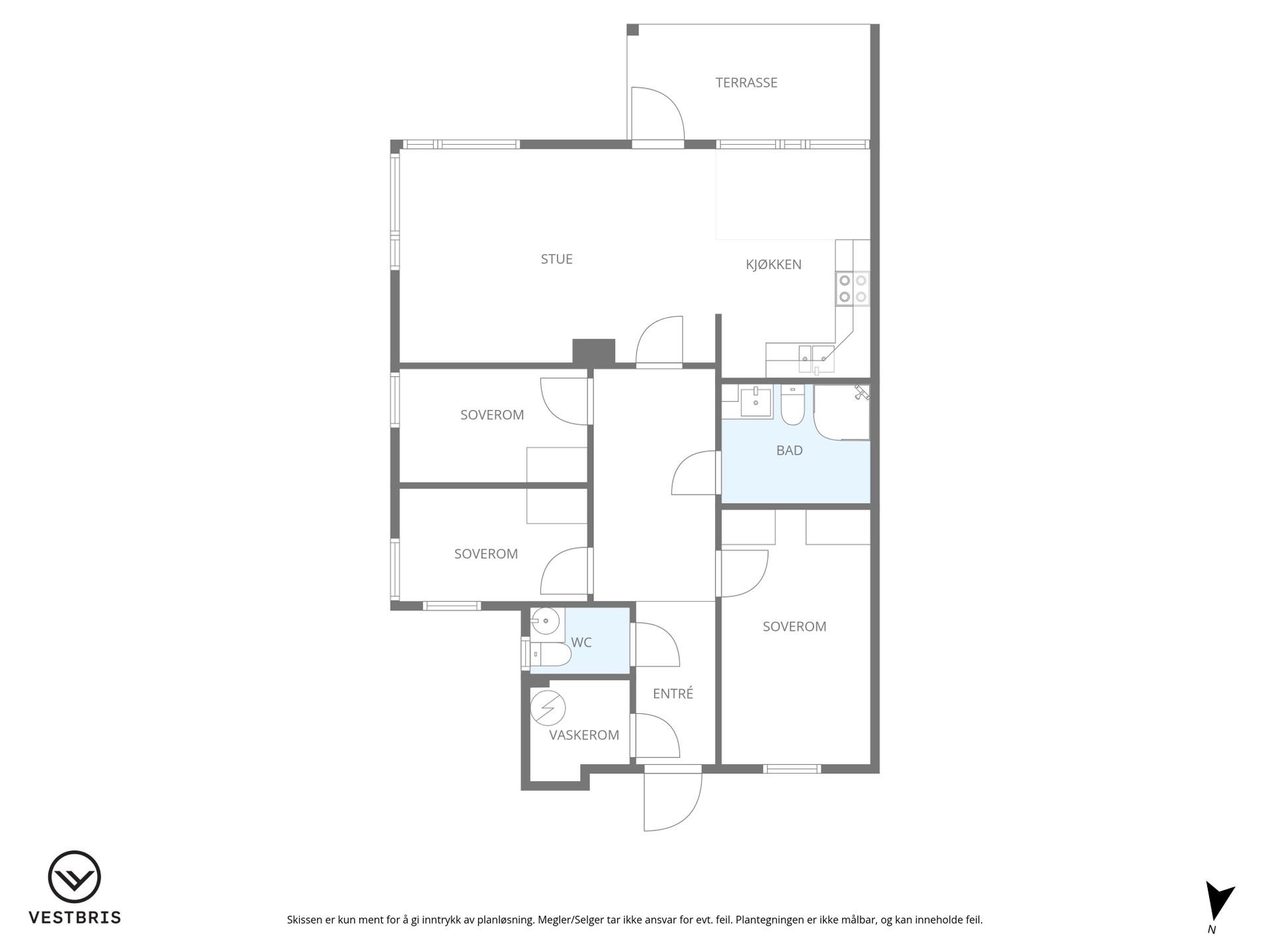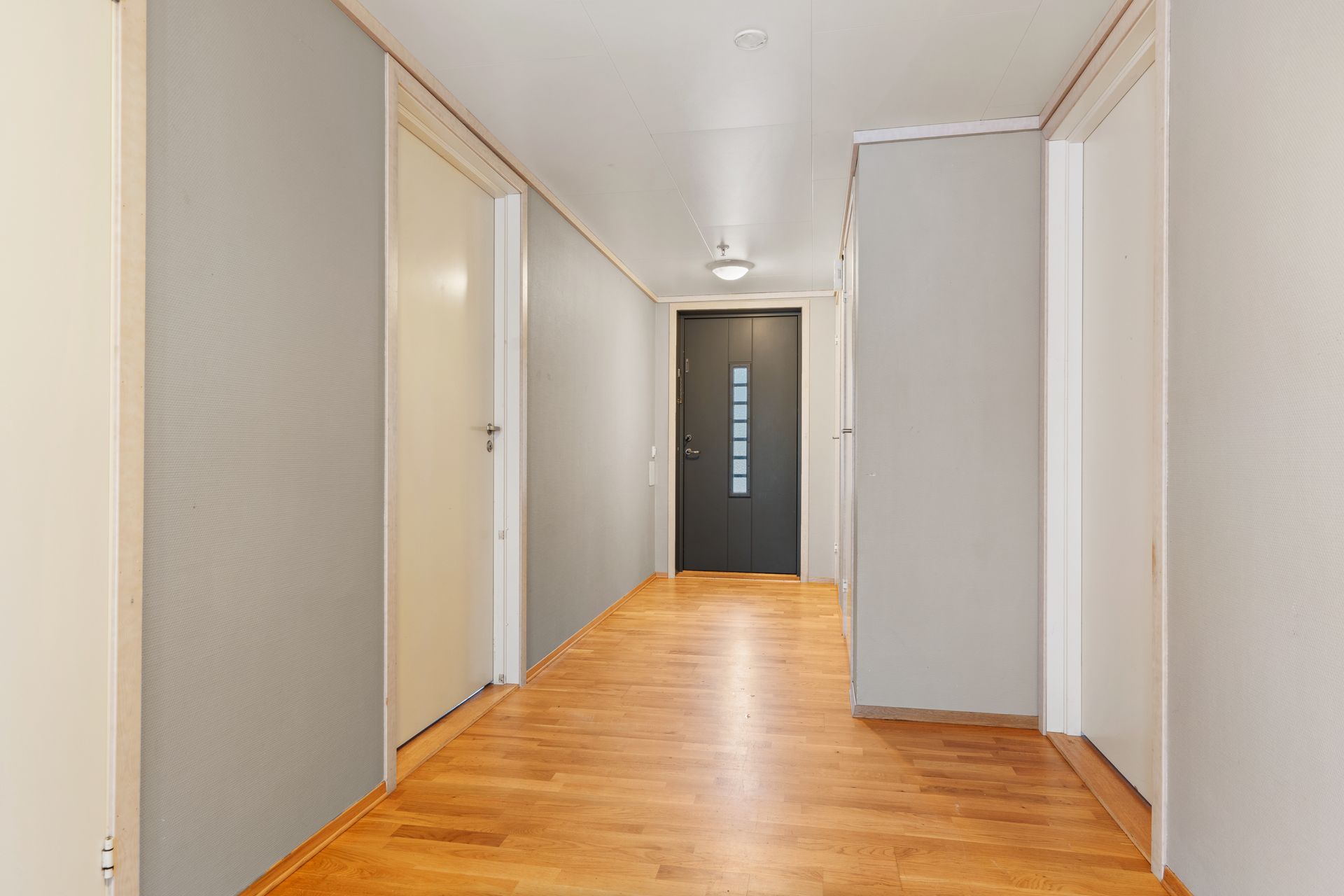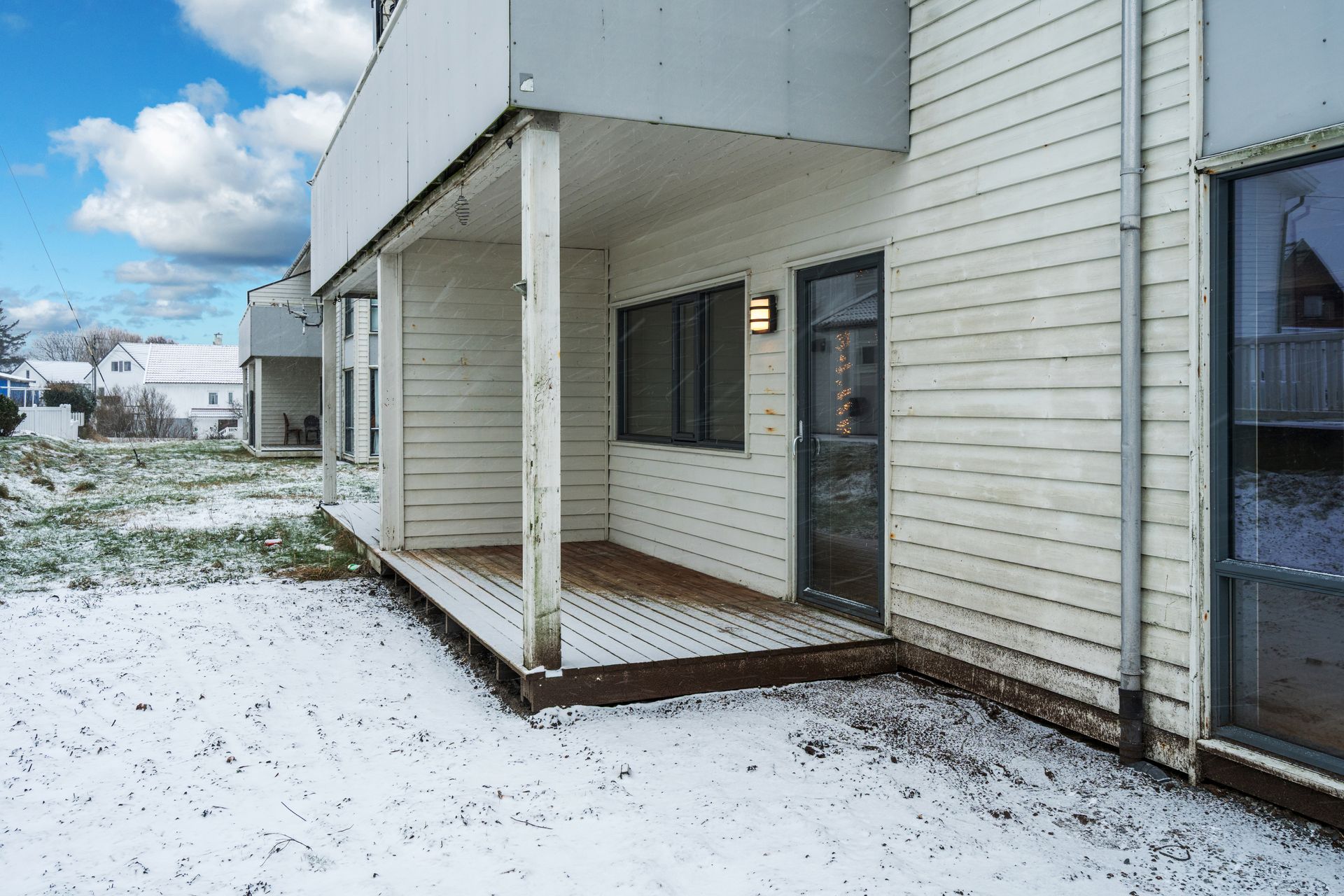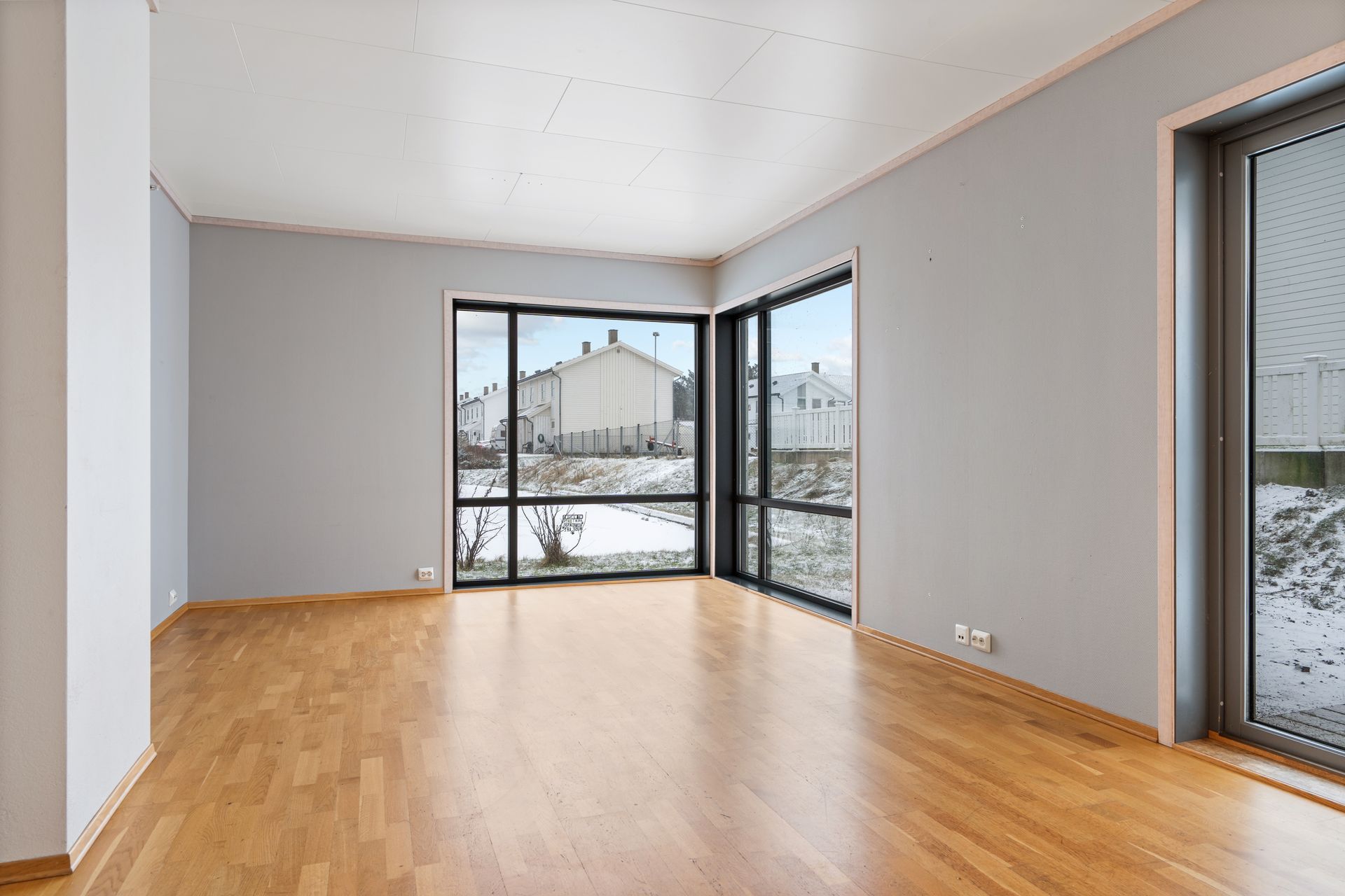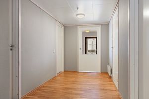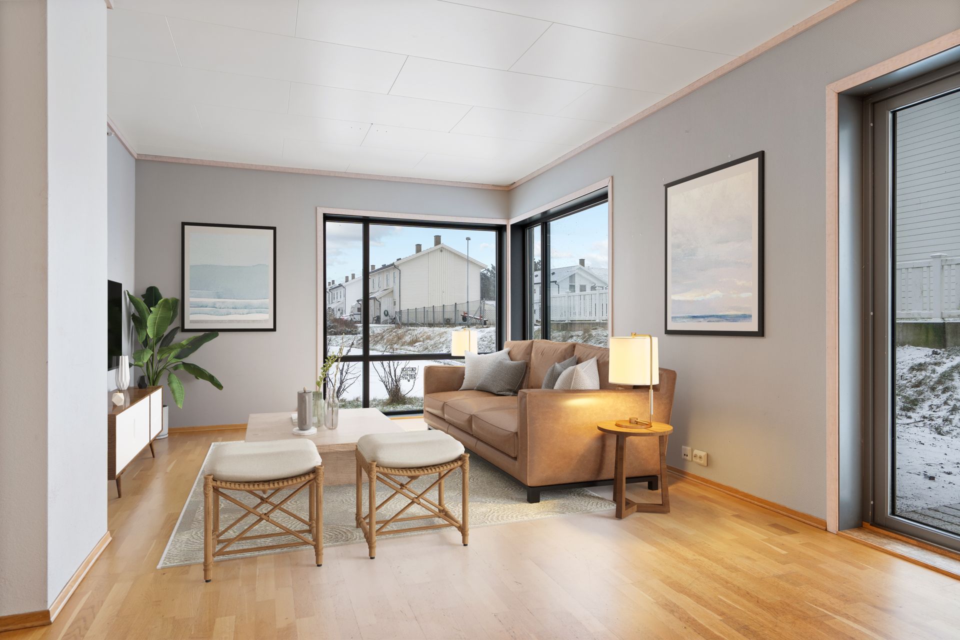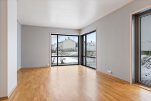 En meget praktisk 4-roms leilighet i 1. etasje med trappefri adkomst. Denne leiligheten ligger optimalt til i 1. etasje, ingen trafikk i forkant. Inneholder entre/gang med garderobeplass. Bod/teknisk rom. Gjestetoalett med vask. 3 gode soverom hvorav hovedsoverommet har god skapplass. Bad/wc har fliser på gulv med varmekabler. Våtromsplater på vegger. Dusjkabinett og opplegg for vaskemaskin. Åpen stue - kjøkkenløsning. God skap og benkeplass. Integrert komfyr og platetopp. Plass til oppvaskmaskin. Det er god plass til sofagruppe og spisestue. Pipeløp gir mulighet til peis - ildsted. Utgang til sørvendt terrasse. Det er i tillegg en bod utenfor inngangsdøren.