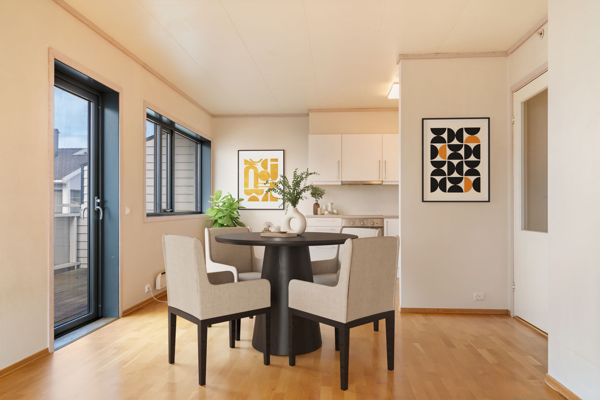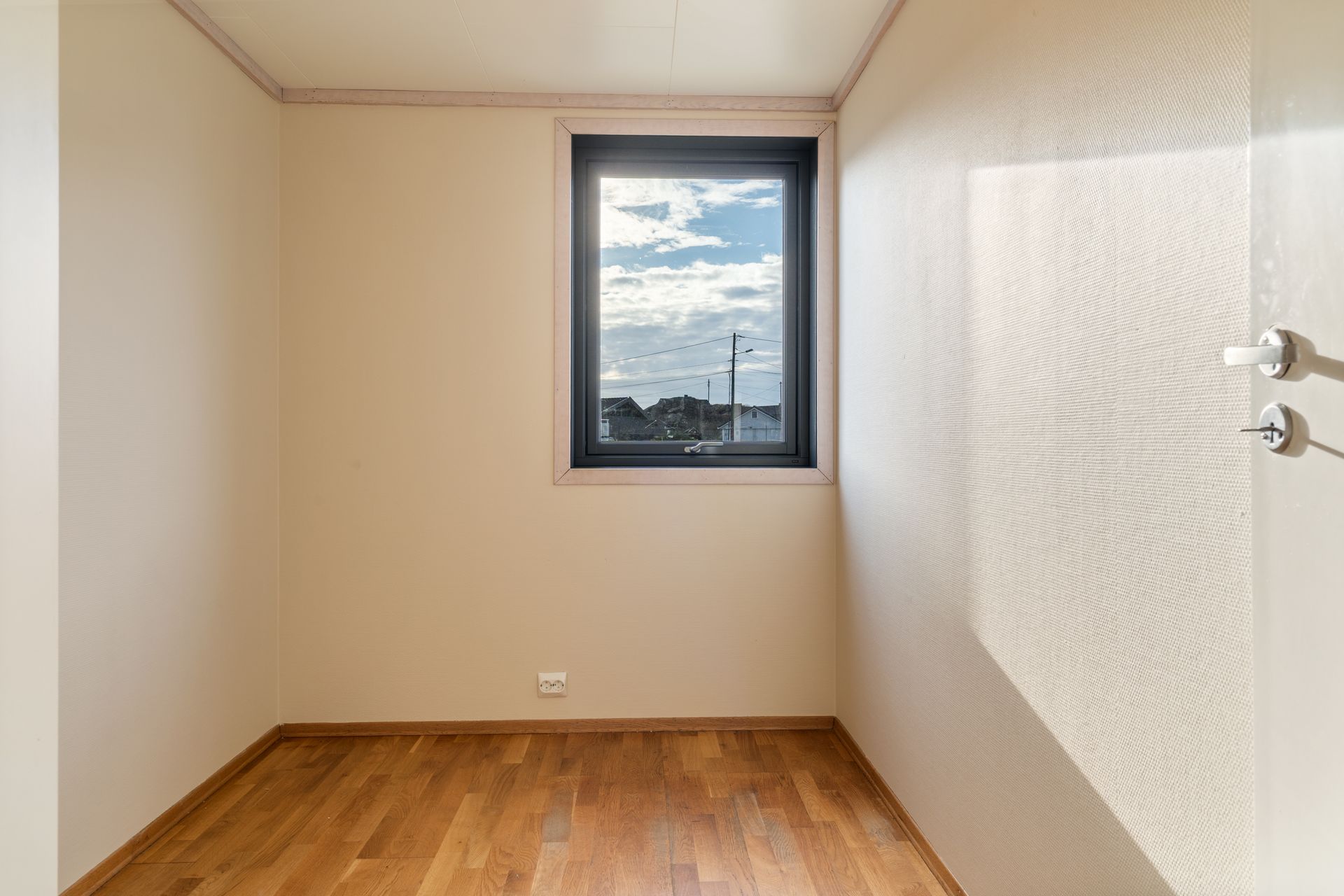 En meget praktisk 4-roms leilighet i 2. etasje. Inneholder entre/gang med garderobeplass. Bod/teknisk rom. Gjestetoalett med vask. 3 gode soverom hvorav hovedsoverommet har god skapplass. Bad/wc har fliser på gulv med varmekabler. Våtromsplater på vegger. Dusjkabinett og opplegg for vaskemaskin. Åpen stue - kjøkkenløsning. God skap og benkeplass. Integrert komfyr og platetopp. Plass til oppvaskmaskin. Det er god plass til sofagruppe og spisestue. Pipeløp gir mulighet til peis - ildsted. Utgang til vestvendt terrasse. Det er i tillegg en bod utenfor inngangsdøren.