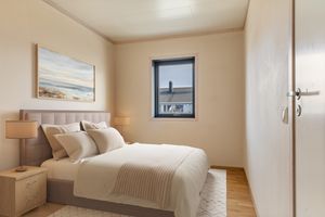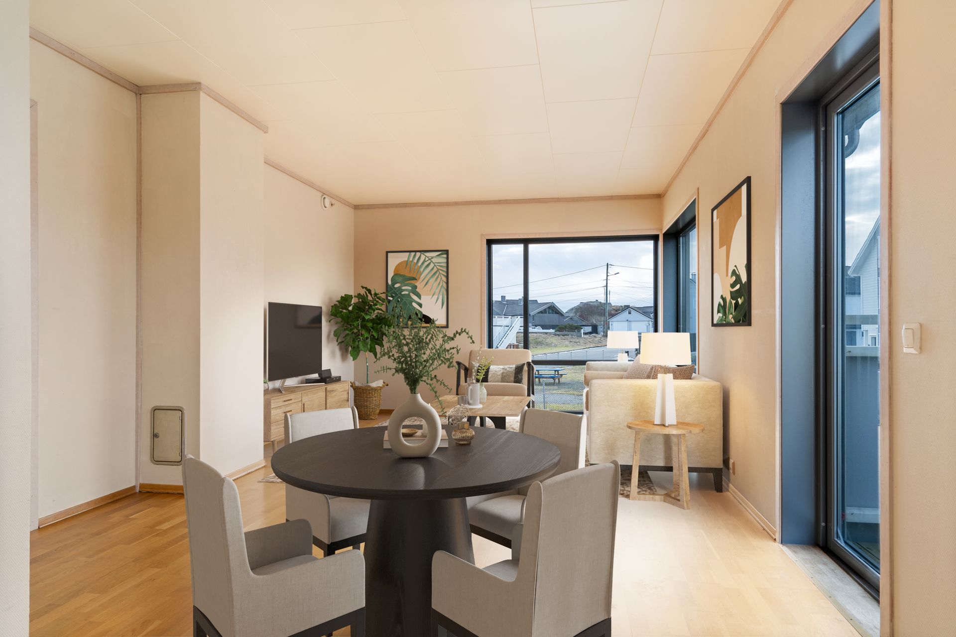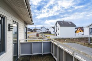 Åkra - Praktisk leilighet med 3 soverom. Gjestetoalett. Meget sentral beliggenhet. Vestvendt terrasse med utsikt