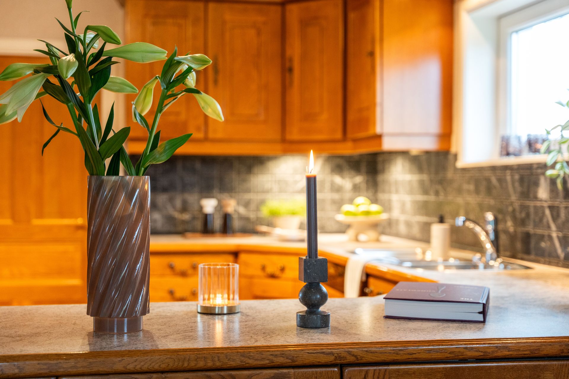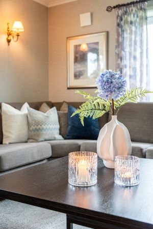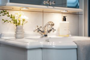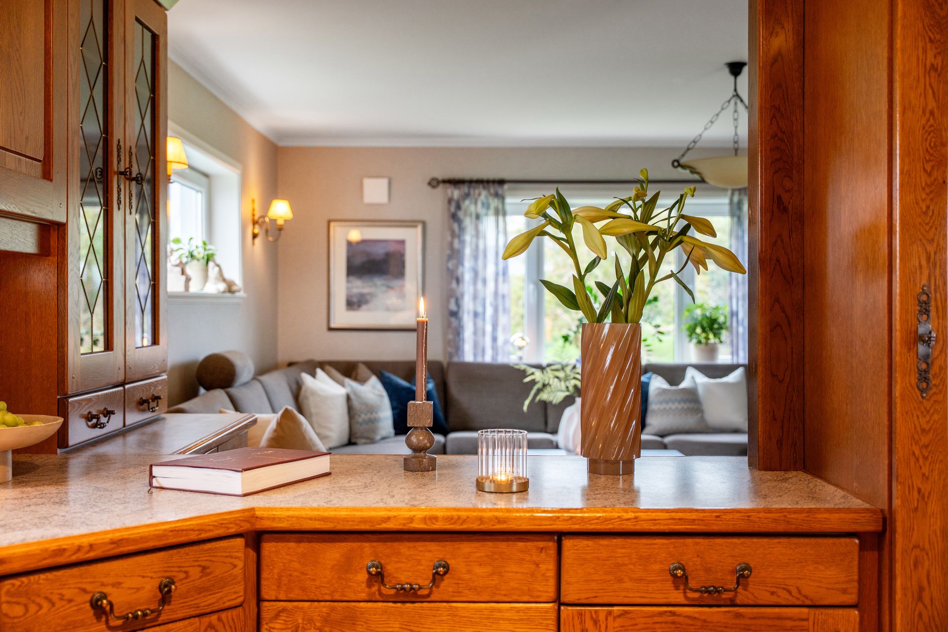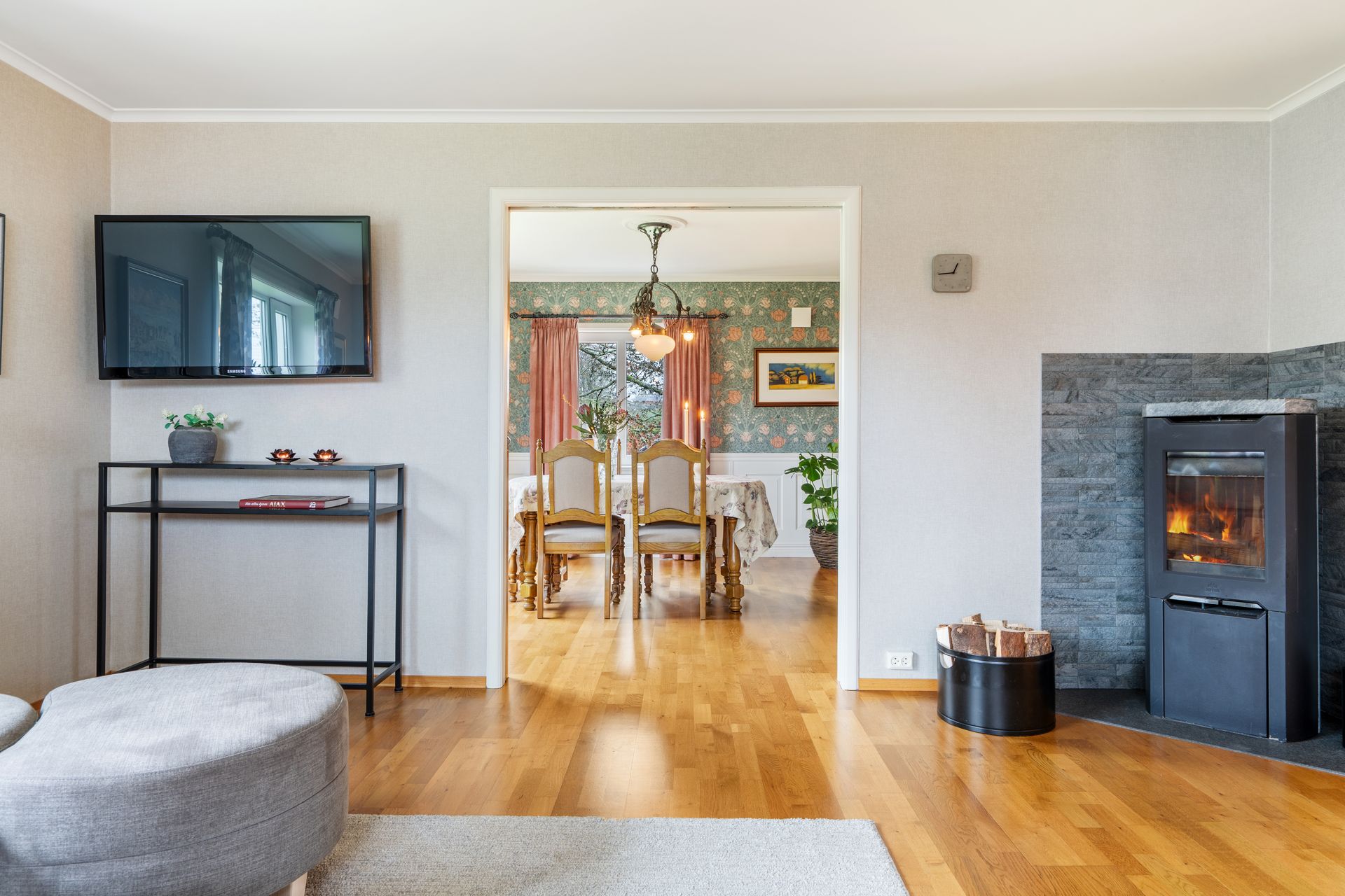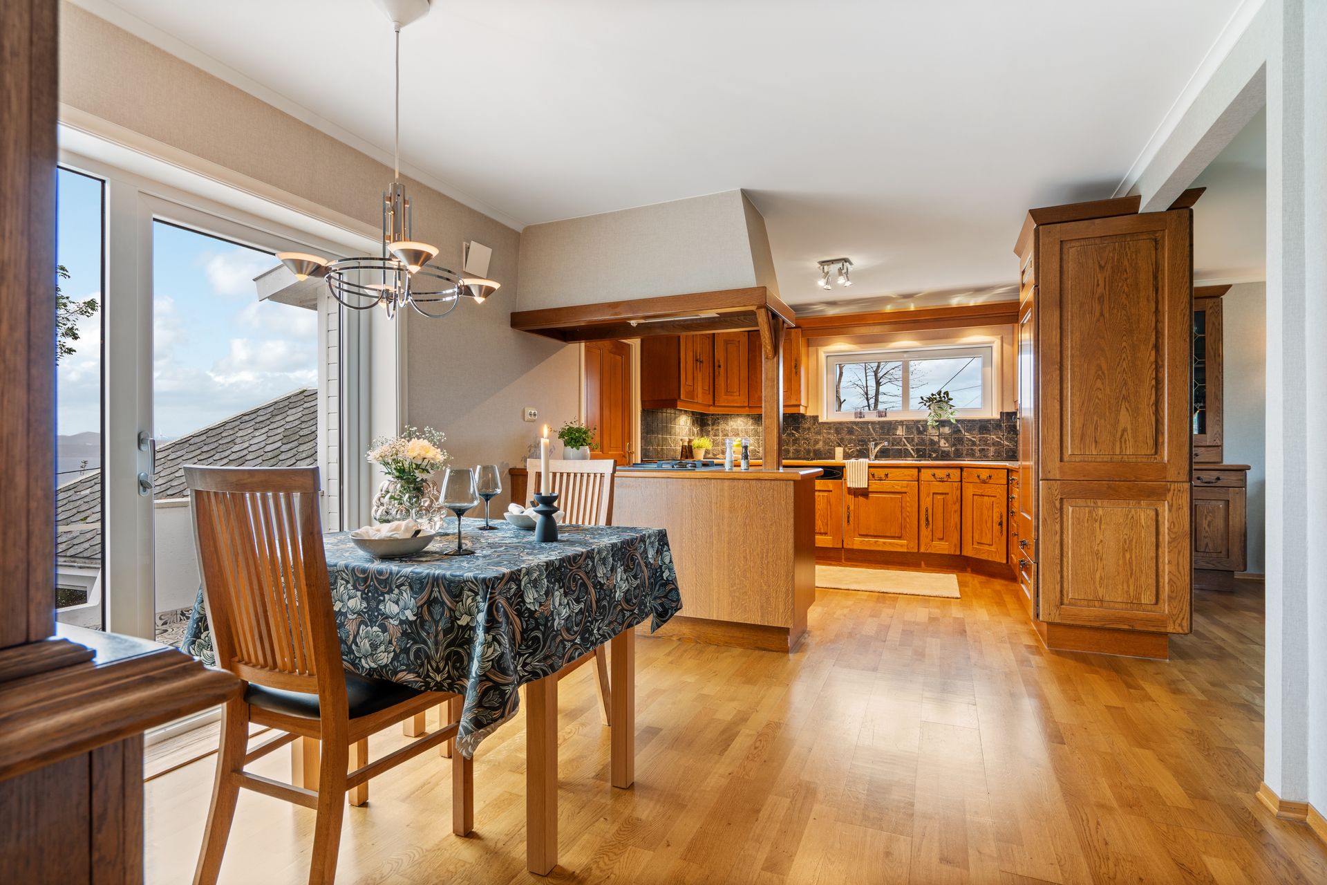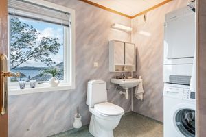 Første etasje: -Flislagt entrè med garderobe/oppbevaring, samt flislagt romslig gang med muligheter for oppbevaring. -Finstue/spisestue i ærværdig og klassisk stil, rikelig med naturlig lysinnslipp og varmepumpe (installert i 2023). -Dagligstue/kjøkken i god størrelse, perfekt for sosiale sammenkomster og hyggelige stunder med masse gjester. Pusset opp overflater som vegger (malt) /tak (Gipset + malt) i nyere tid (ca.2020). Flott klebersteinsovn (installert for ca. 7-8 år siden) som gir fra seg en herlig varme og skaper en hyggelig atmosfære. Ellers god plass til stor sofa. I kjøkkensonen er det plass til spisebord ved utgangen til balkongen. Balkongen er pent flislagt. Klassisk kvalitets kjøkkeninnredning i heltre med integrerte hvitevarer som: kjøleskap (Nytt i 2021), komfyr, platetopp og oppvaskmaskin. Halvt om halvt platetopp med keramisk/gass. Veldig god benkeplass og masse av skap/hylleplass i innredningen. Nydelig sjøutsikt mot Karmsundet, mens man tar seg av oppvasken/mat klargjøring. Dør på kjøkken til vaskerom som inneholder toalett, enkel vask og opplegg for vaskemaskin/tørketrommel.