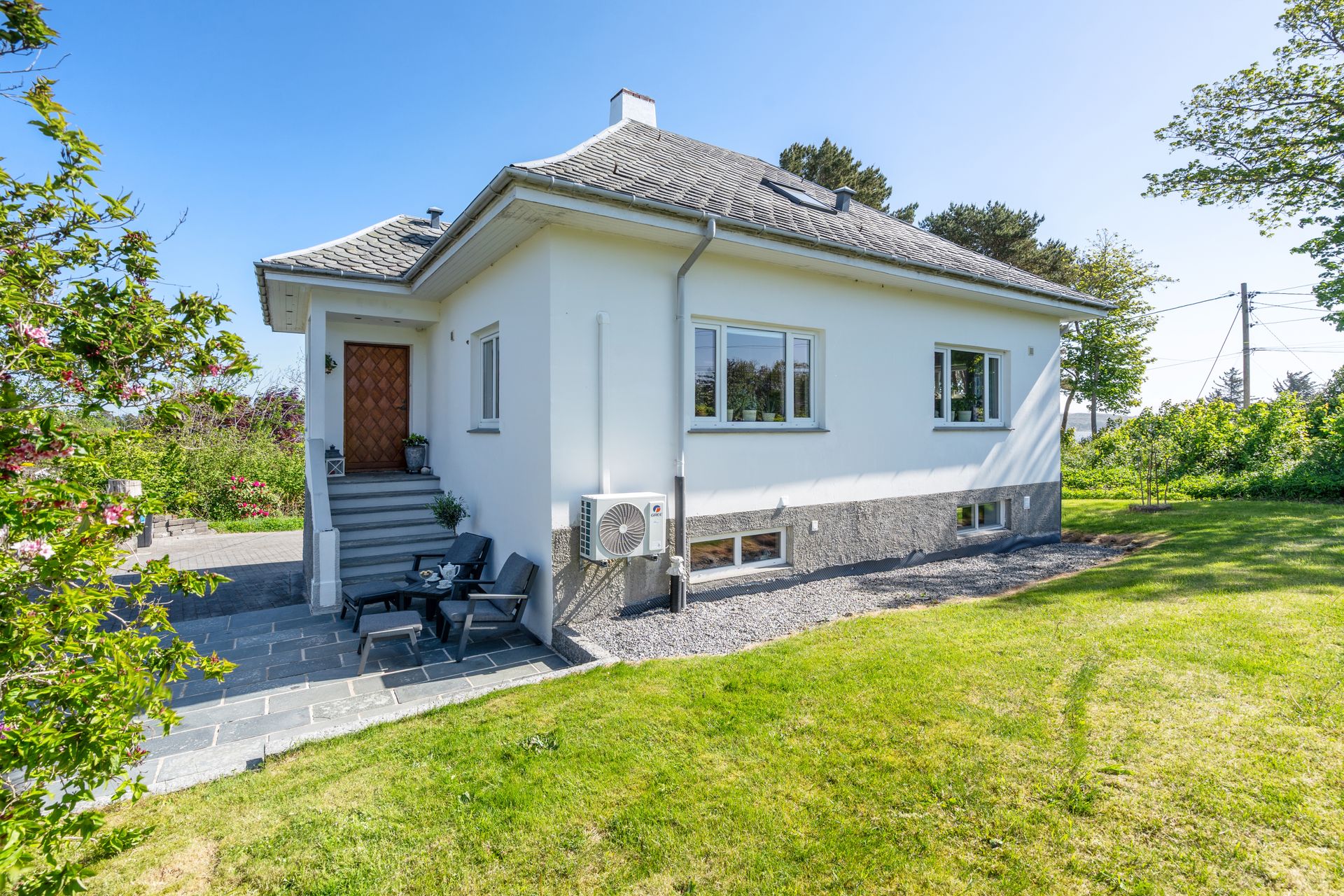 Utvendig: -Fleste vinduer er skiftet for ca. 12-14 år siden. -Lagt drens rør på sør og øst siden av huset. -I 2018 gikk fagfolk over utvendig mur på boligen og behandlet. -En riktig oase for den som elsker hage, planter, trær, frukt og bær. -Stor garasje klargjort for el-bil lader. (el-bil lader medfølger ikke). Vedsjul med overbygg ved siden av garasjen, samt oppbevaring på garasjeloft. -Det er lagt nye pvc rør fra septik tank til huset. -Sensorstyrt utebelysning.