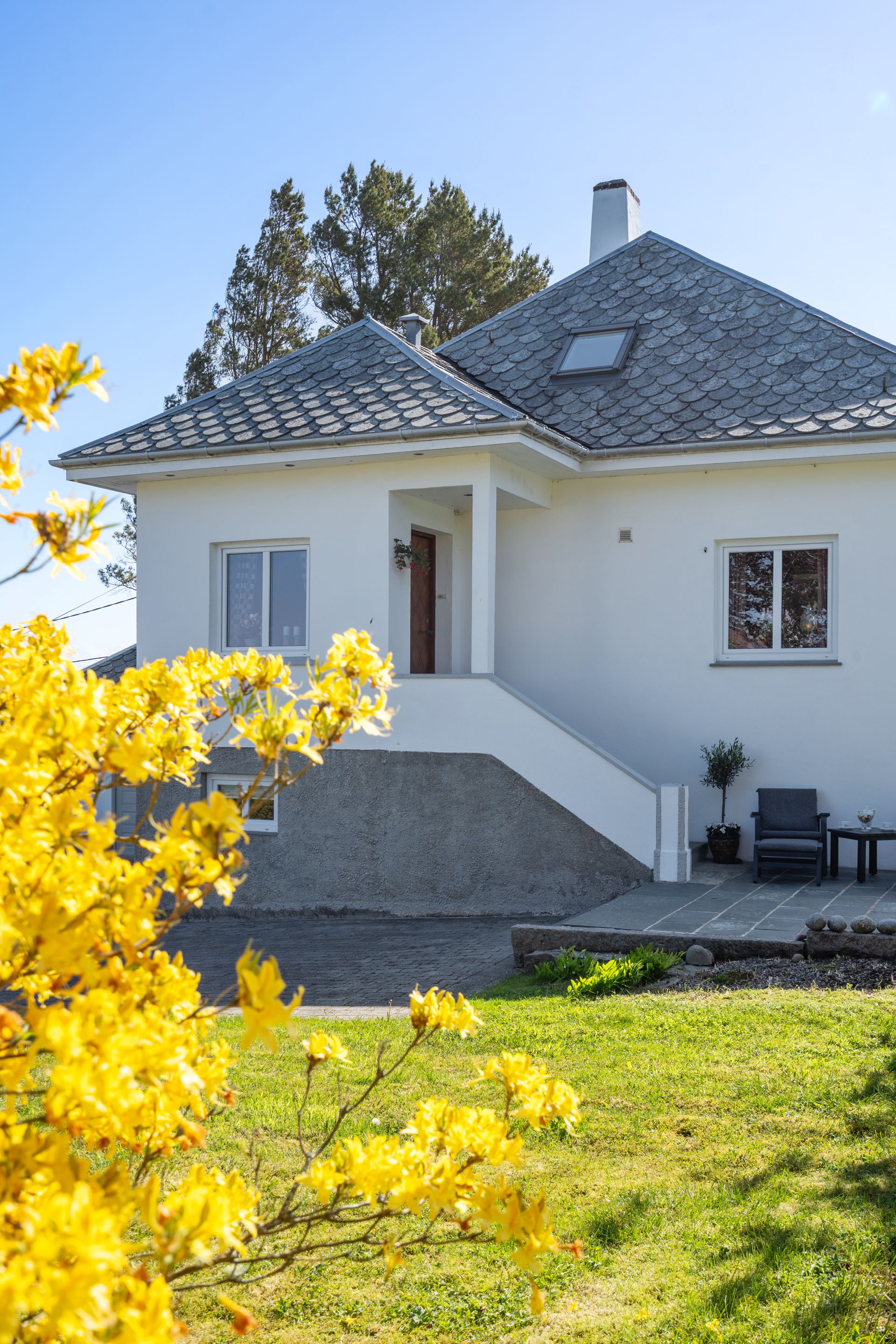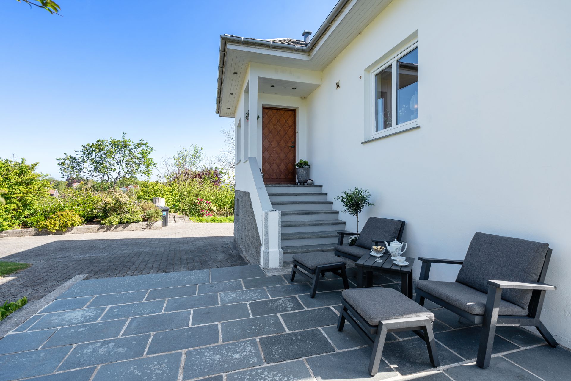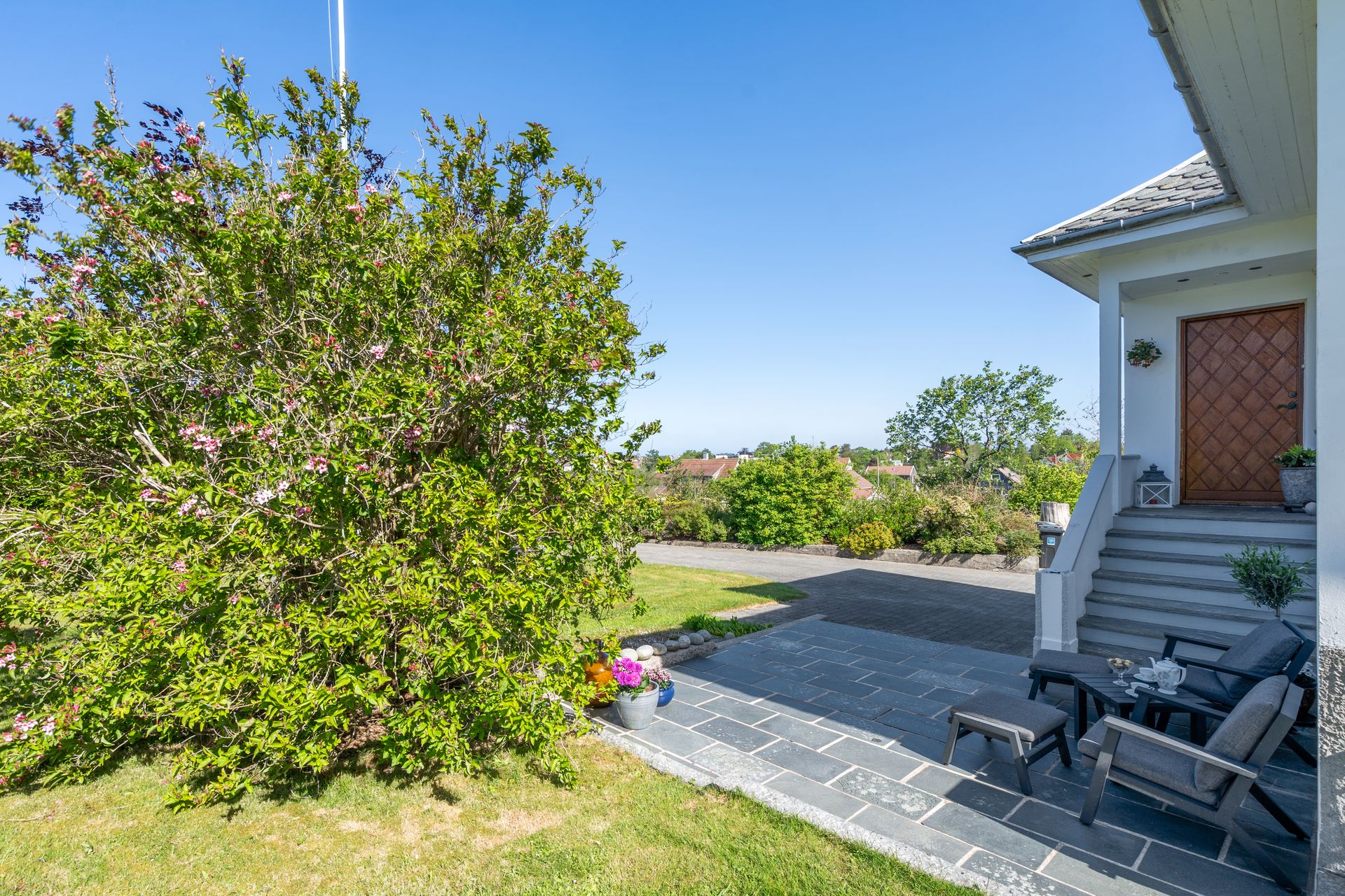 Staslig eiendom med flott velholdt murhus – Nydelig sjøutsikt - Garasje – Stor tomt m/bærbusker og frukttrær