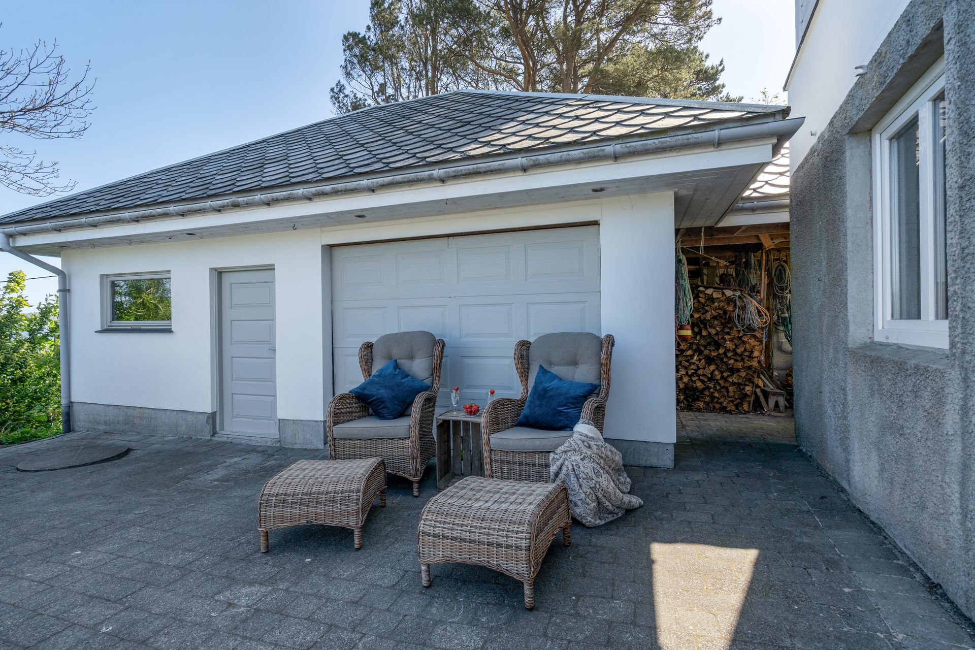 -Utvendig bod og garasje m/oppbevaringsloft.