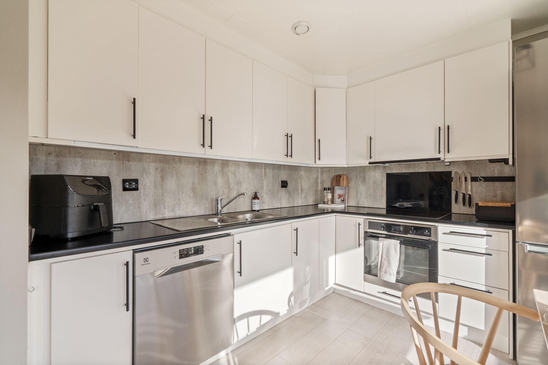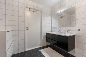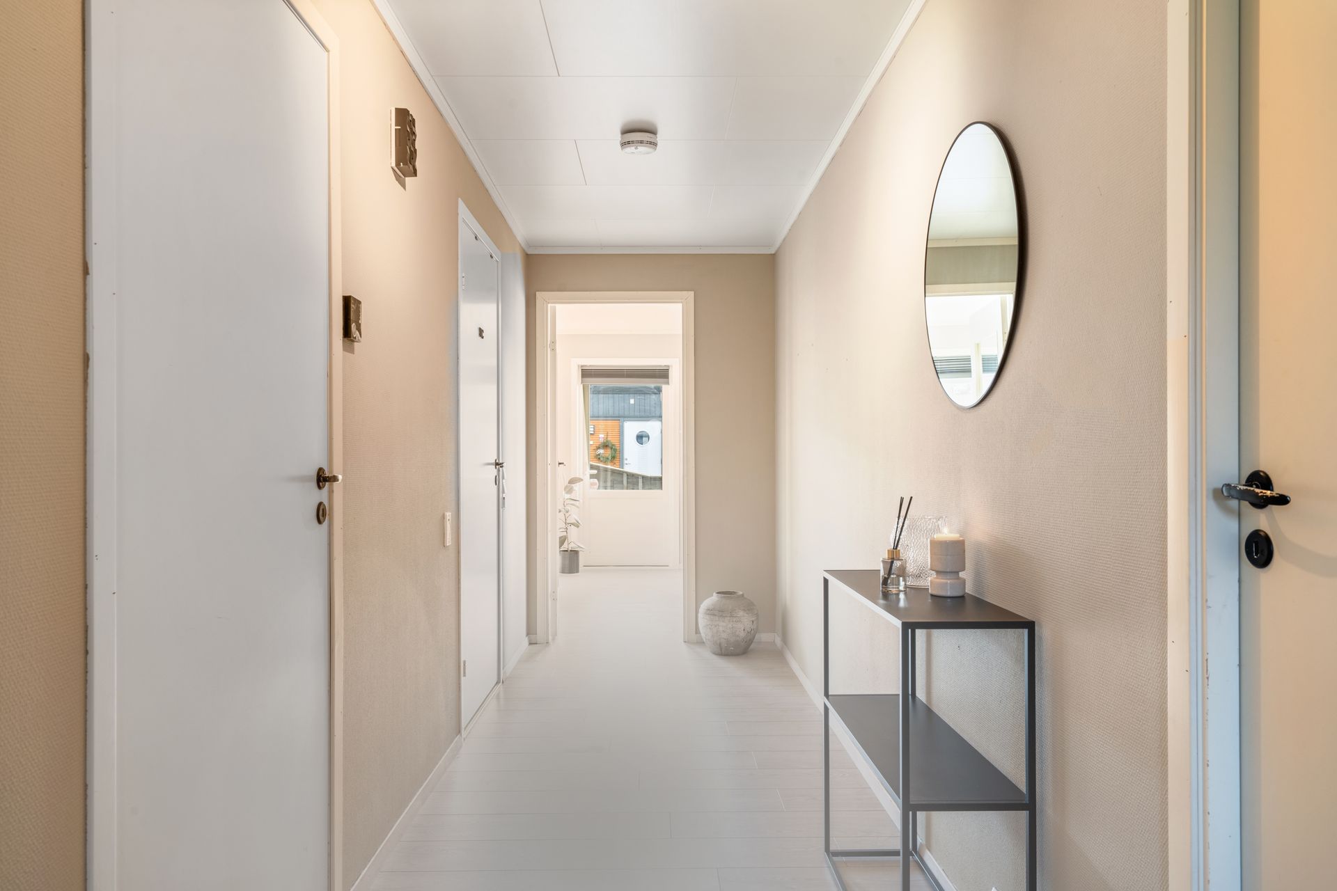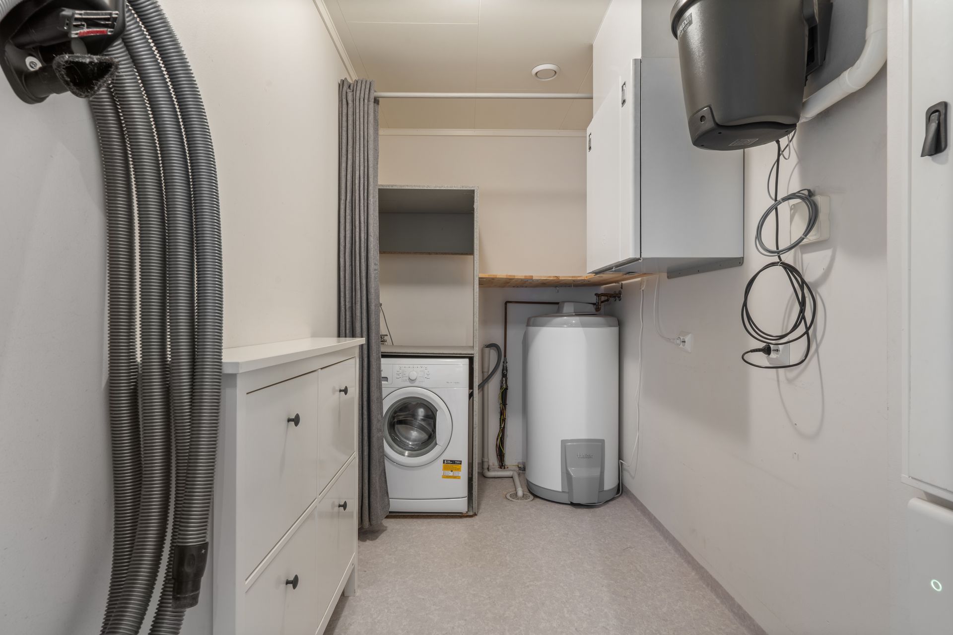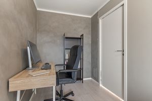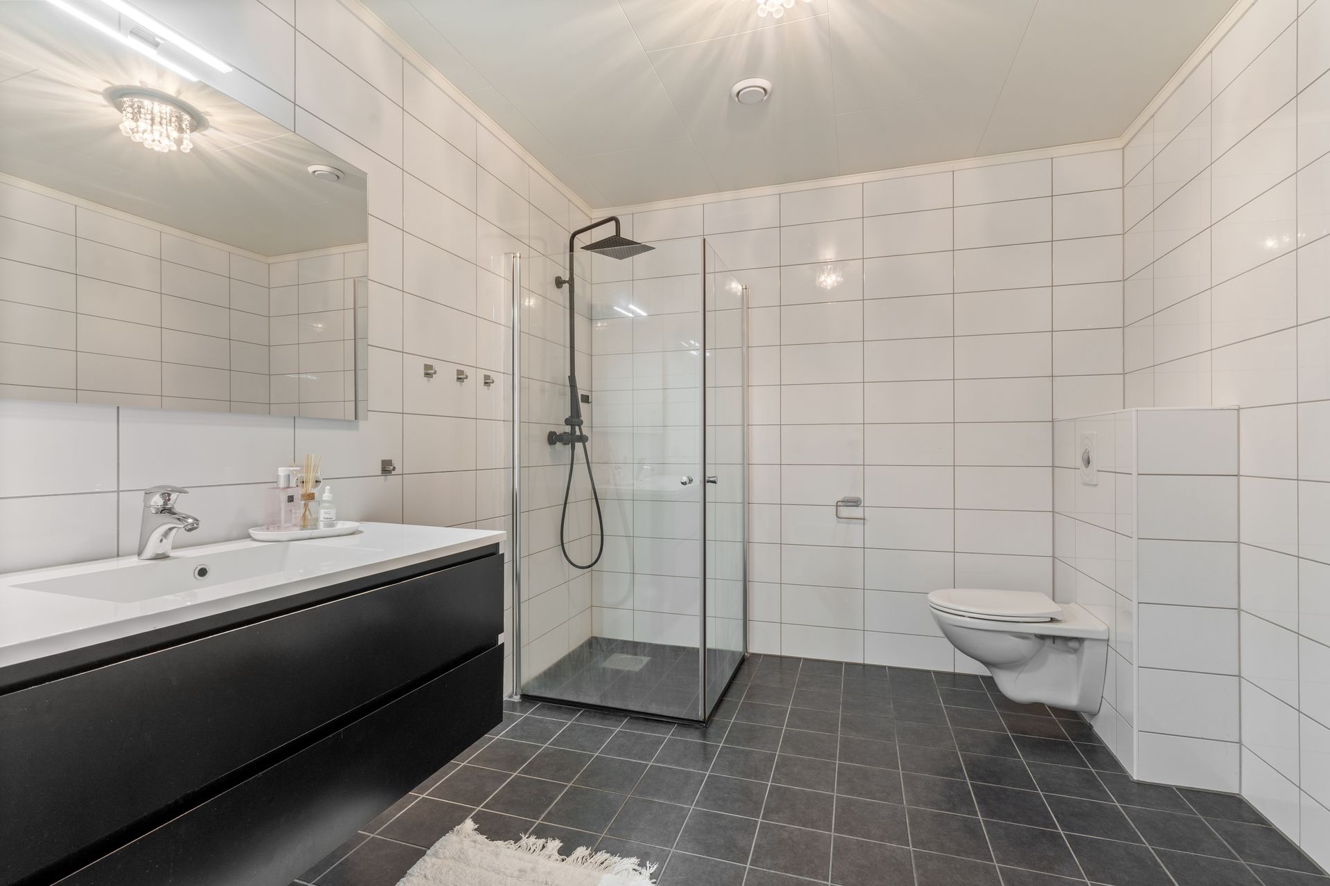 -Gjennomgående lys laminat på gulvoverflater, med unntak av entrè og baderom som har fliser. Vaskerom med gulvbelegg. -Lyse og tidsriktige farger på vegger. -Praktisk planløsning med 3 soverom (Lettvegg til det minste soverommet, kan enkelt omgjøres til større stue ved behov.) Hovedsoverommet inneholder stor praktisk garderobe og har egen terrassedør med tilhørende platting. -Stue og kjøkken i åpen løsning. Rikelig med naturlig dagslys gjennom de store vinduene. Komfortabel oppvarming med varmepumpe, samt ekstra oppvarming med vedfyring. Kjøkkeninnredningen er lys og tidløs, og inneholder rikelig med benke/skap- plass. Integrert nyere oppvaskmaskin, komfyr og induksjonstopp som medfølger handelen. Pene detaljer i kjøkkensonen med sorte håndtak og stikkontakter. -Fra stue/kjøkken rommet er det direkte adkomst til stor og lun sør/vest vendt terrasse. -Praktisk skyvedørsgarderobe i entrè. -Svært romslig helfliset bad med dusjhjørne, vegghengt toalett, servantskap med oppbevaring og speil. -Praktisk vaskerom/teknisk rom. Nylig (25. februar 2026) utført service/rens inkludert filterbytte av ventilasjonsanlegget. (Utført av Enkon) -Utvendig sportsbod med plass til oppbevaring.