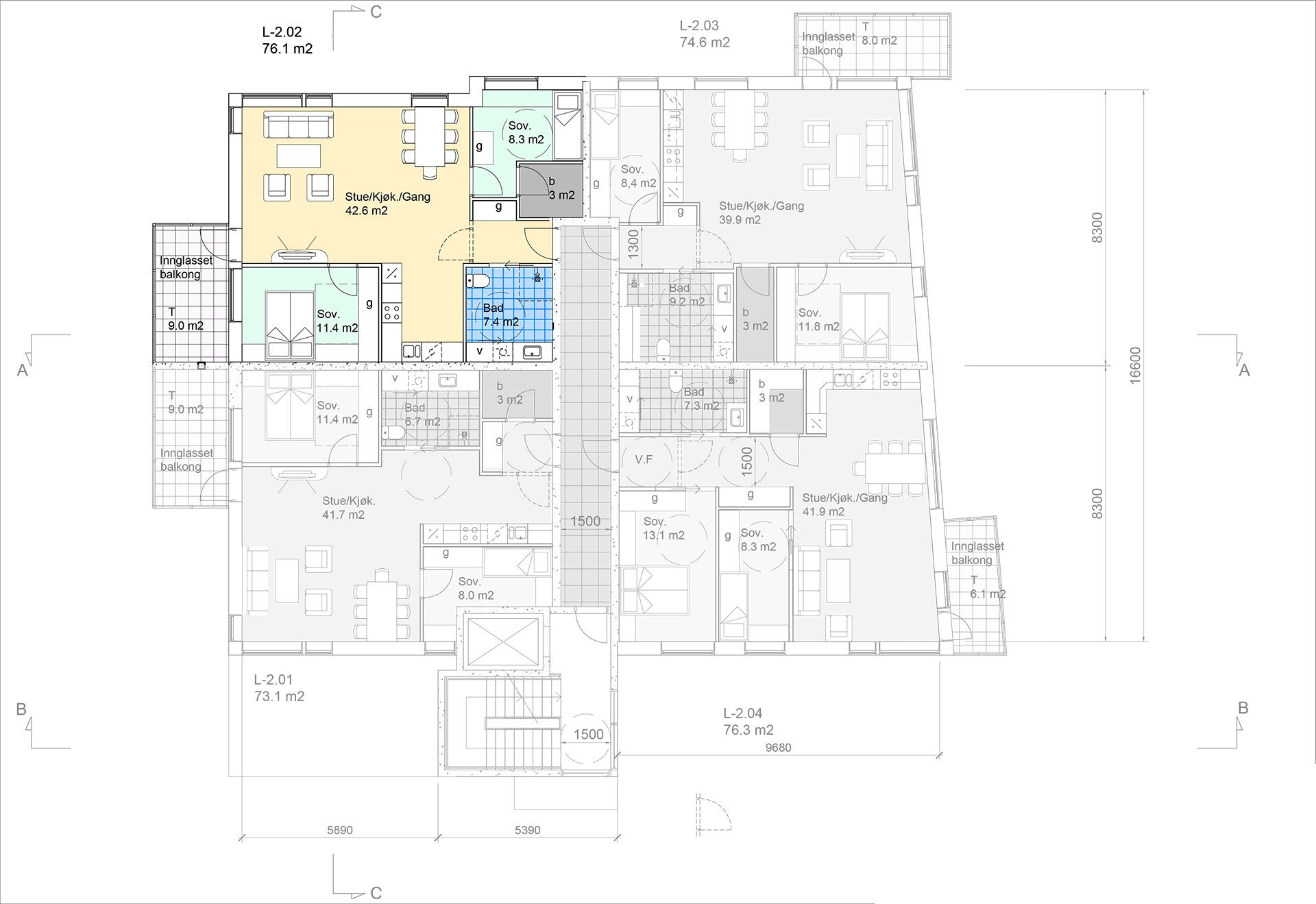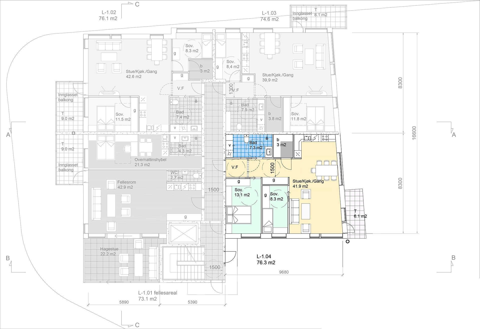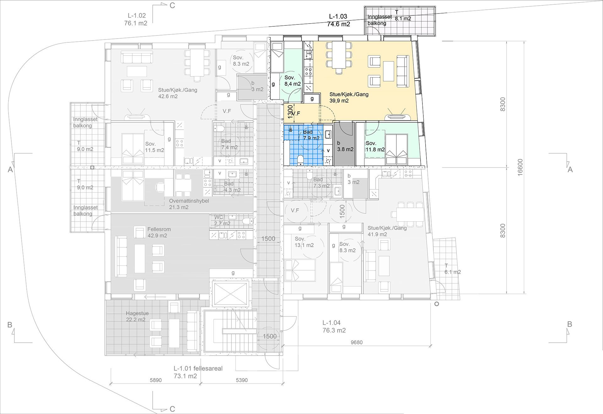 Hovedfakta: Leilighetsstørrelser fra ca. 73,1 m² - 98,9 m2. Universell utforming