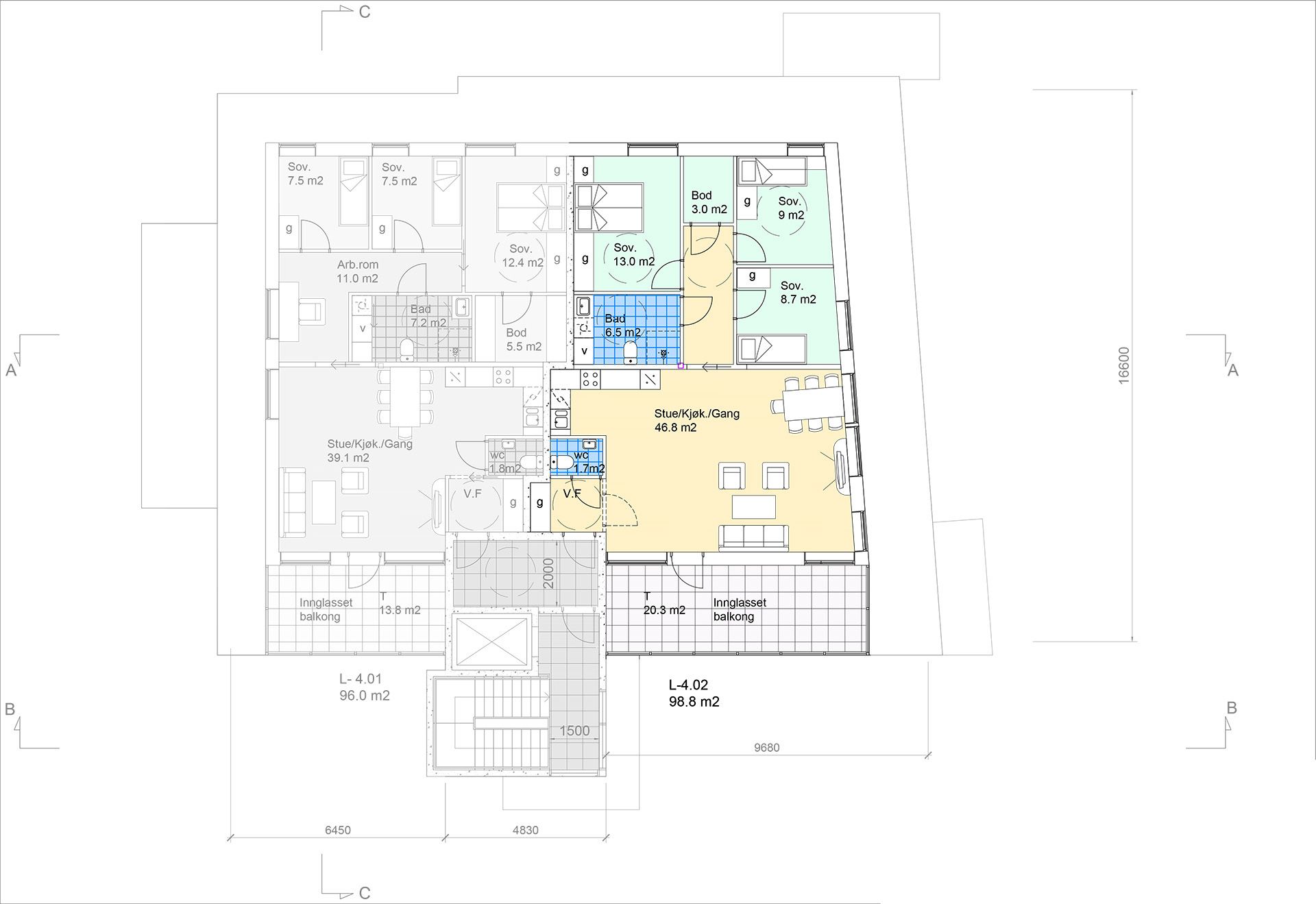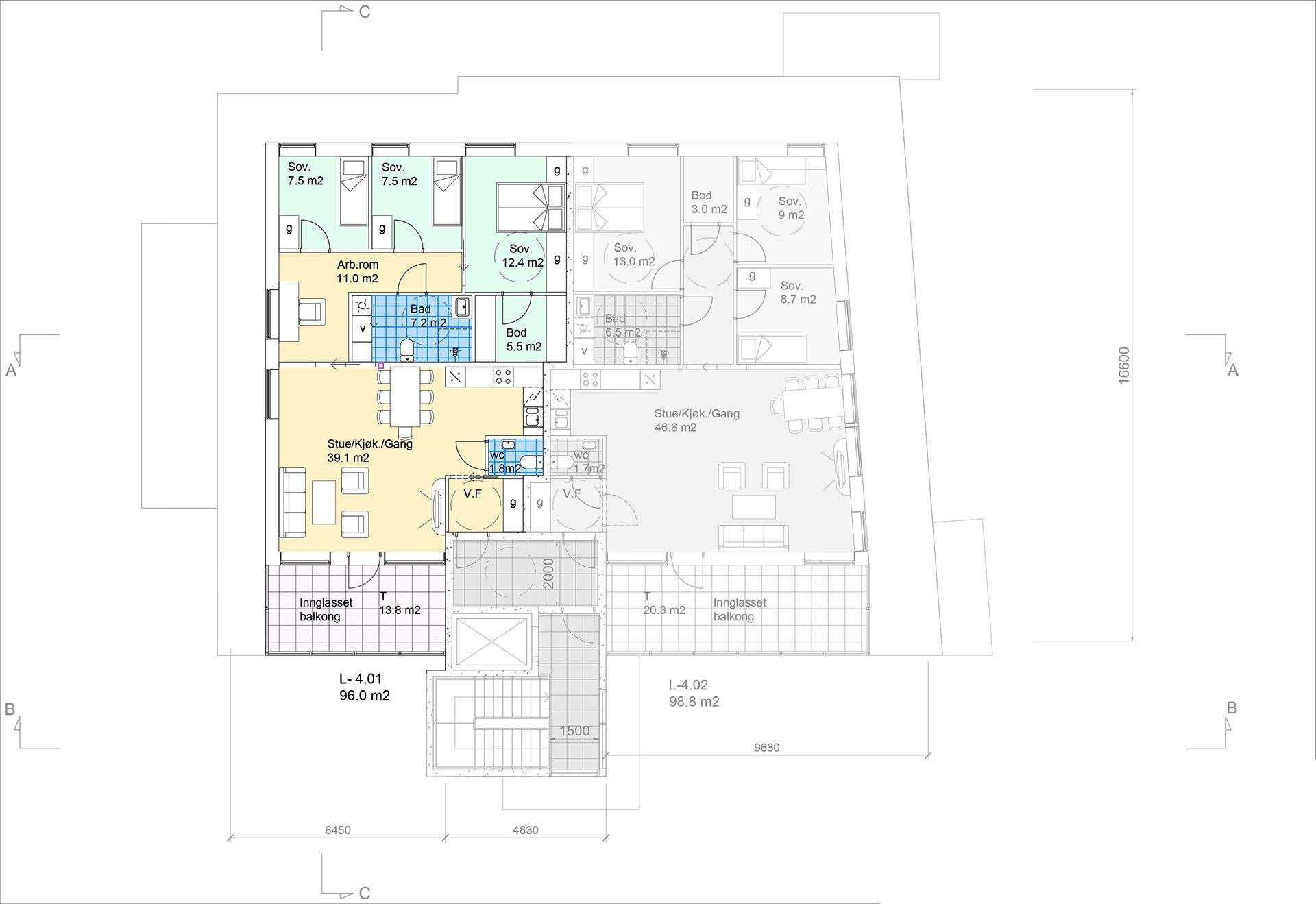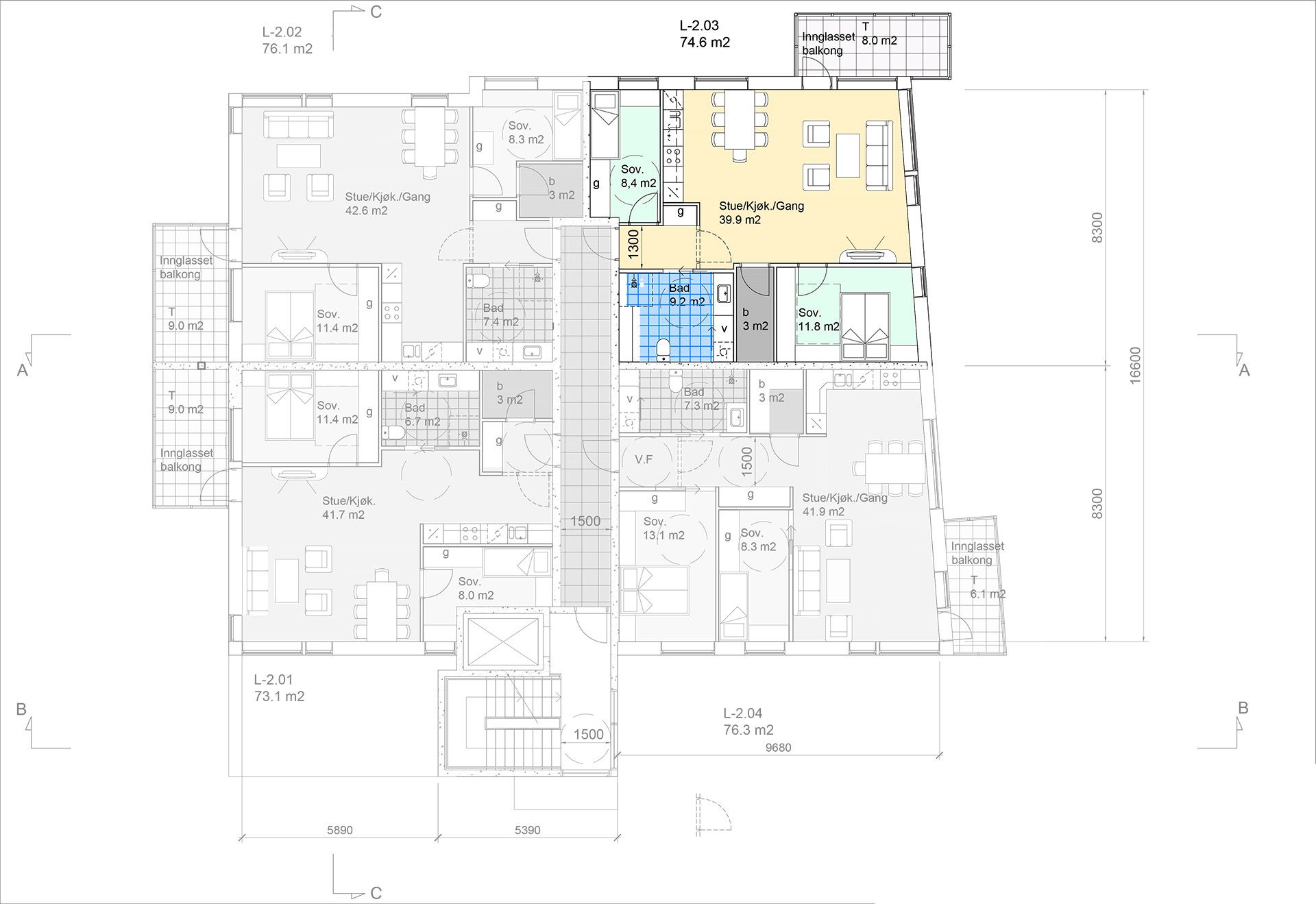 Hovedfakta: Leilighetsstørrelser fra ca. 73,1 m² - 98,9 m2. Universell utforming