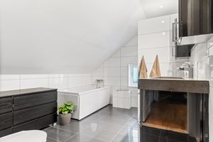 *Teknisk: -Eier opplyser at det er varmekabler i hele første etasje + bad i loftsetasjen. -Boligen har balansert ventilasjon. -Tidsinnstilt utebelysning rundt boligen og garasjen. -Stort sikringsskap. -Sentralstøvsuger (med avsug i foringslist på kjøkkenet).