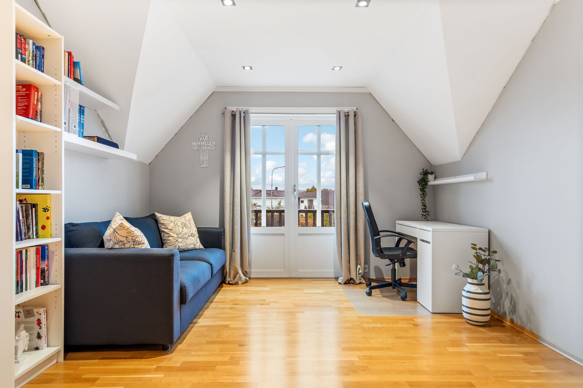 -Loftstuen er kjekk og perfekt til blant annet kontor/tv-stue/lekerom eller rett og slett et 4. soverom om man setter opp en vegg. Downlights i tak. Terrassedøren er ny i 2019.